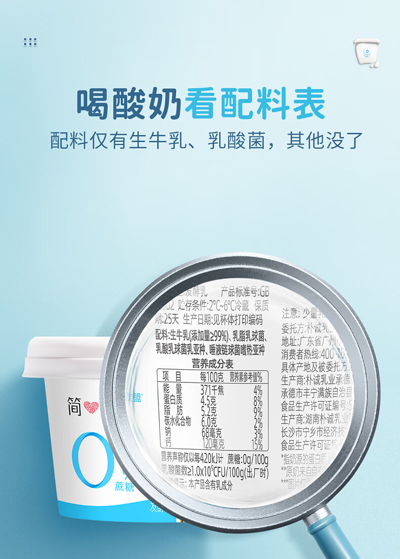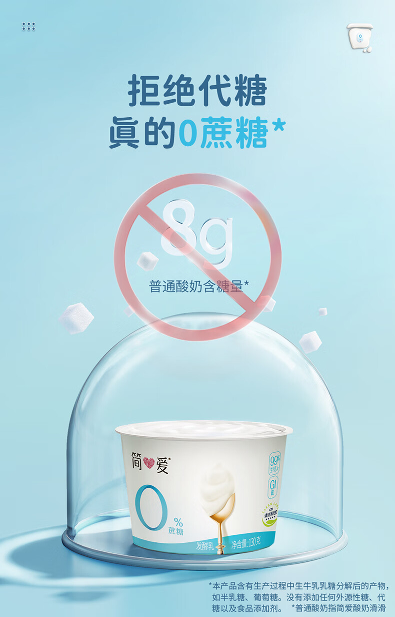 简爱无蔗糖酸奶 0蔗糖0代糖130g*4杯 0添加天然乳蛋白【京东专供】