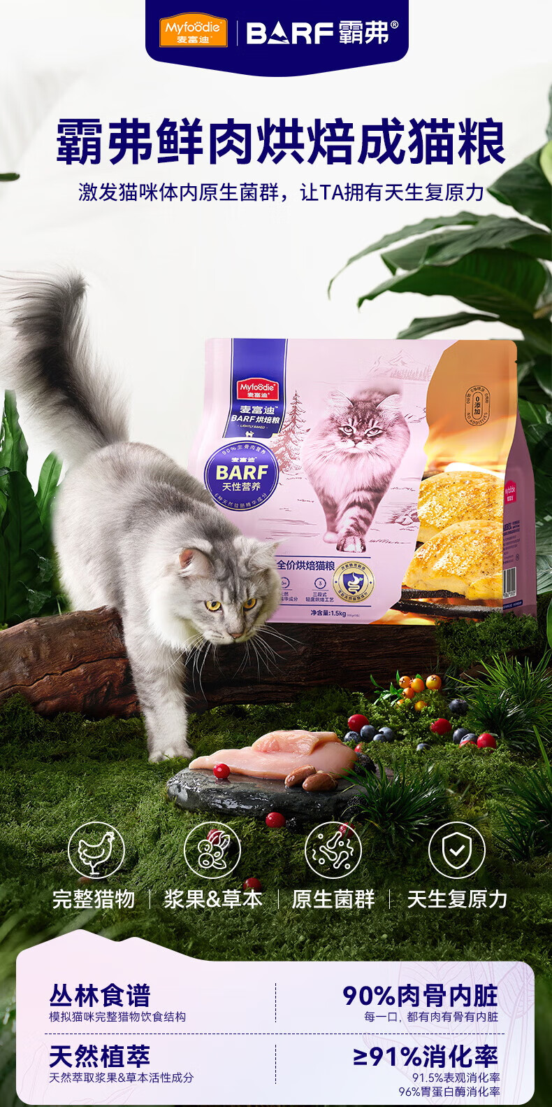 麦富迪 猫粮 barf霸弗全价低温烘焙猫粮成猫幼猫咪通用生骨肉营养高蛋白 【全新升级2.0】鲜鸡肉配方100g