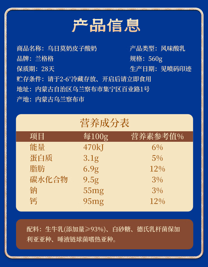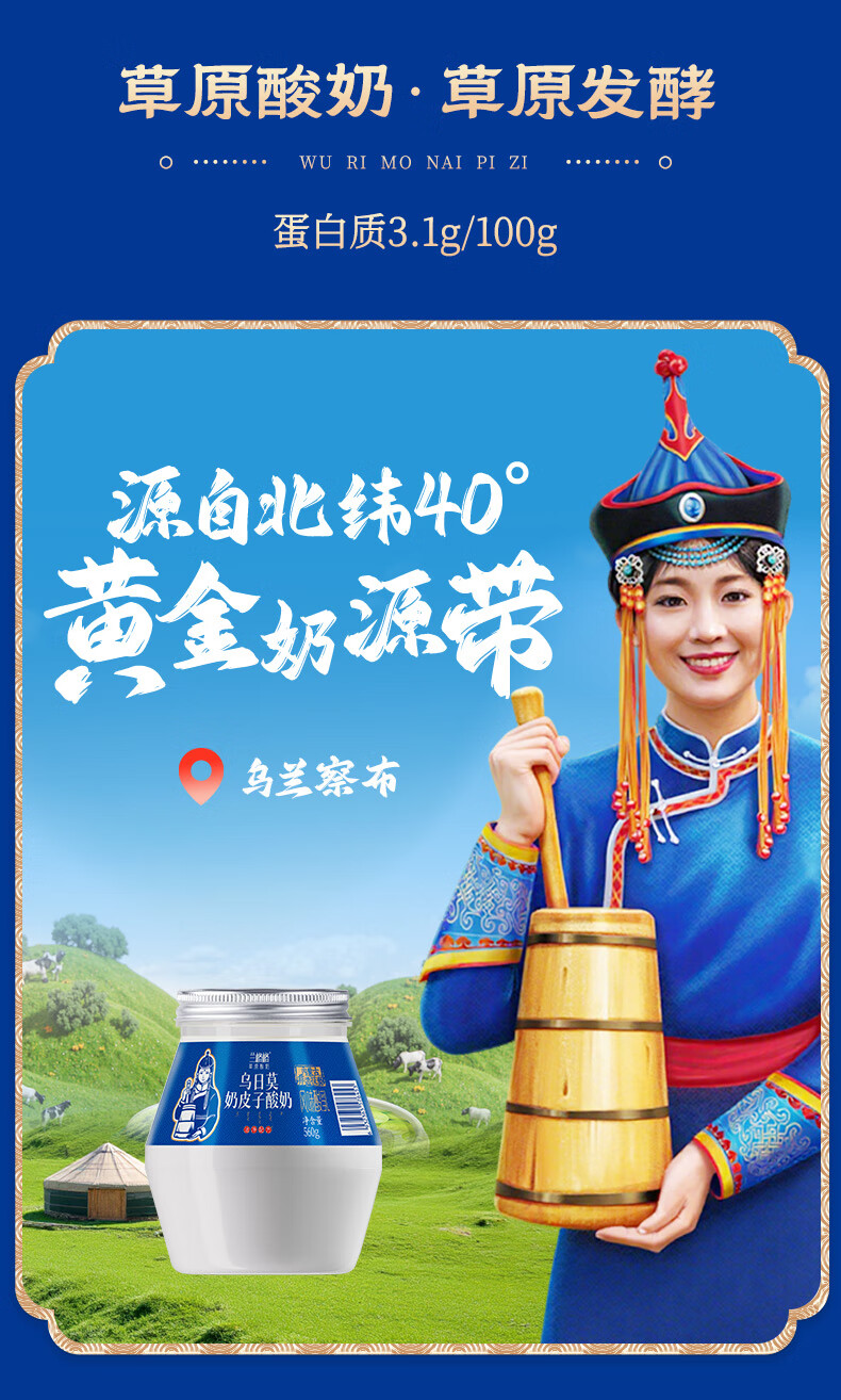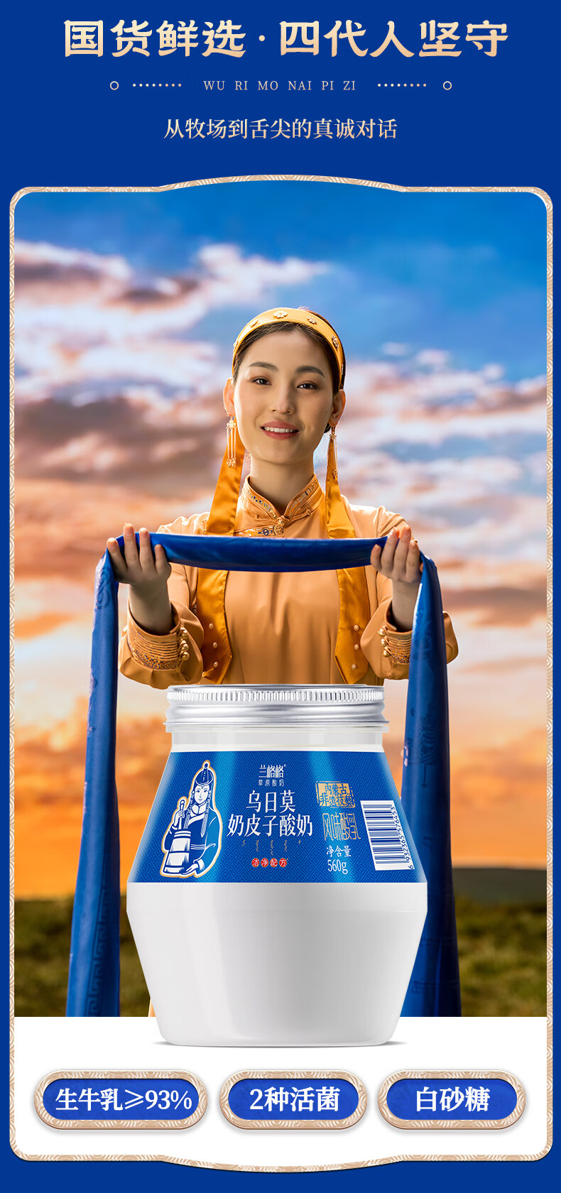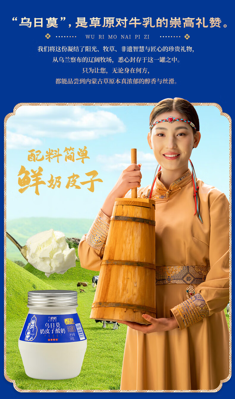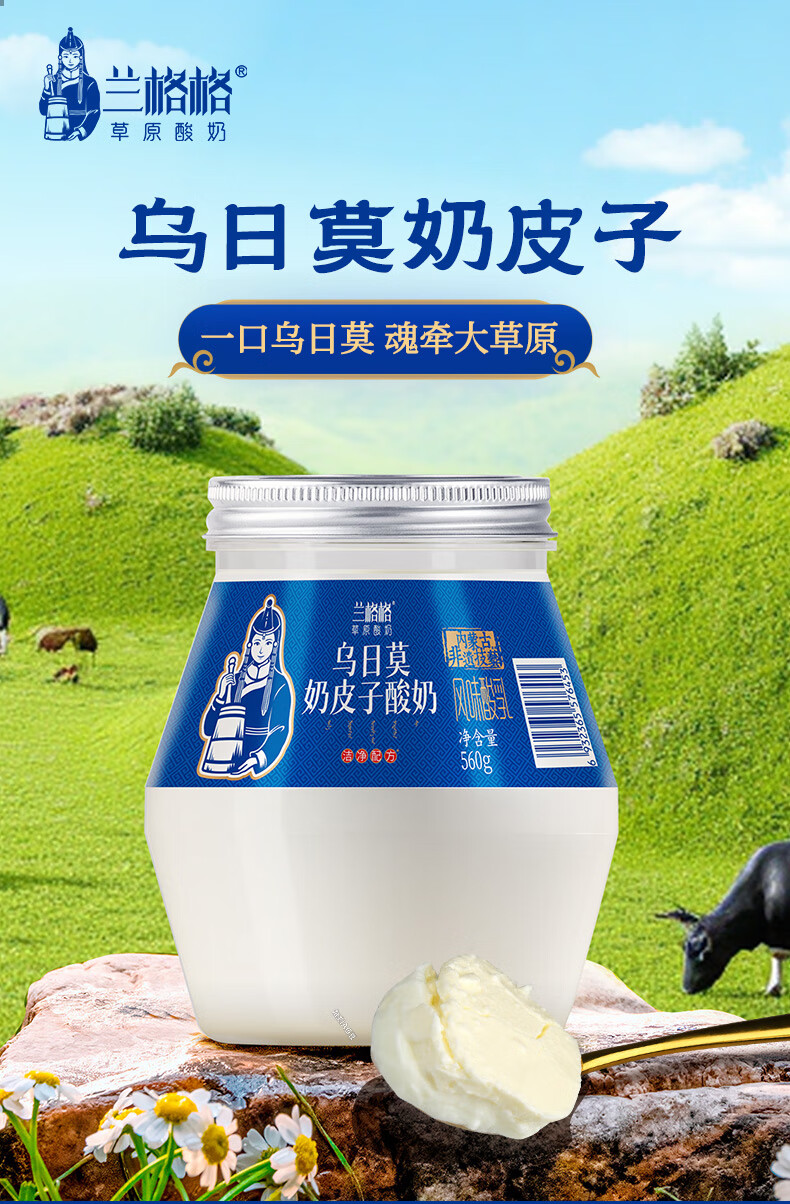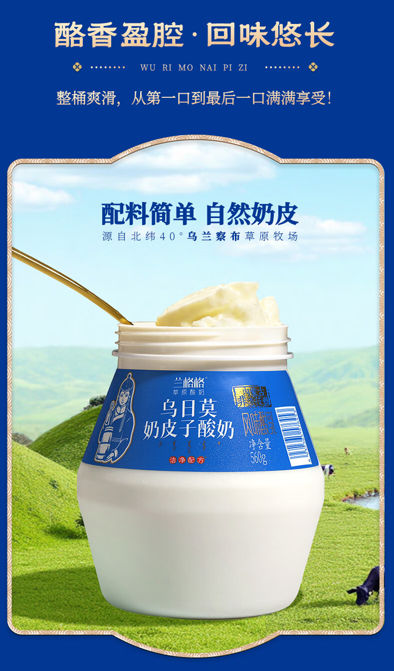 兰格格 草原酸奶 乌日莫奶皮子酸奶560g*1桶 生鲜低温酸牛奶 酸奶大桶