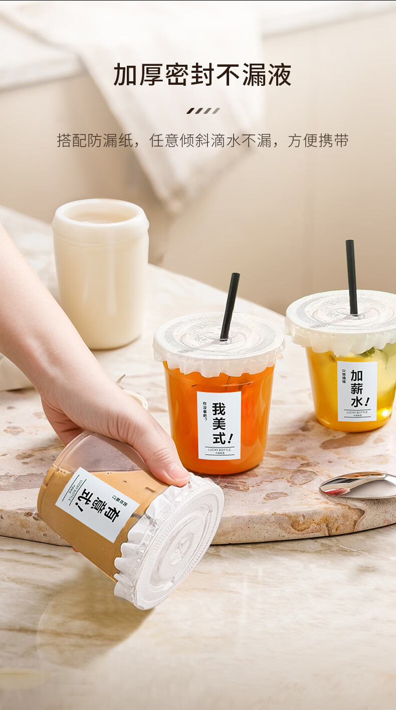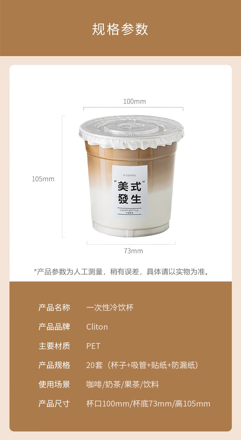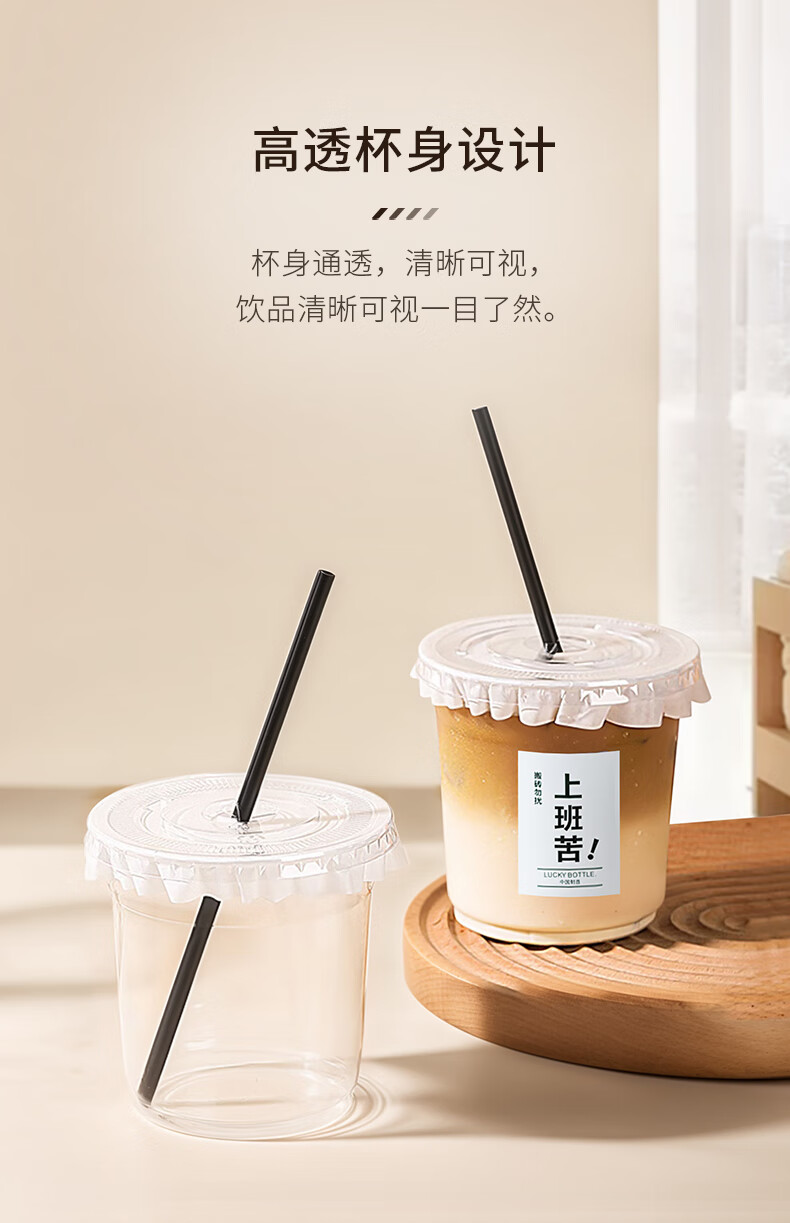 CLITON一次性奶茶杯咖啡杯透明带盖冷饮杯家用商用塑料杯500ml*20套