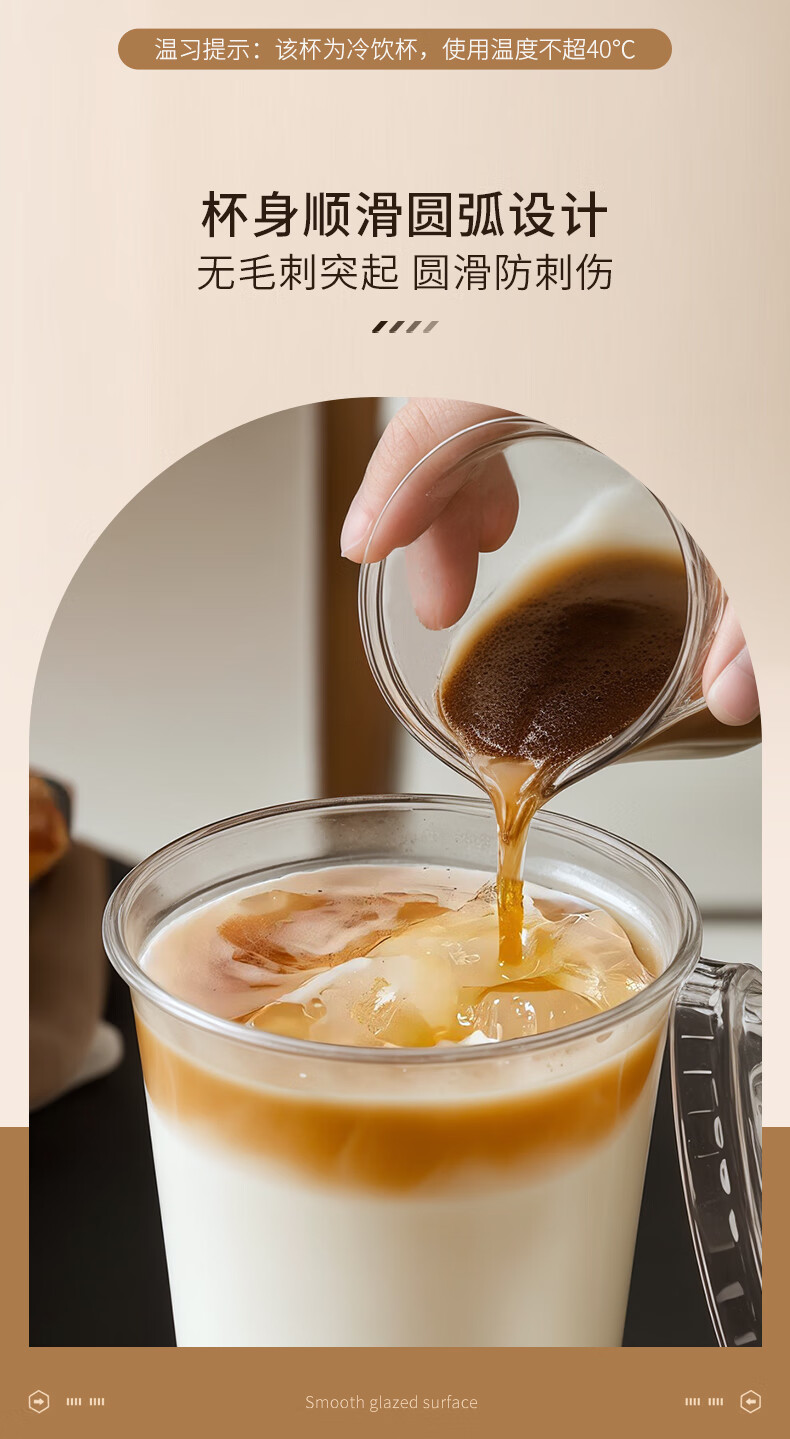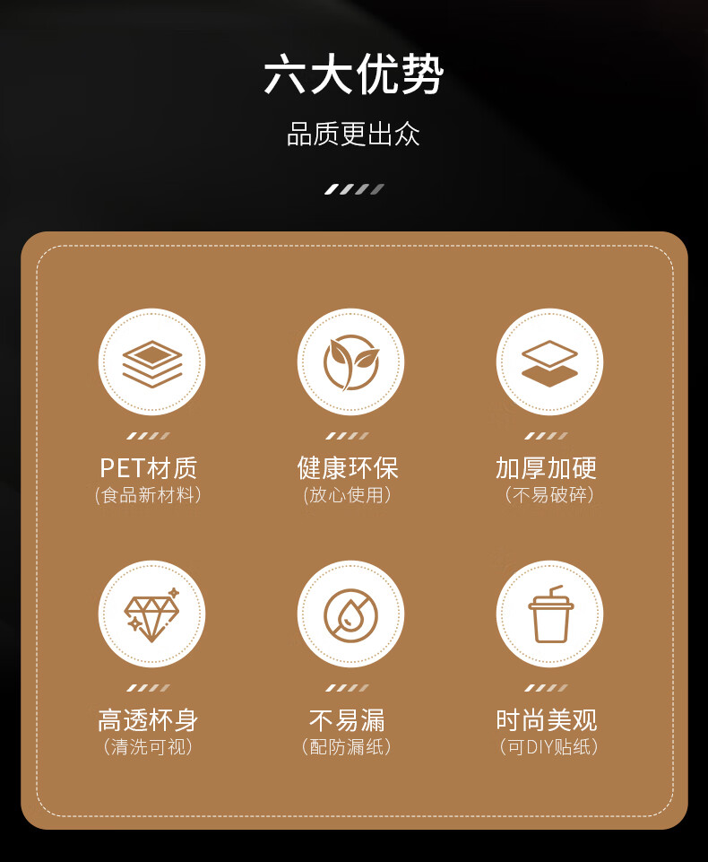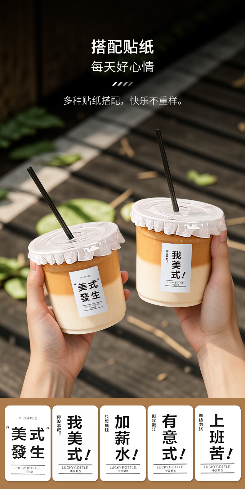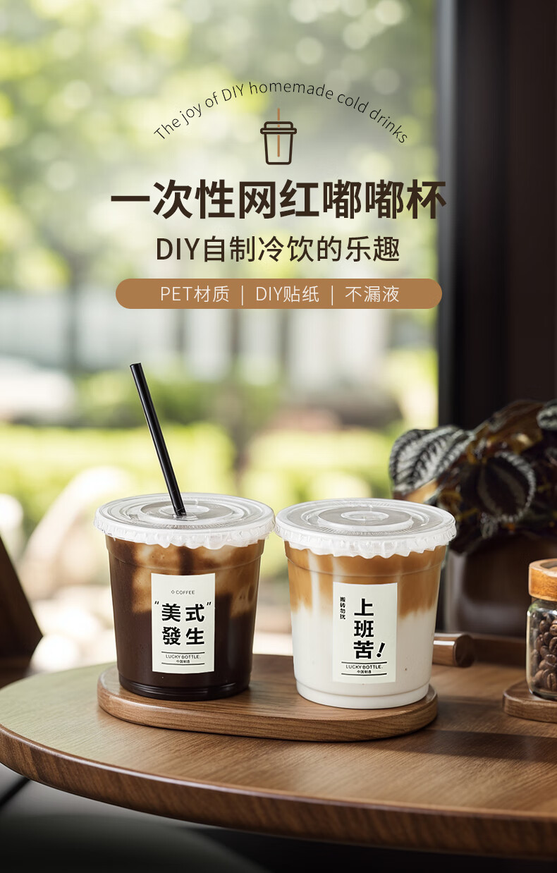 CLITON一次性奶茶杯咖啡杯透明带盖冷饮杯家用商用塑料杯500ml*20套