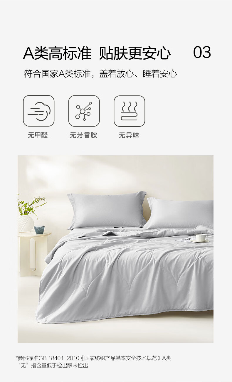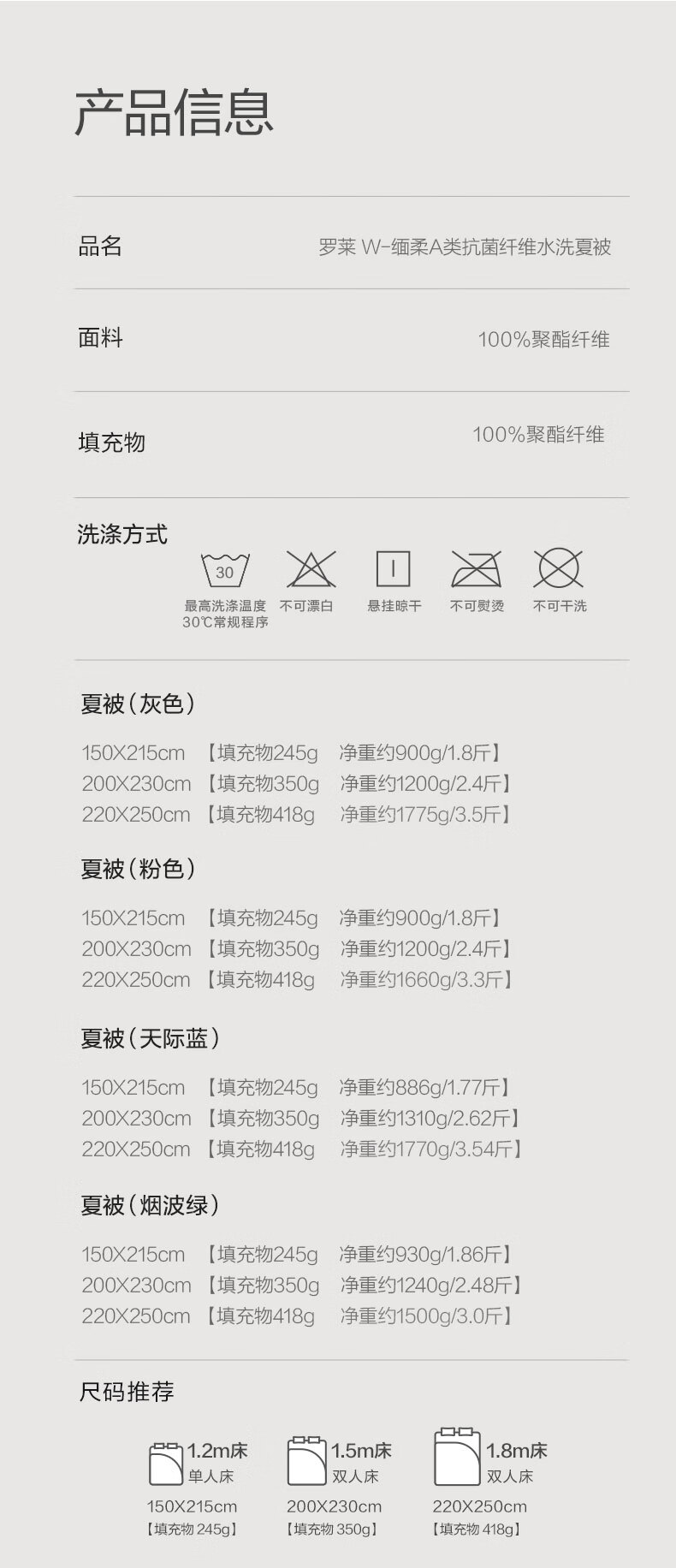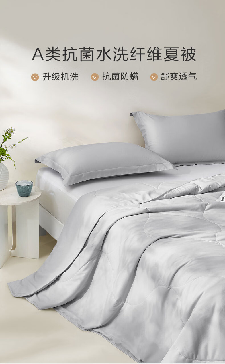 罗莱家纺A类抗菌可机洗夏凉被子可水洗空调被亲肤裸睡单双人 【A类抗菌+可水洗】缅柔灰 200*230cm 夏被