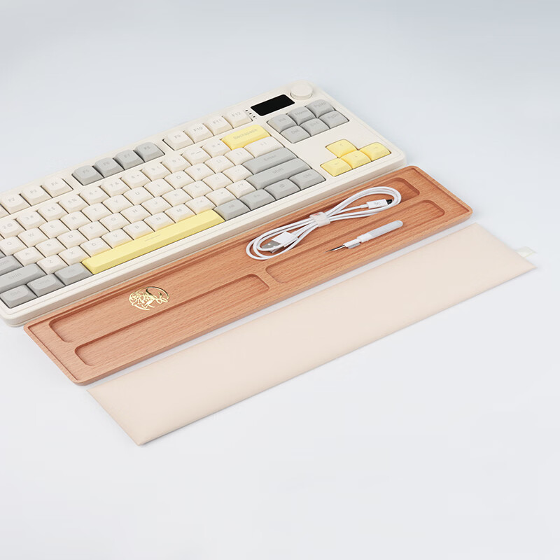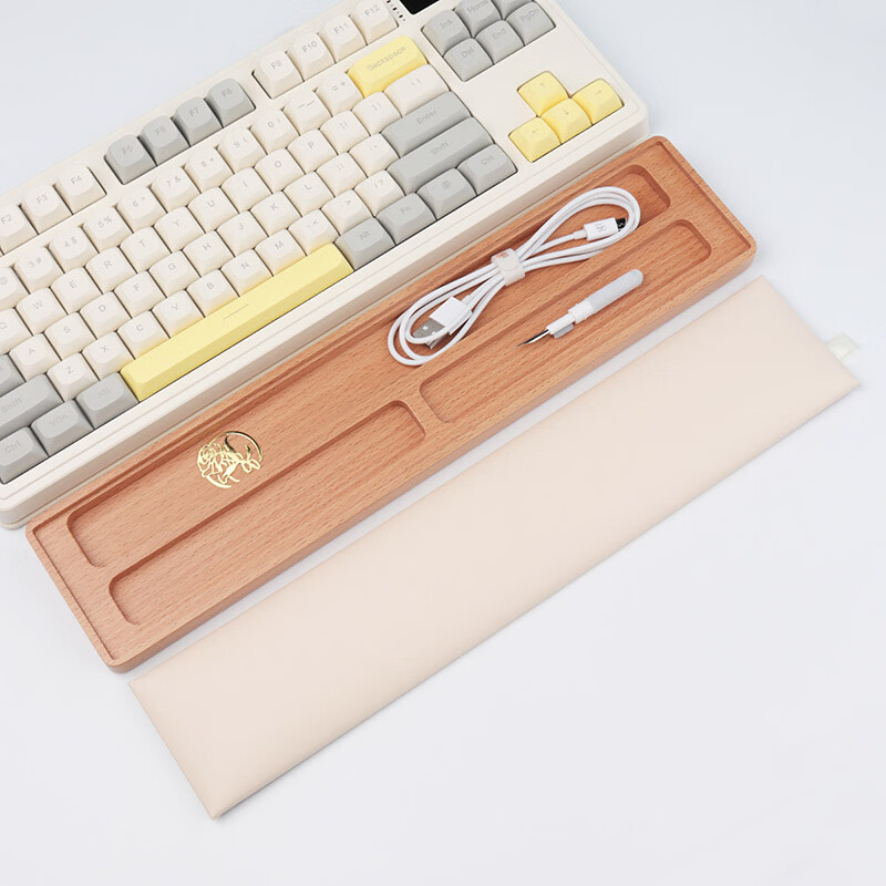 圆佑堂键盘手托黑胡桃木实木机械键盘掌托木质腕托鼠标托护腕垫手腕垫高 (米白色)榉木带储存收纳腕托36cm