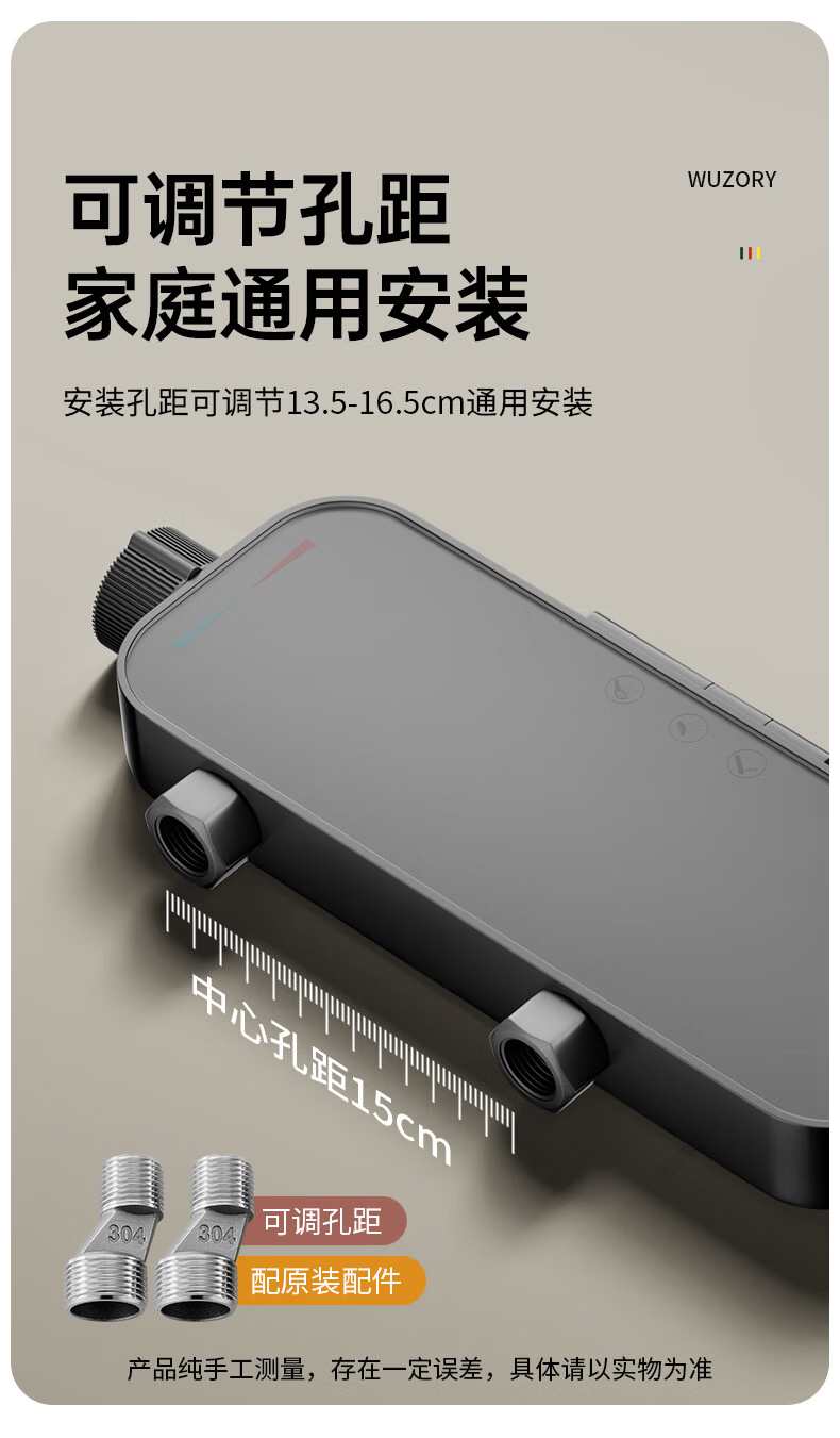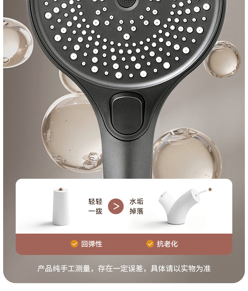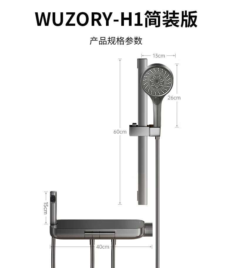 WUZORY【德国】花洒淋浴套装分体式花洒无顶喷浴室淋浴花洒套装卫浴全套 【钛金灰】升降杠套装+圆形手喷 三功能出水丨升级大置物台面