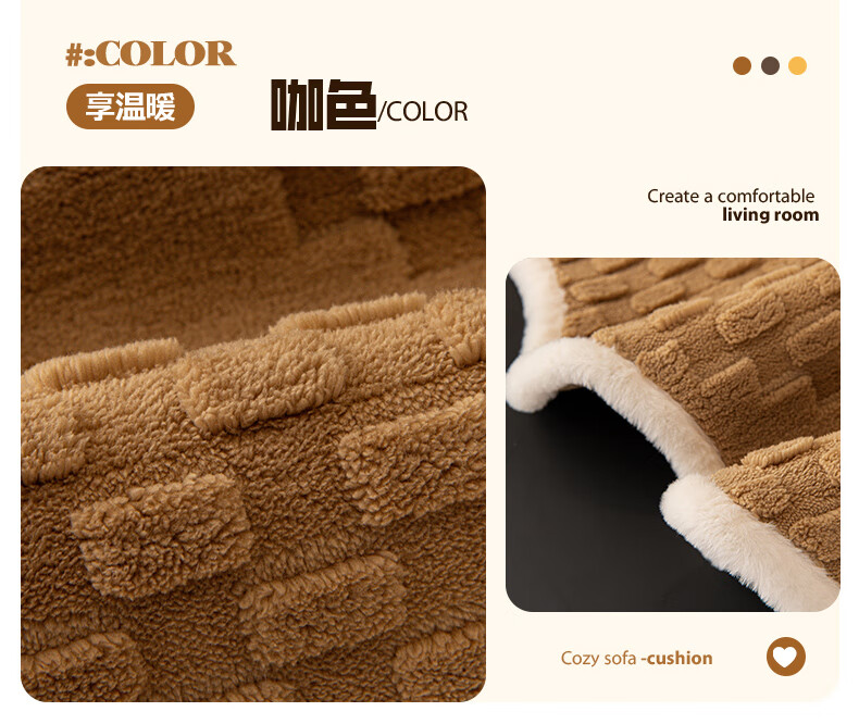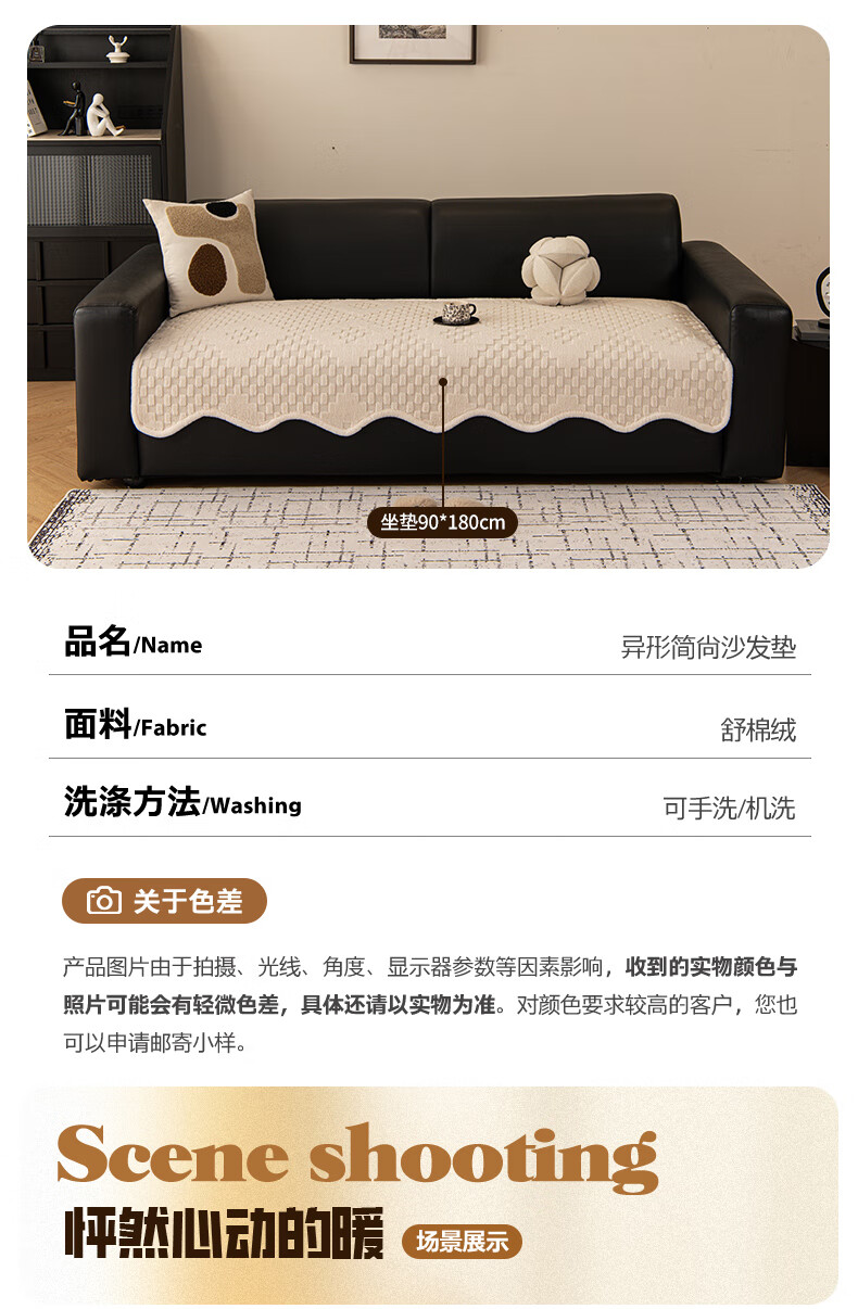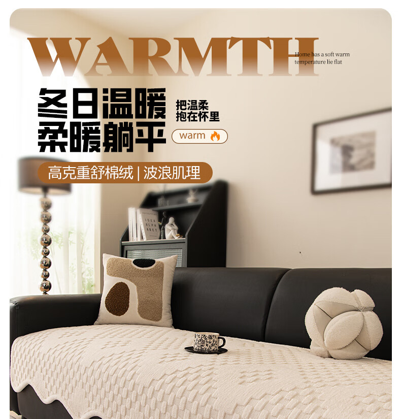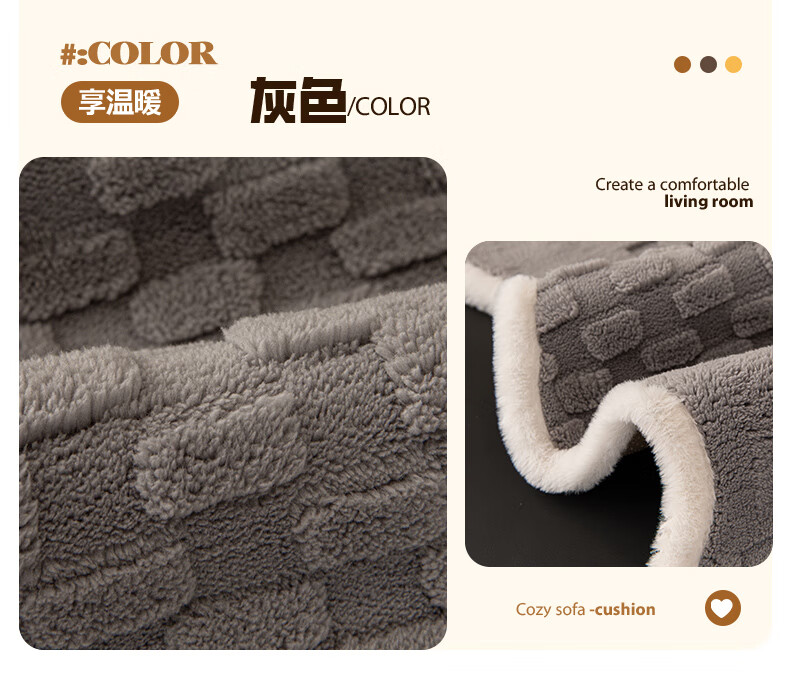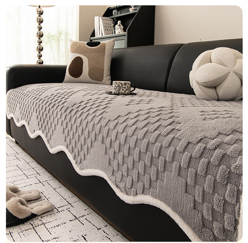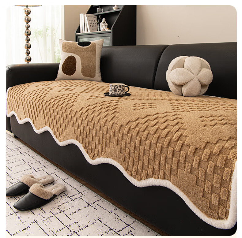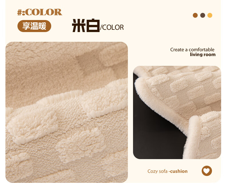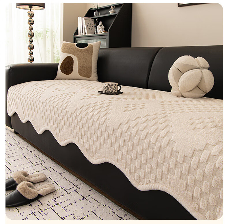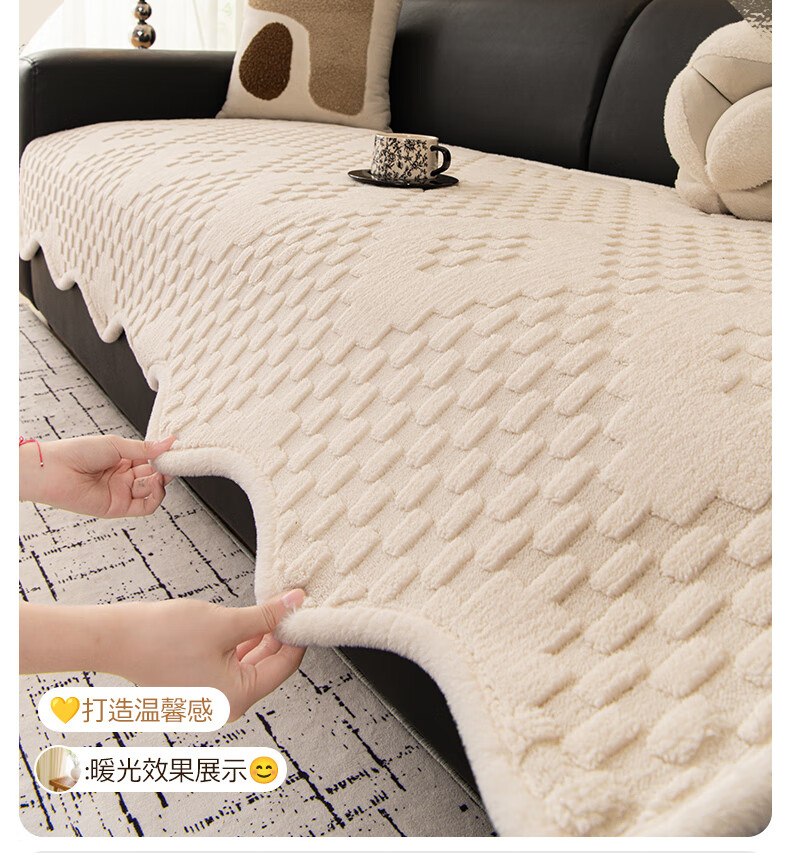 金拾美月奶油风异形沙发垫冬加厚毛绒坐垫秋冬季防滑直排套罩盖布巾 异形雅思-米白 70cm*70cm