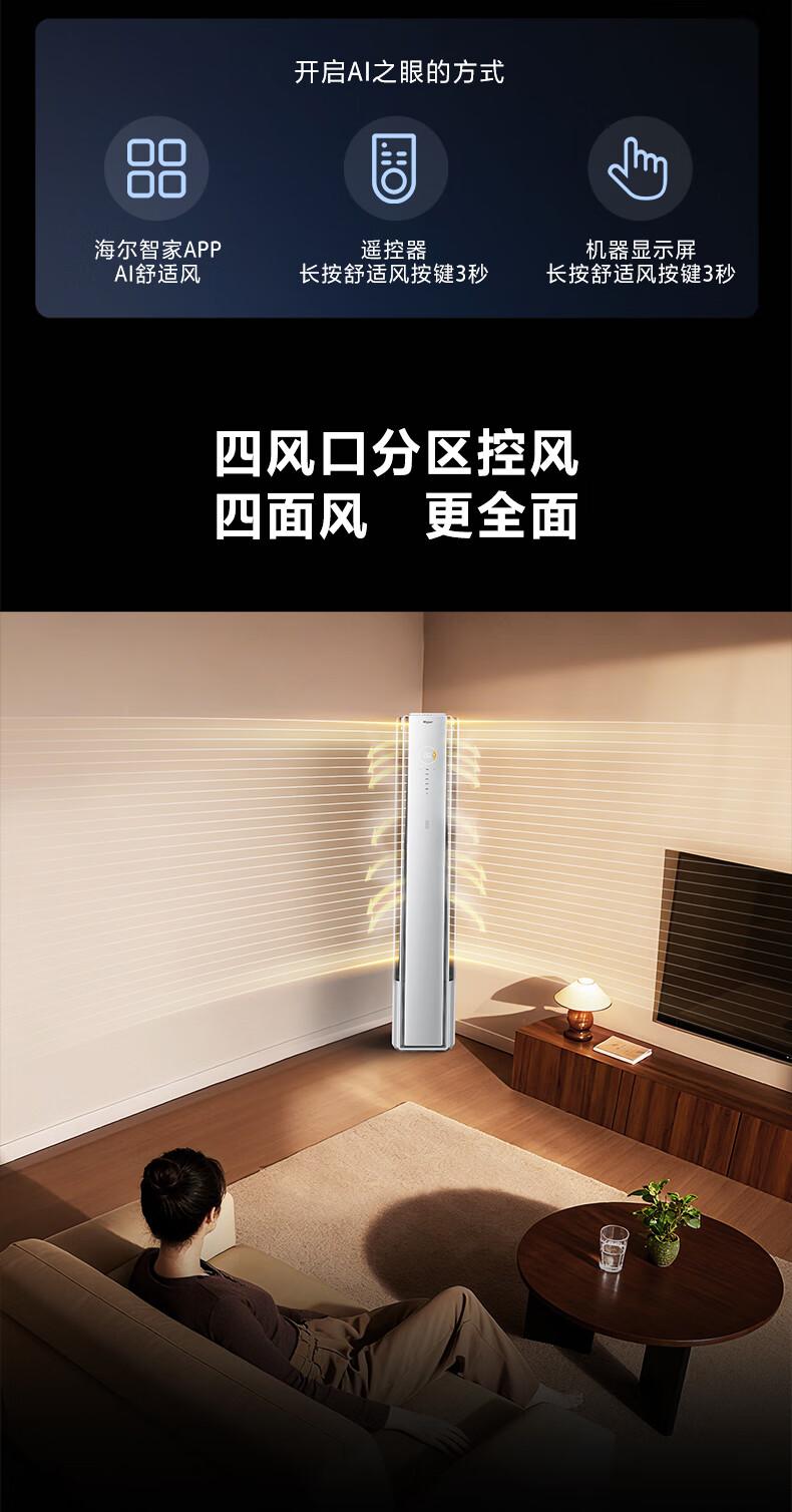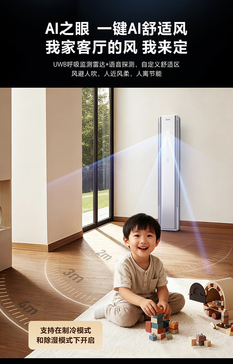 海尔舒适风Pro空调 麦浪套系大3匹客厅立式柜机 一级变频冷暖双排铜管 家电国家补贴KFR-72LW/E2-1Pro