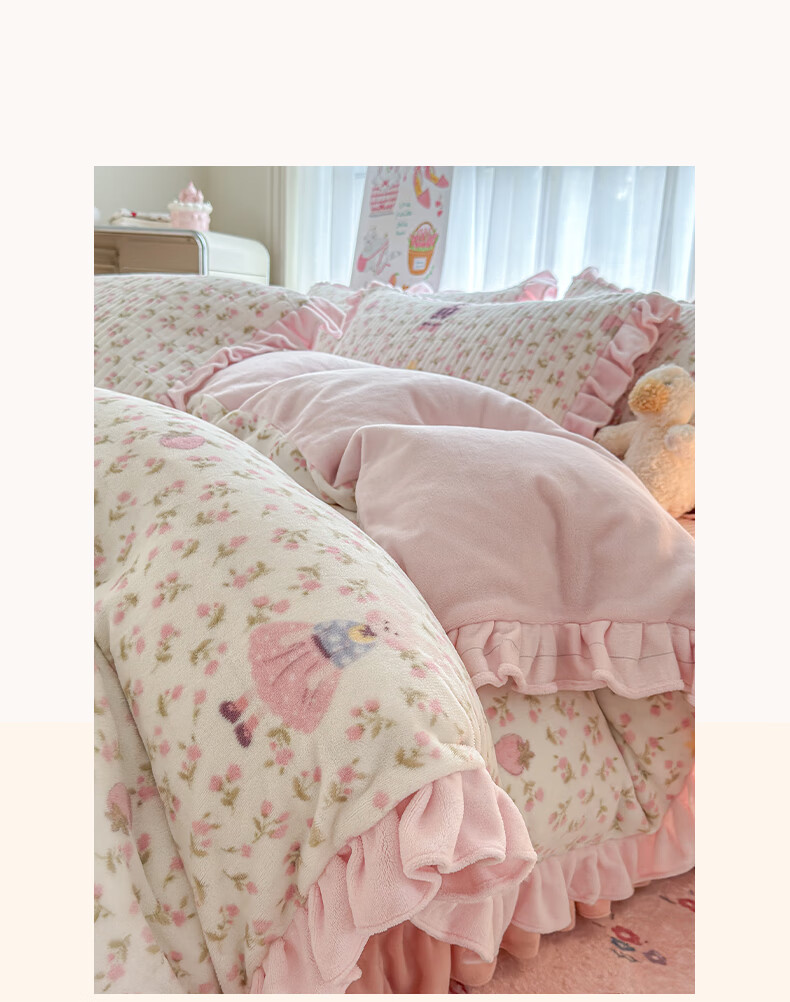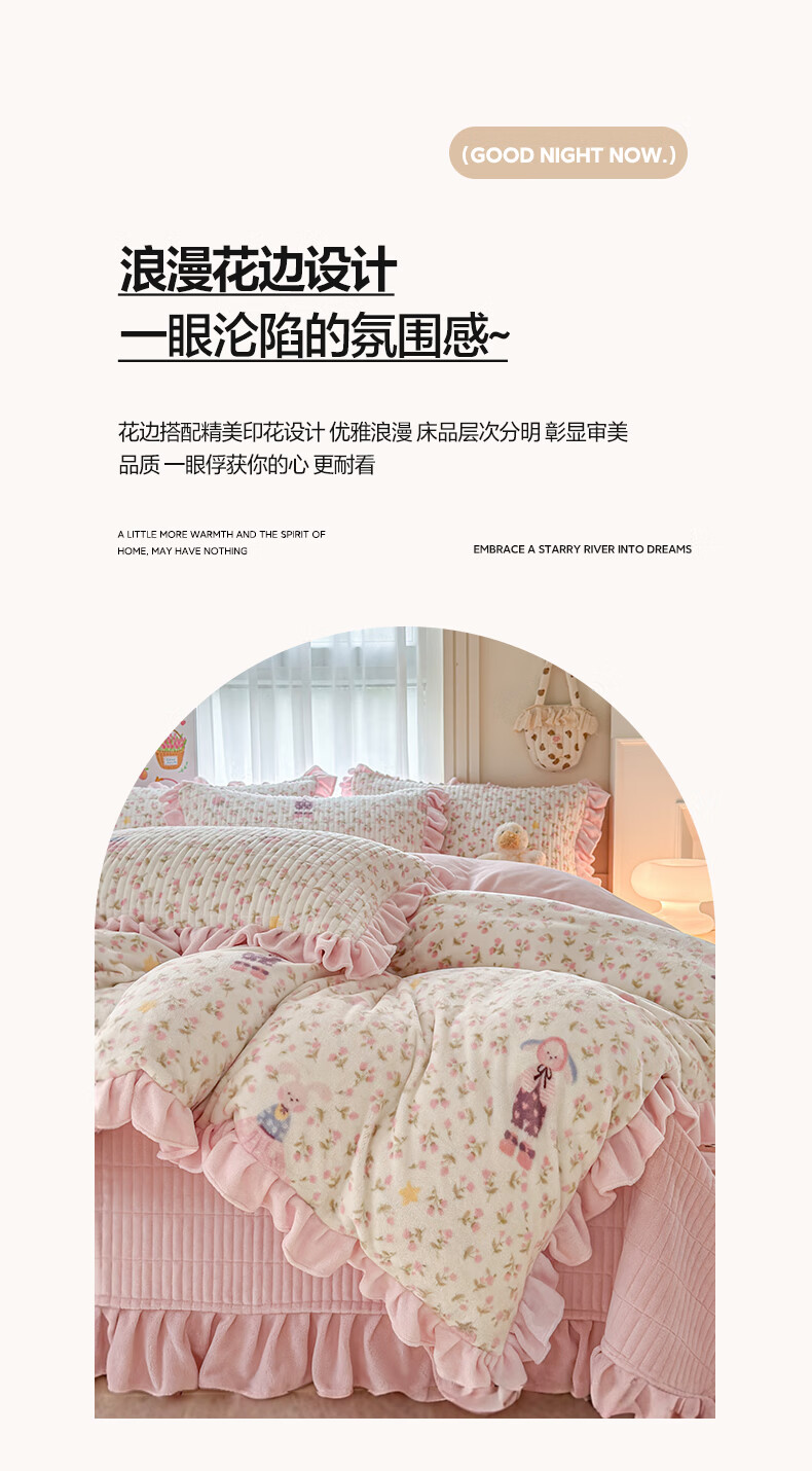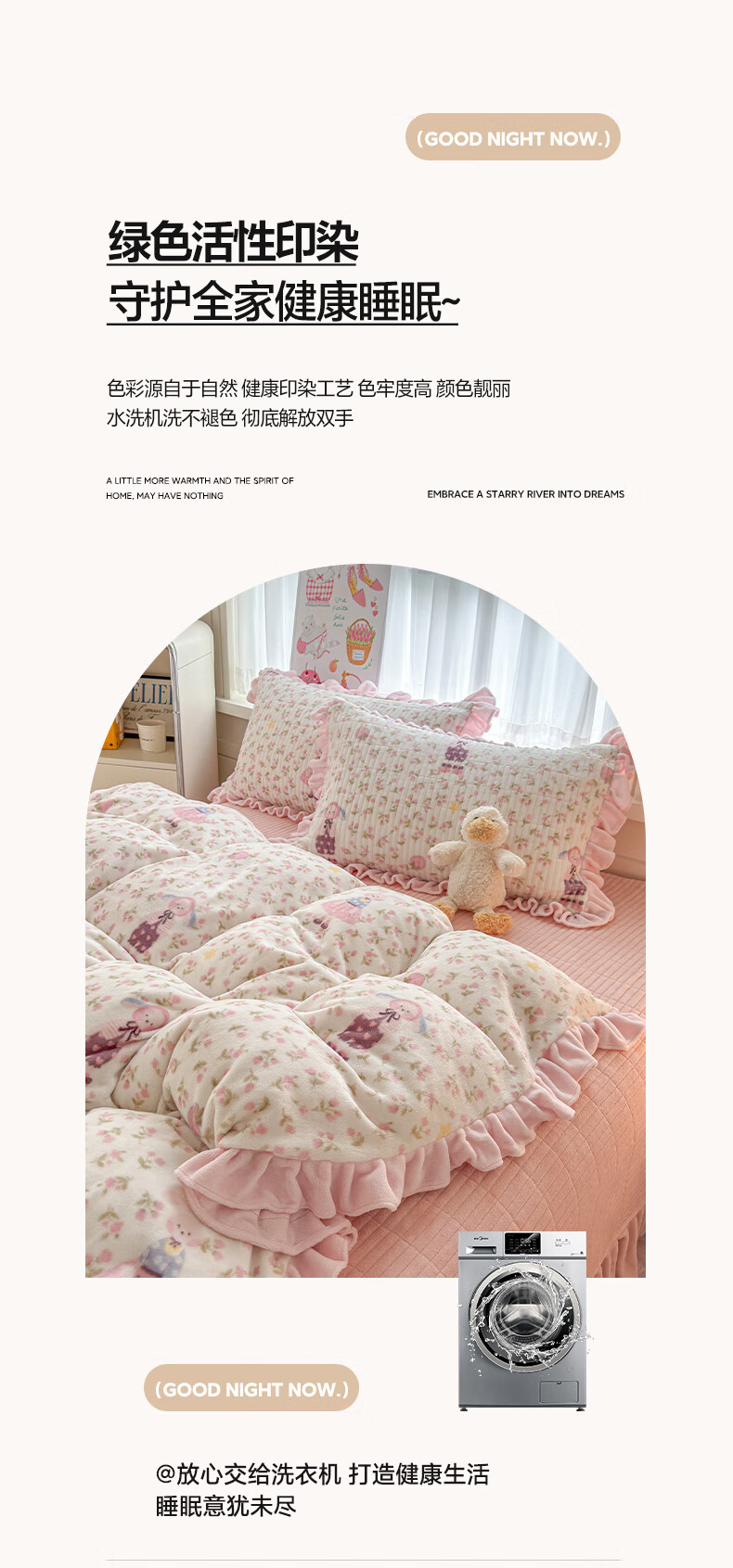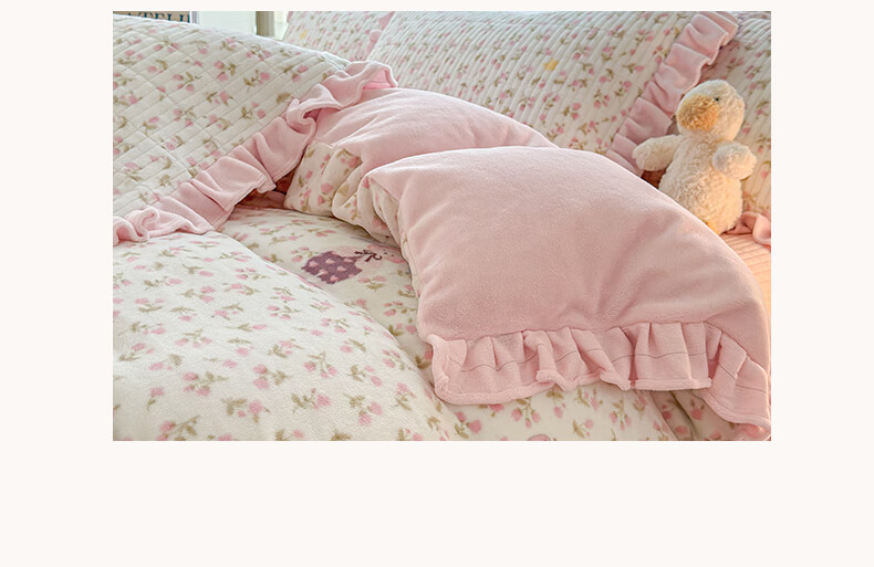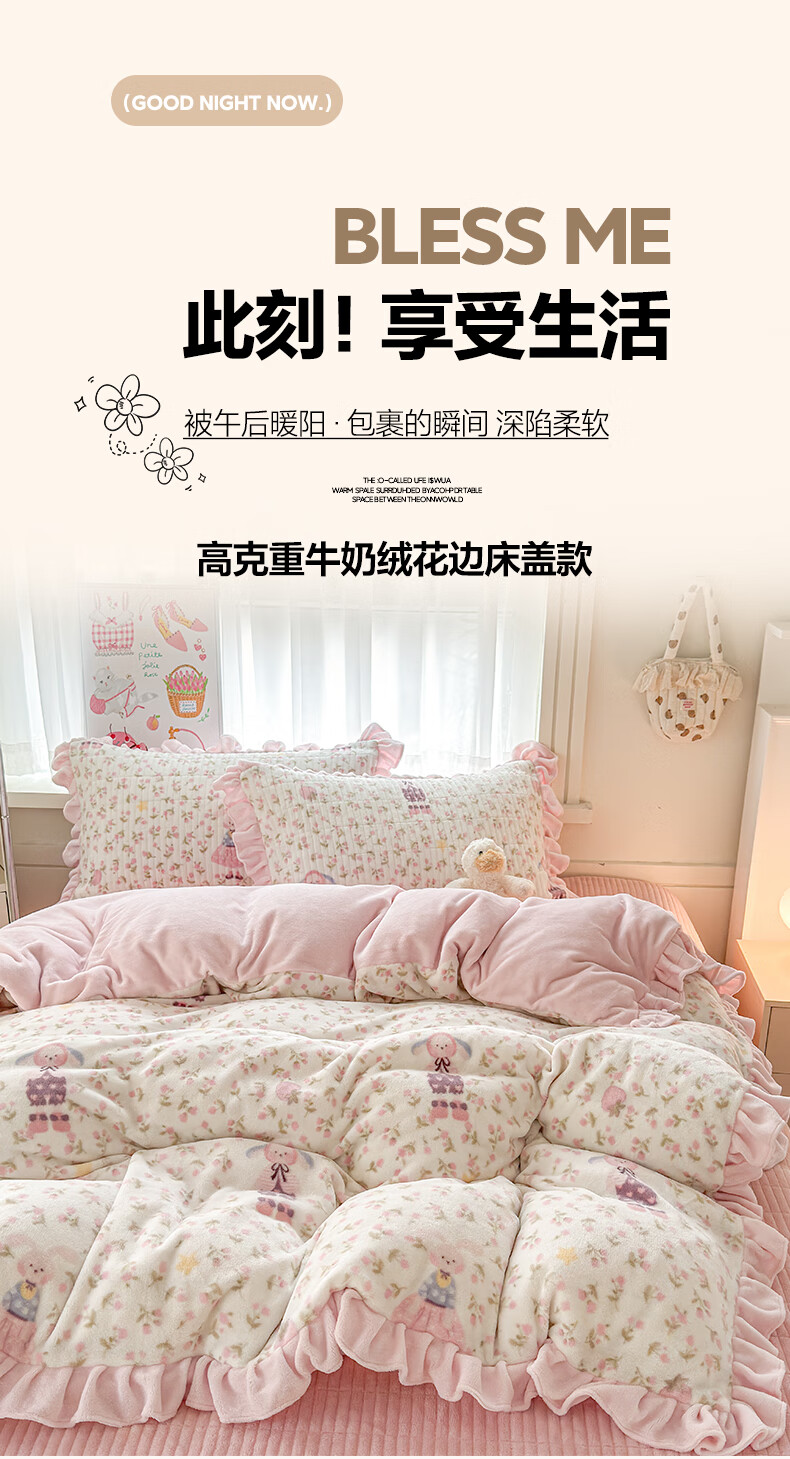 猫人(MiiOW)冬季加厚卡通牛奶绒床上四件套珊瑚绒家用毛绒床单被套床盖款床品 莓莓兔粉【厚实保暖】 0.9m 床盖款 三件套-150x200cm被套