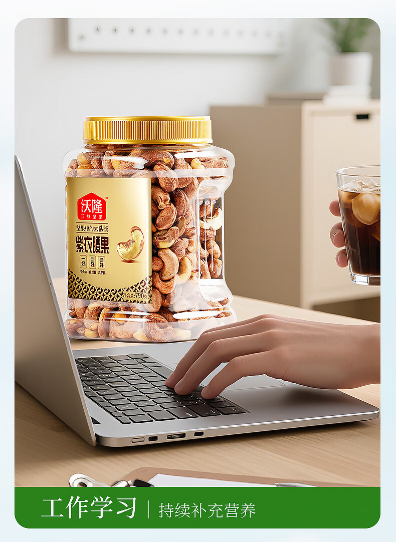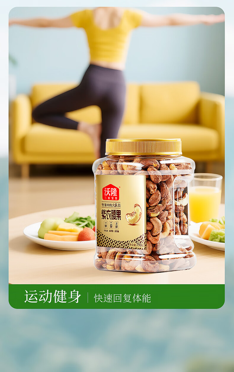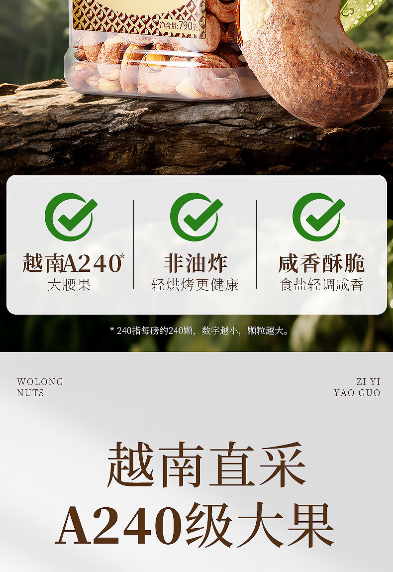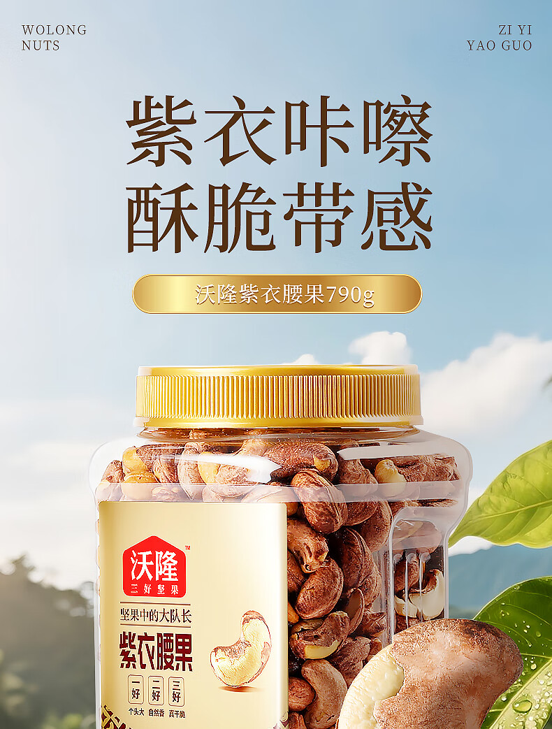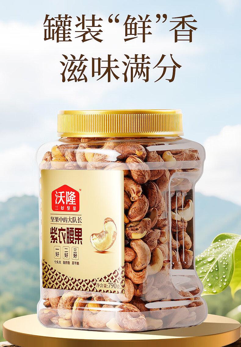 沃隆 紫皮腰果每日坚果腰果仁坚果炒货休闲零食罐装大颗粒 紫衣腰果210g【AA级大果】