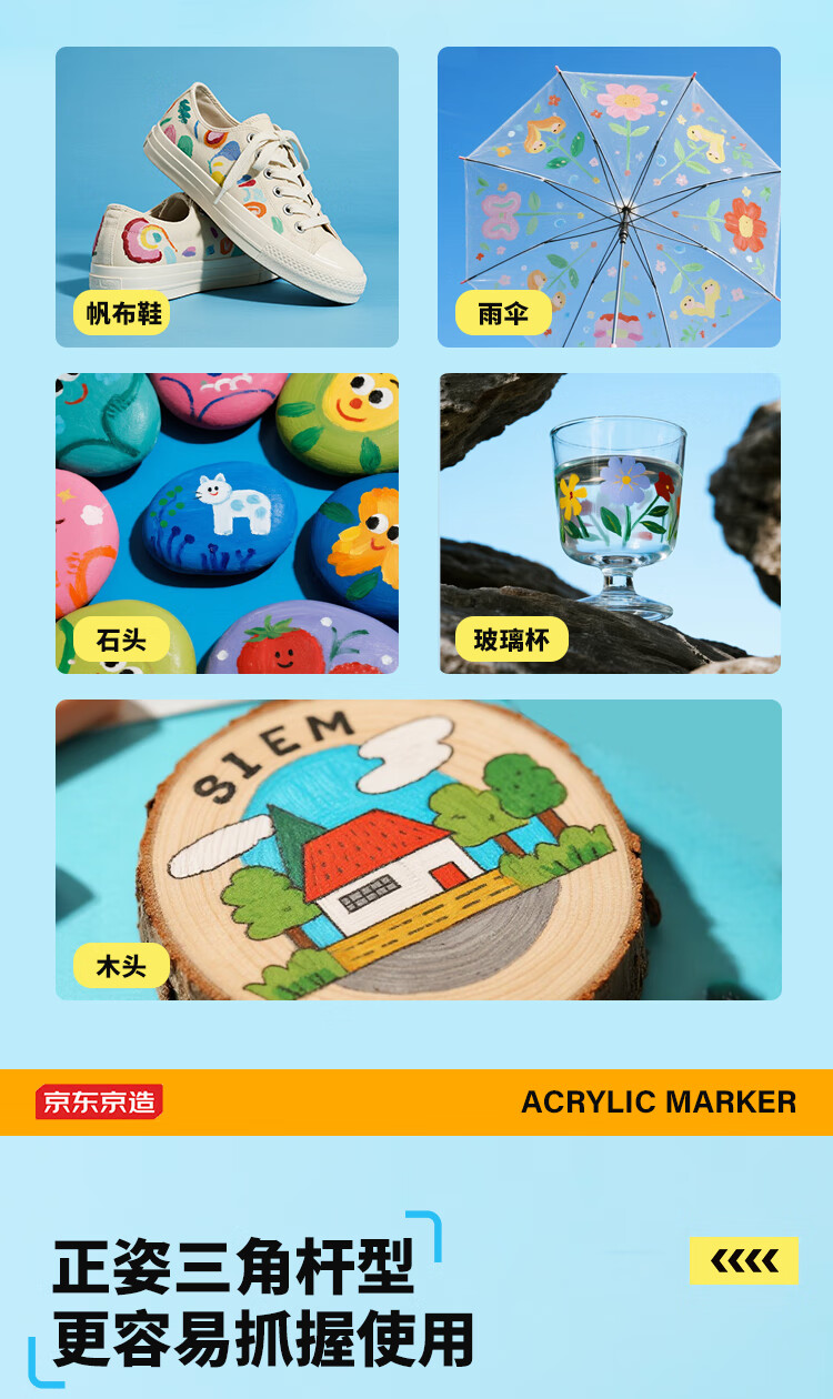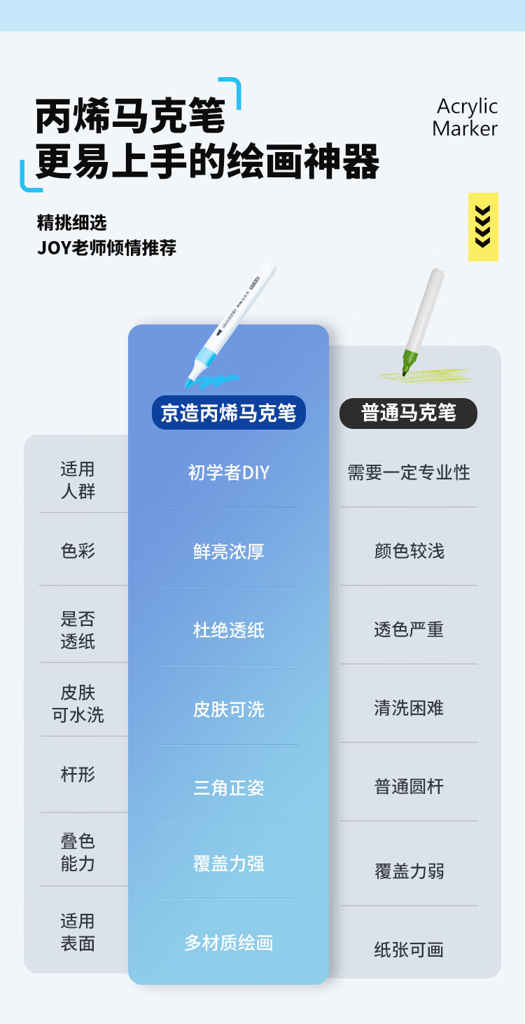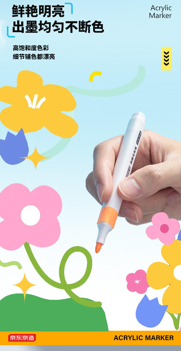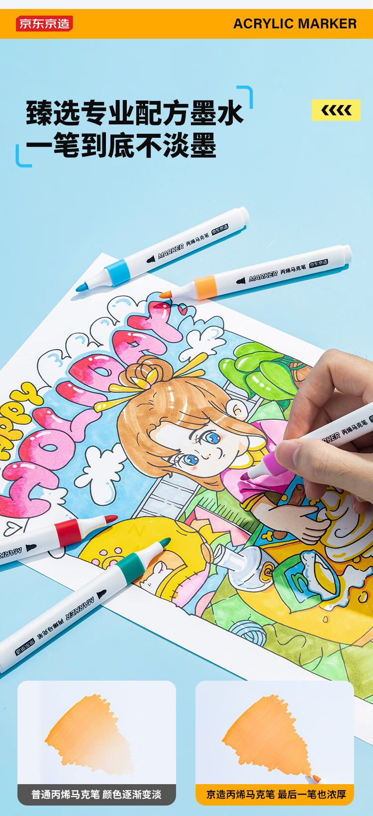 京东京造【热门商品】48色丙烯马克笔 学生速干不透纸不透色 正姿水彩笔 皮肤可水洗PP盒装画笔叠色记号笔