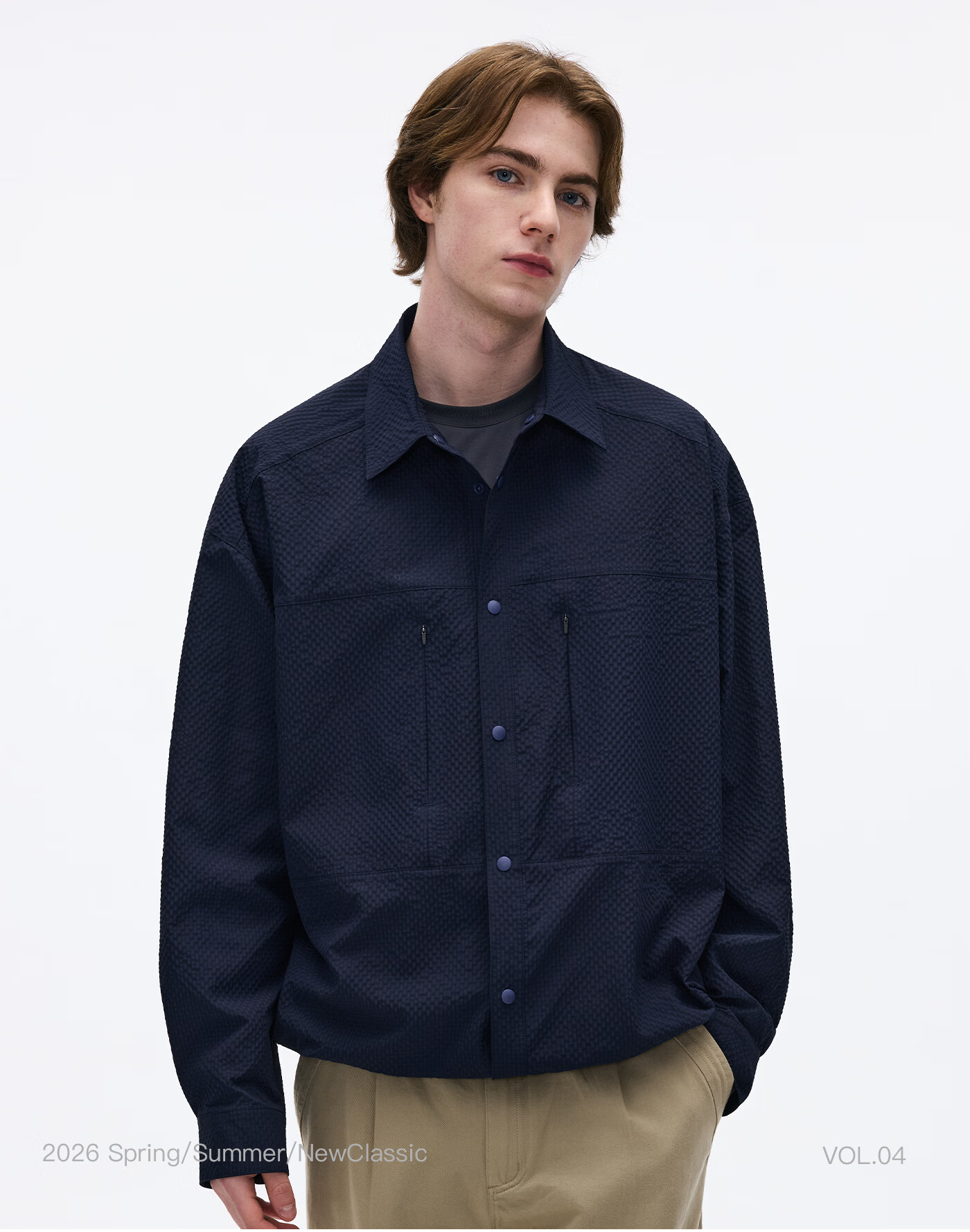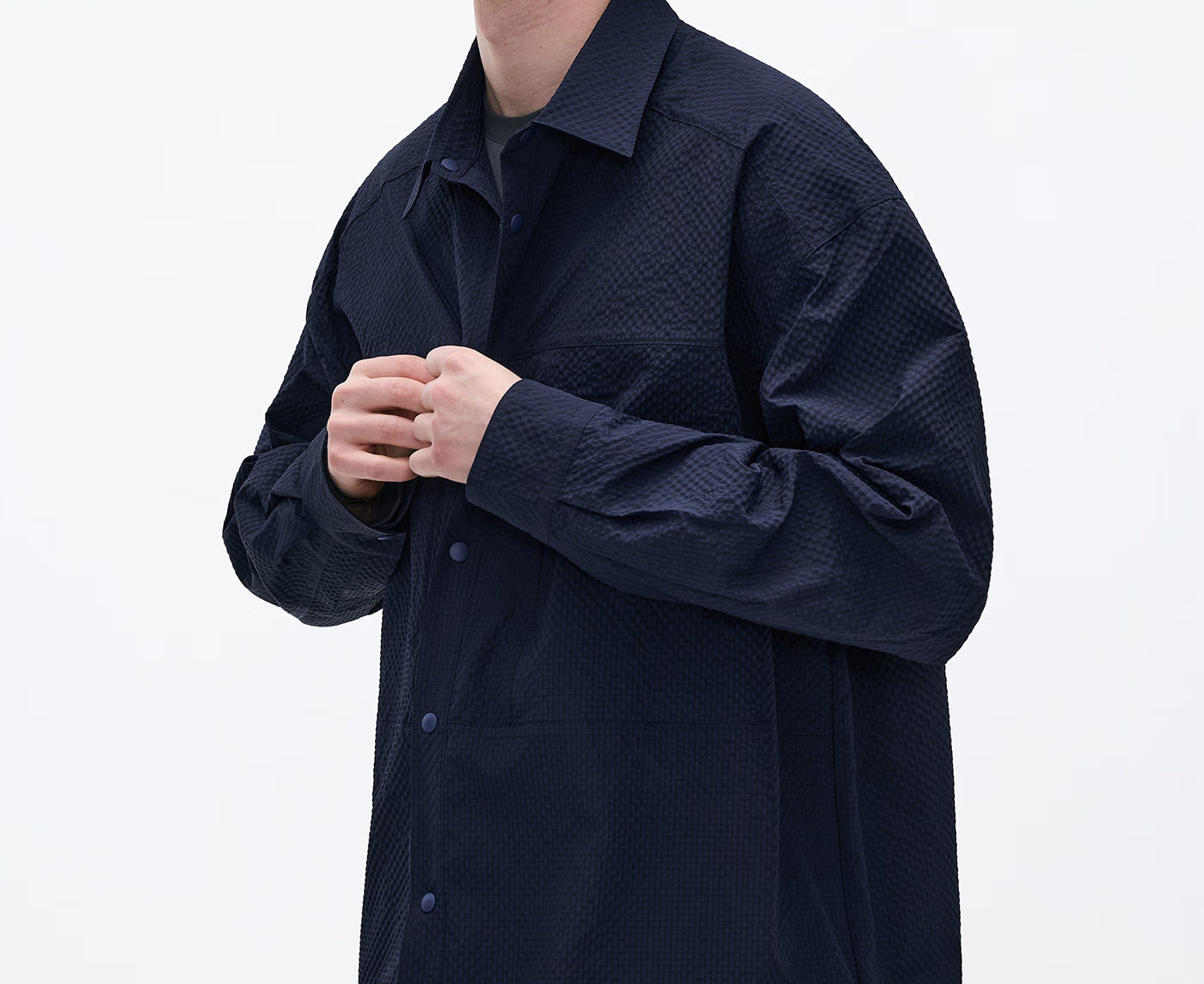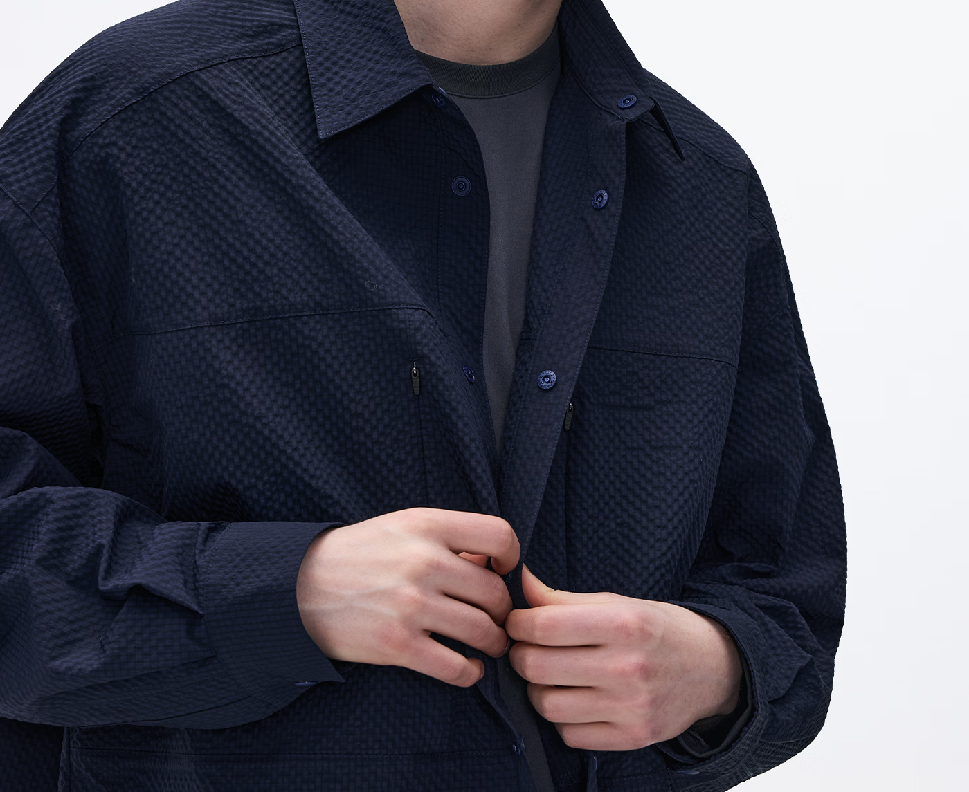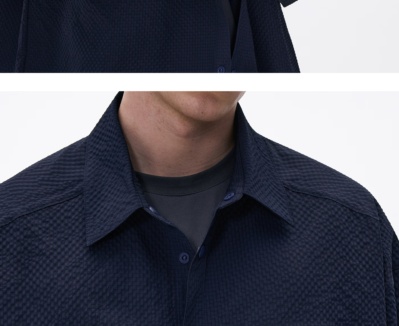 熊猫·本(ben.panda)泡泡纱长袖衬衫男休闲翻领通勤外套上衣2026春季新款 藏青色 M