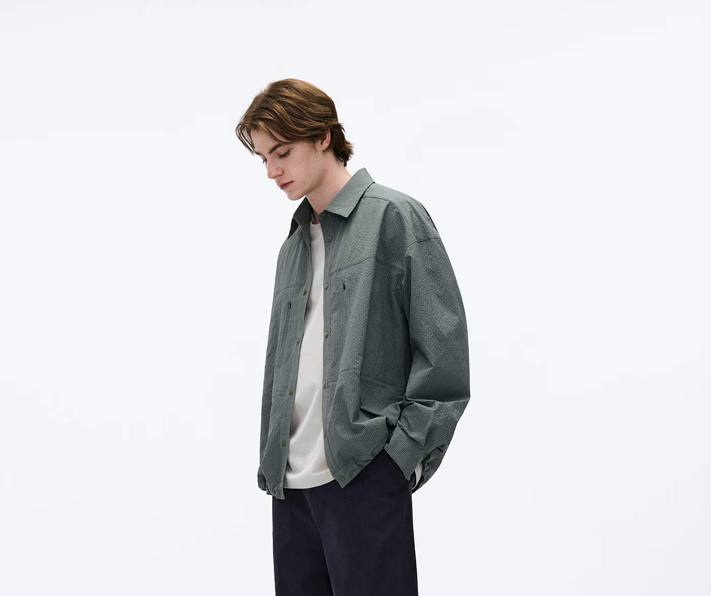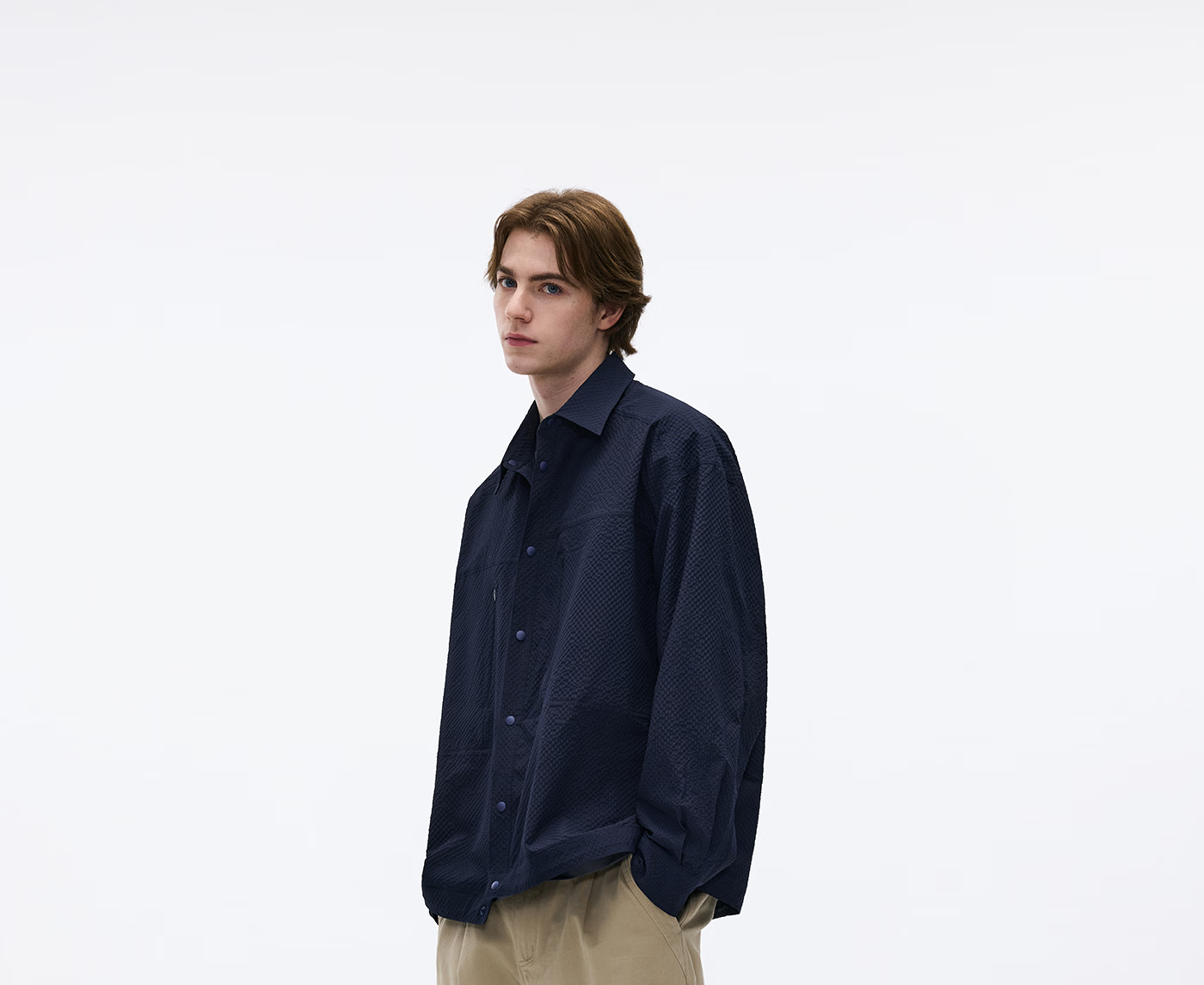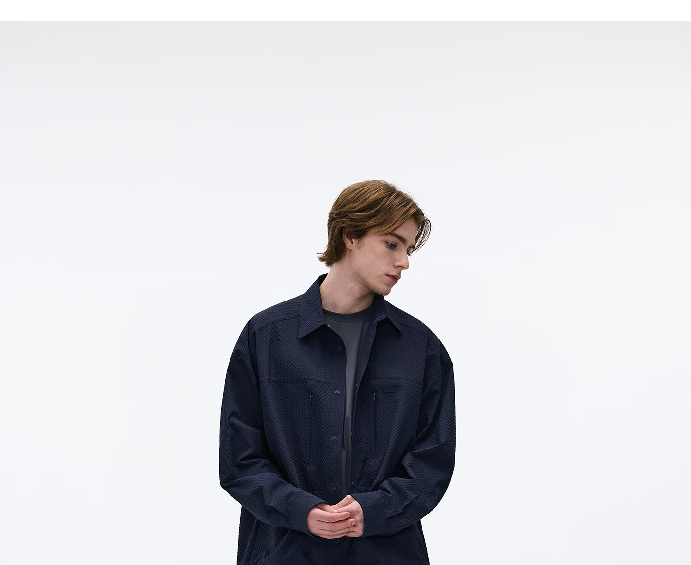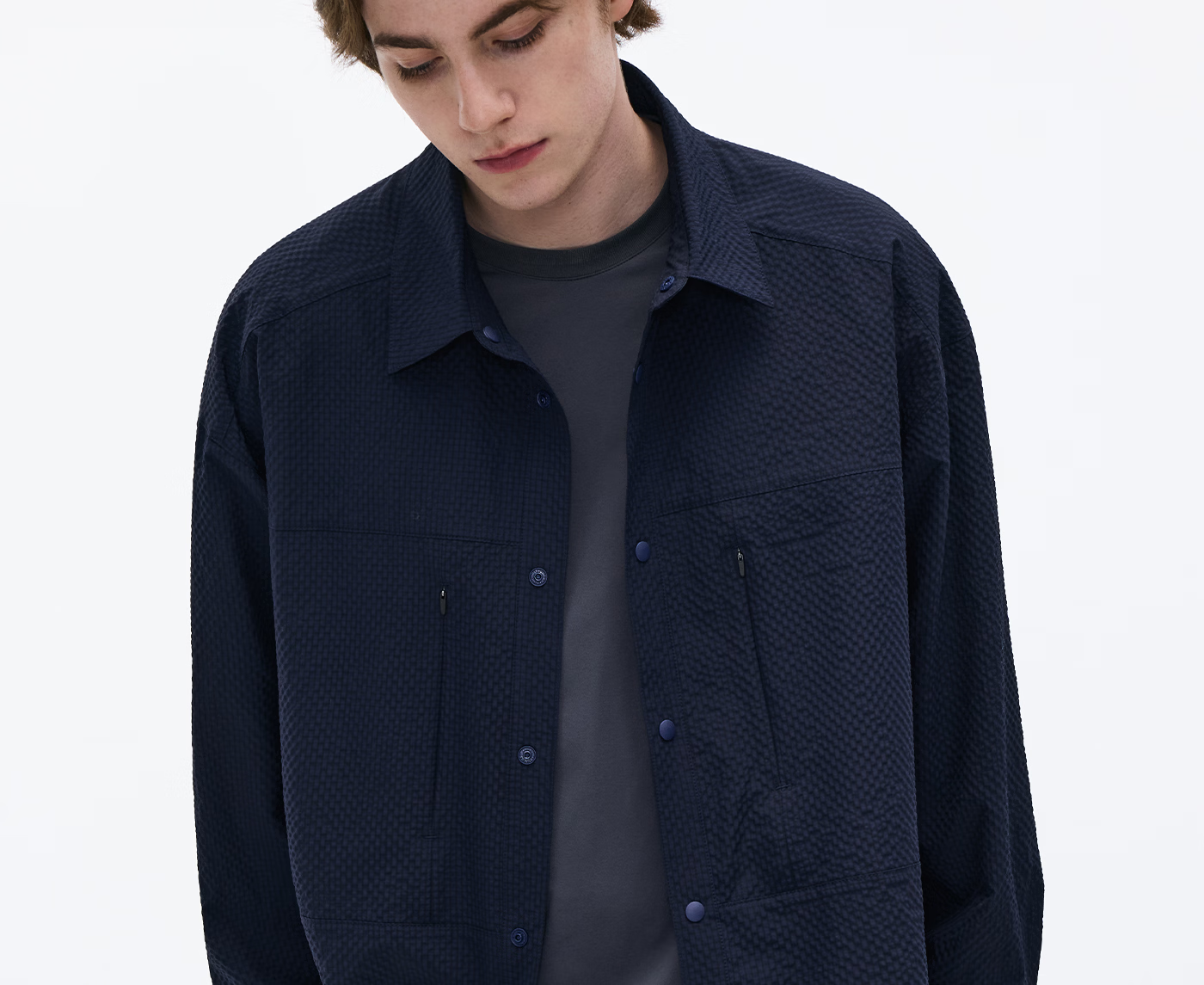 熊猫·本(ben.panda)泡泡纱长袖衬衫男休闲翻领通勤外套上衣2026春季新款 藏青色 M