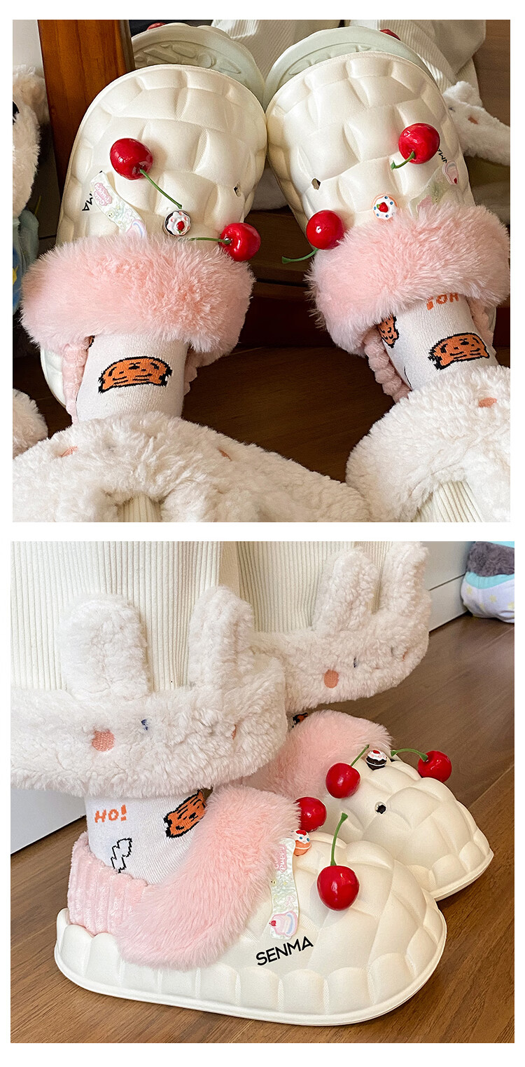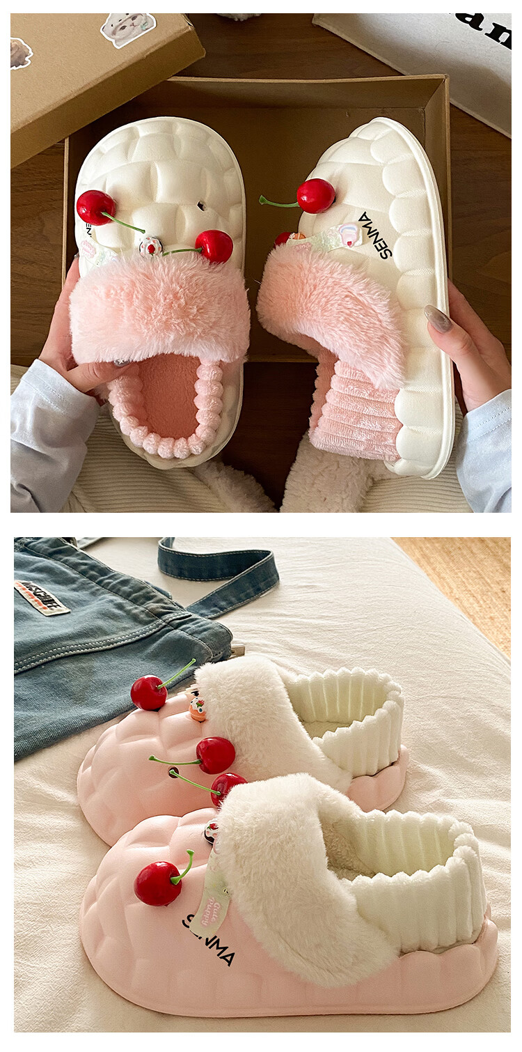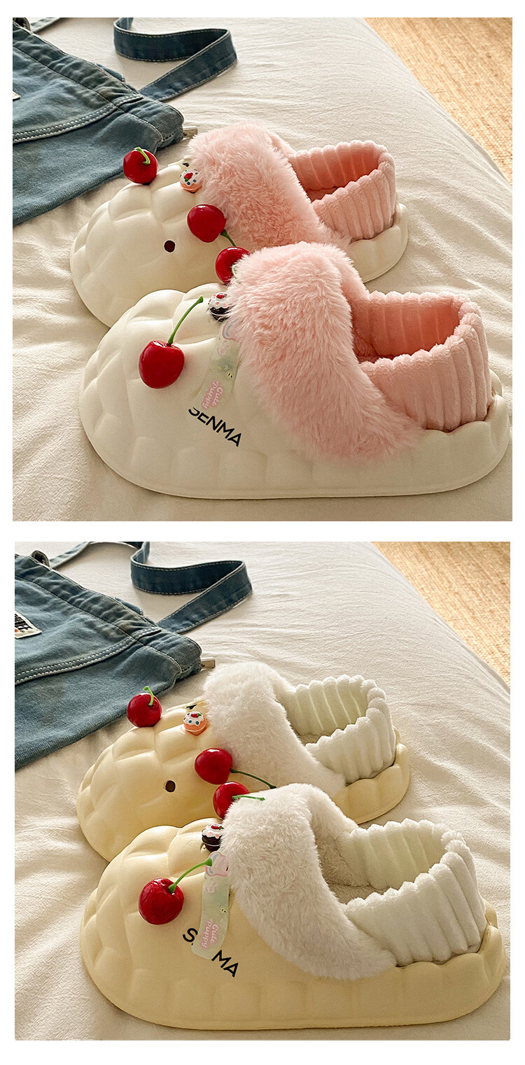 森馬女款春季2026新款居家室内加绒保暖棉鞋学生宿舍踩屎感包跟棉拖鞋 白粉【基础款】 36-37 【现货秒发】