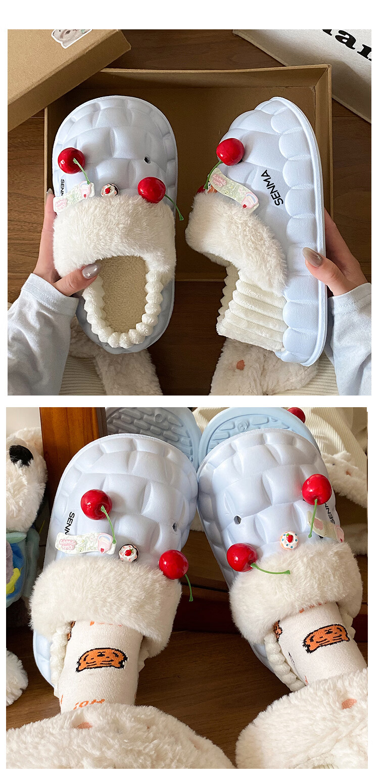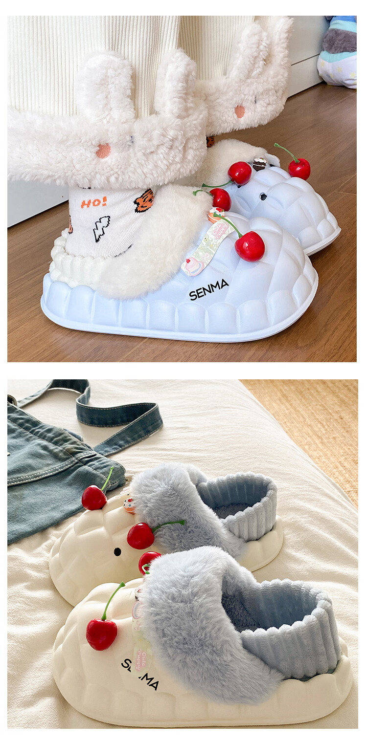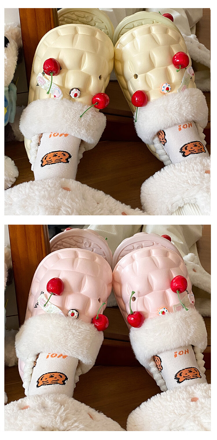森馬女款春季2026新款居家室内加绒保暖棉鞋学生宿舍踩屎感包跟棉拖鞋 白粉【基础款】 36-37 【现货秒发】