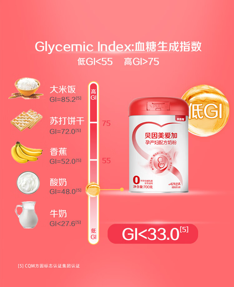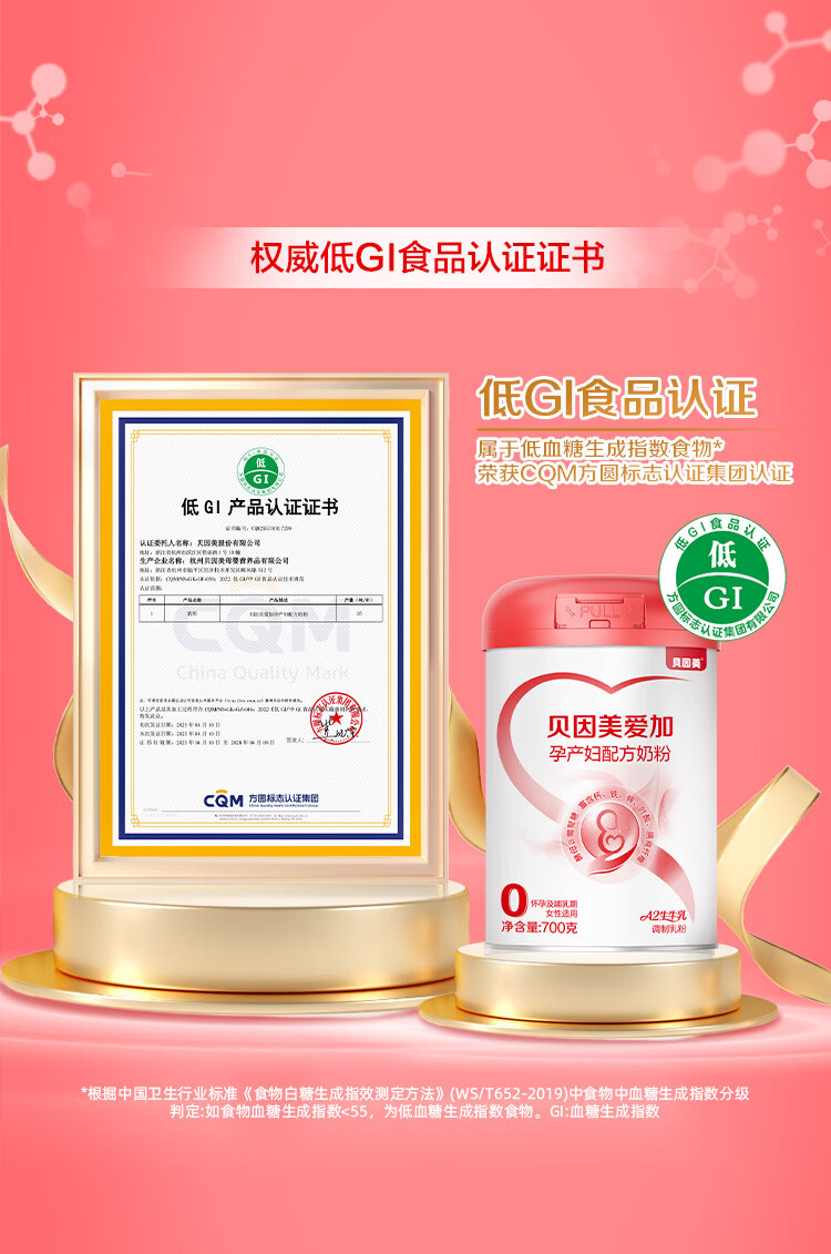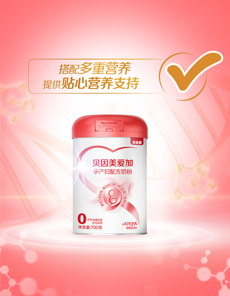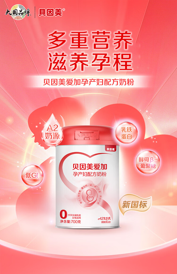 贝因美(Beingmate)爱加低GI孕妇奶粉大罐700g 科学配比控糖 乳铁蛋白膳食纤维叶酸