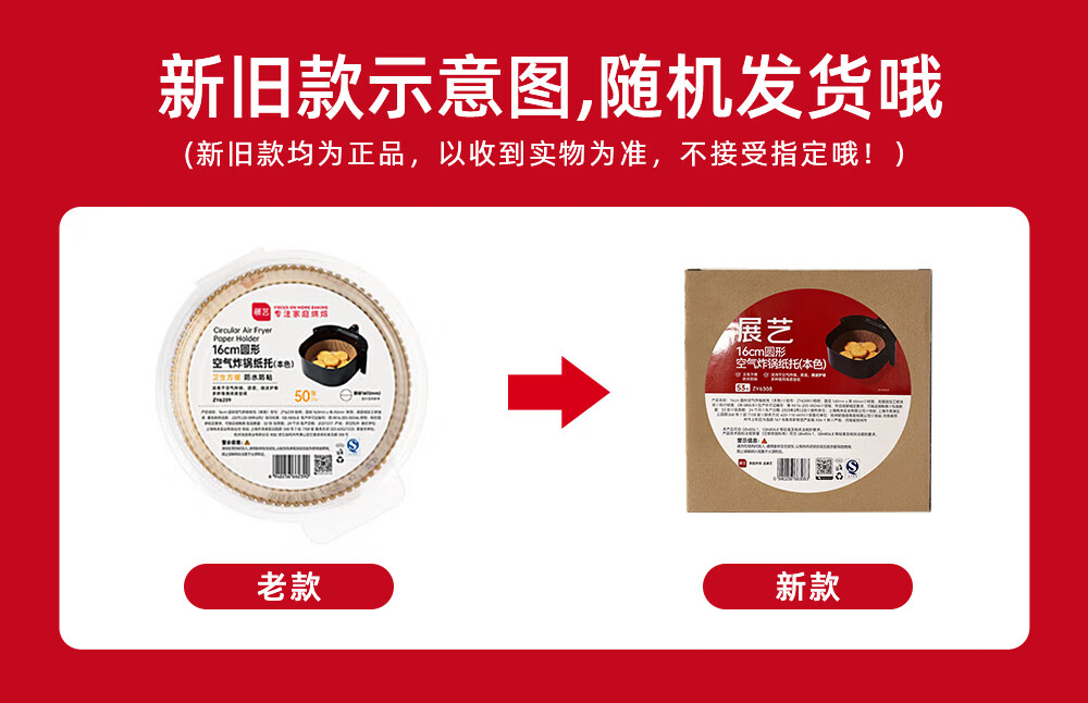 展艺圆形空气炸锅纸托53只装16cm 加厚加高食品级原木纸浆烘焙纸新年