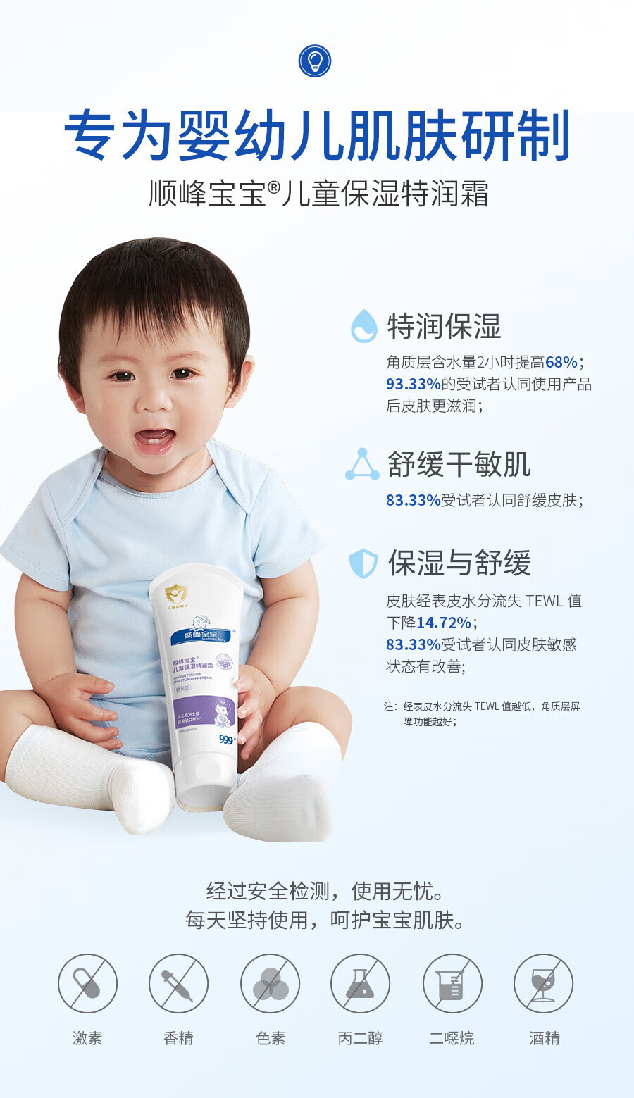 顺峰宝宝儿童保湿特润霜225g面霜婴儿保湿霜新生儿面霜舒缓保湿润肤特润型 特润霜225g