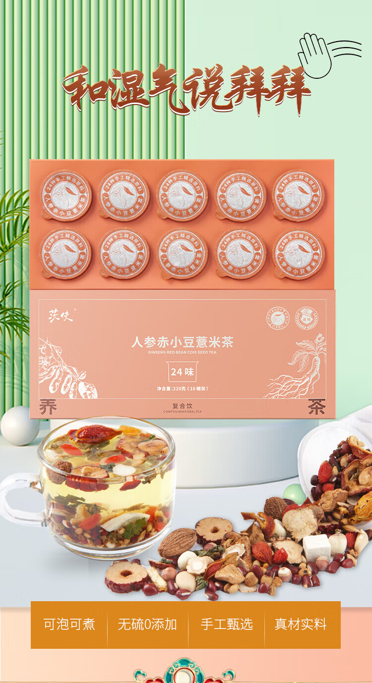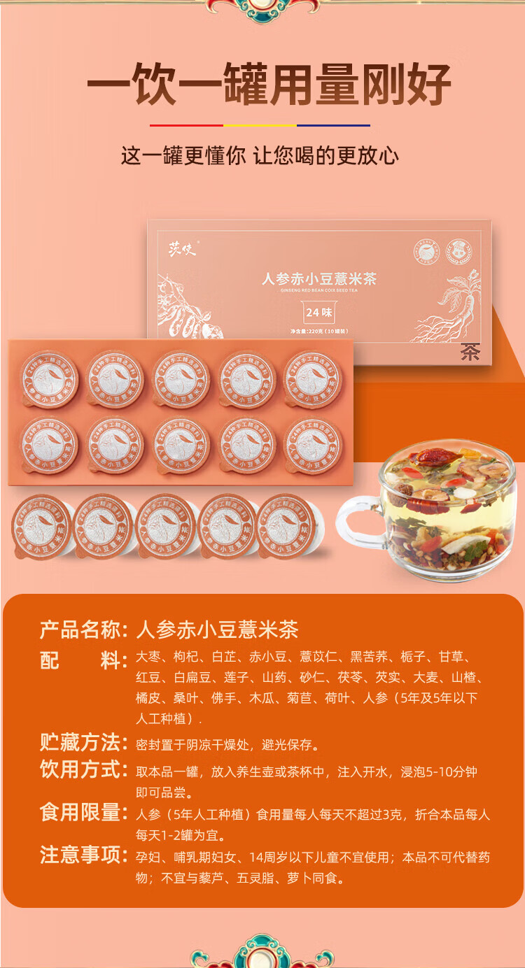 杞硕人参赤小豆薏米茶10罐养生男士女士除芡实湿气养生祛薏米湿红豆茶 人参赤小豆薏米茶10罐装