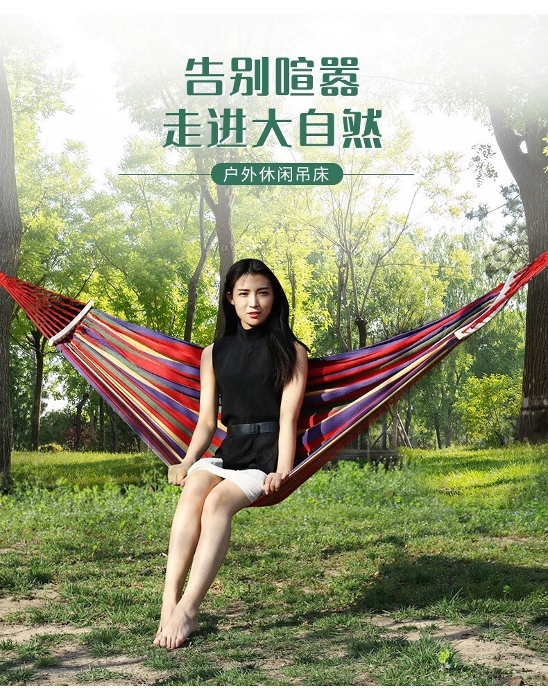 彩虹房子 国潮营天幕帐篷野营野餐超轻防雨防晒沙滩加厚遮阳防潮垫 单人吊床280*80cm(不带木棒)