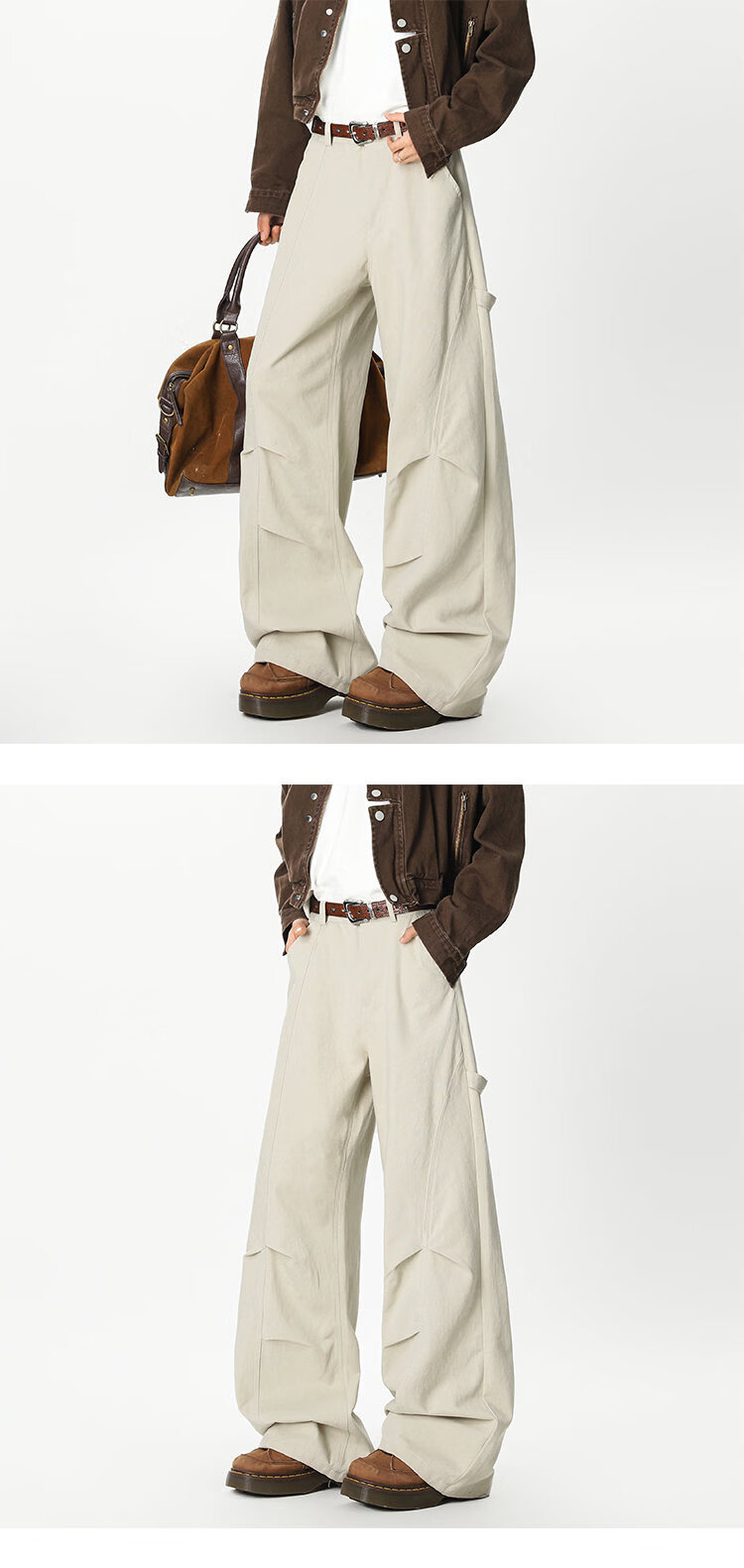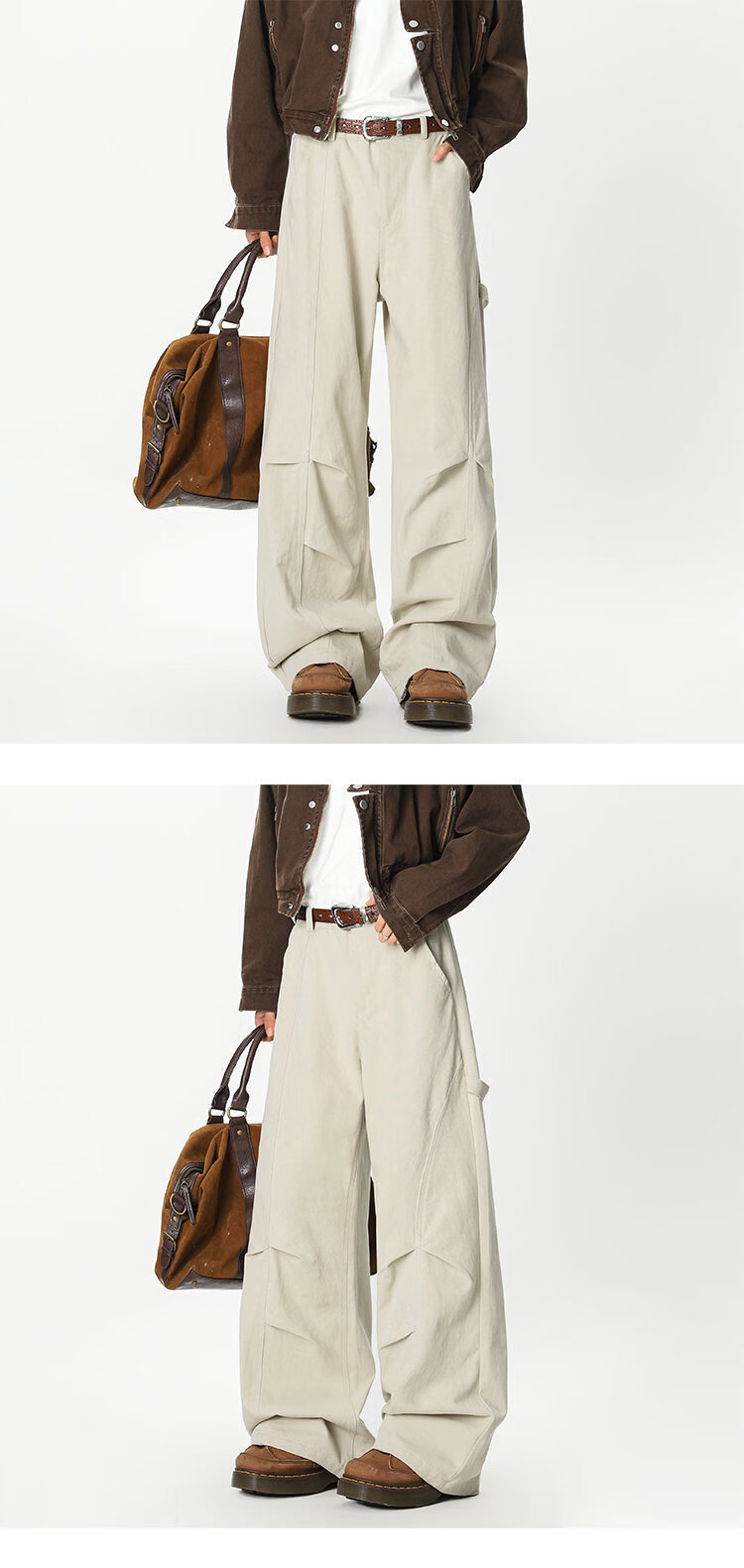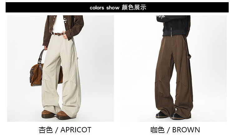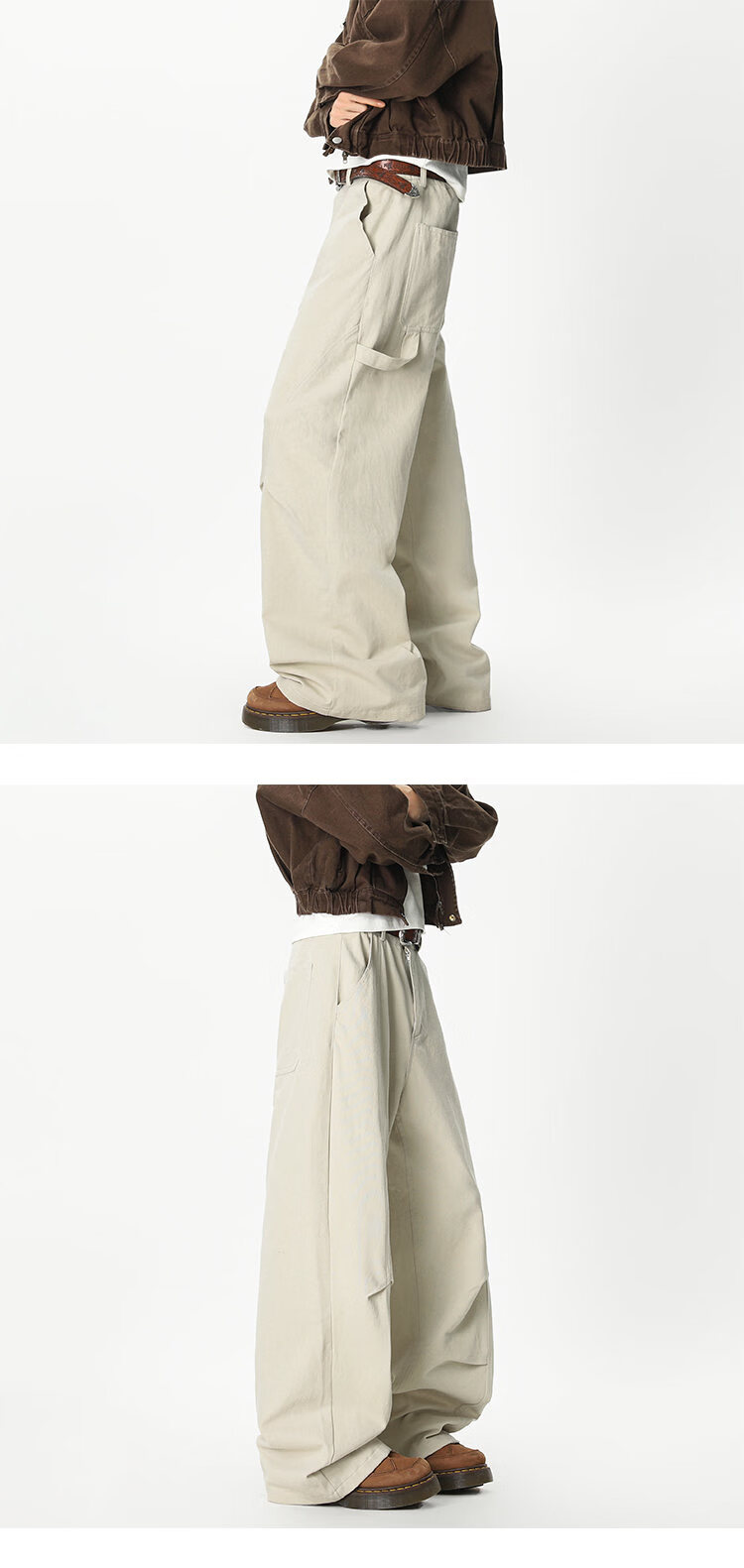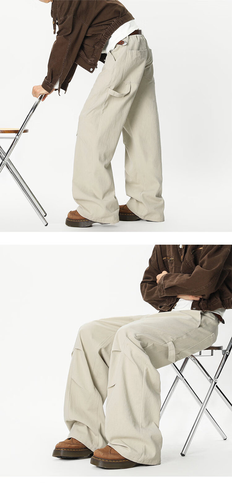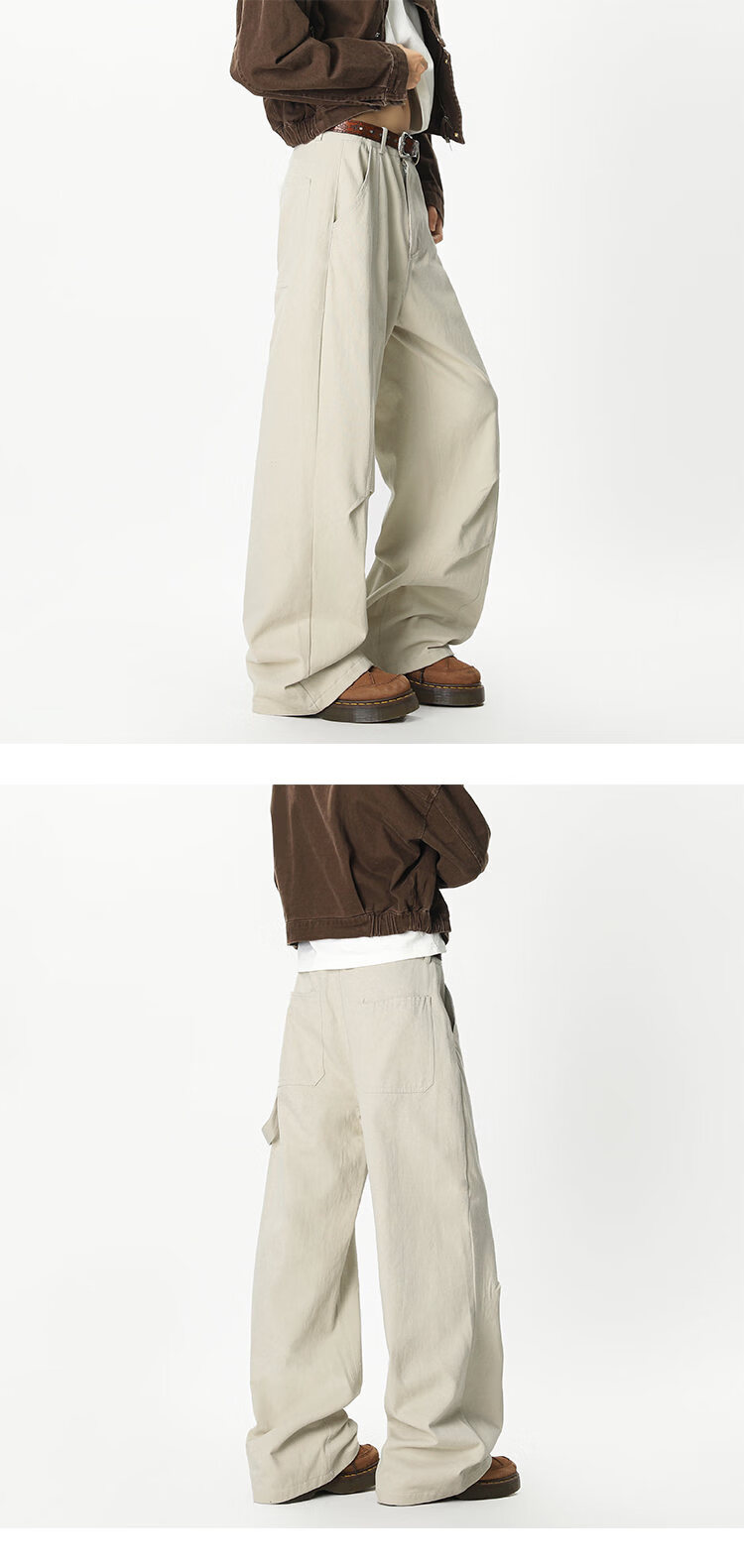 NEW OR MODE美式复古工装休闲裤男春秋潮牌高街褶皱cleanfit宽松直筒微喇长裤 杏色【高品质】 M 【建议90-110斤】