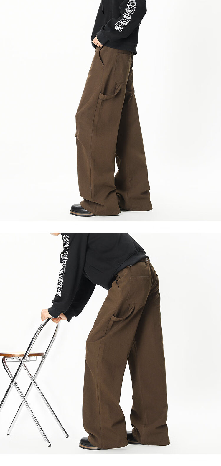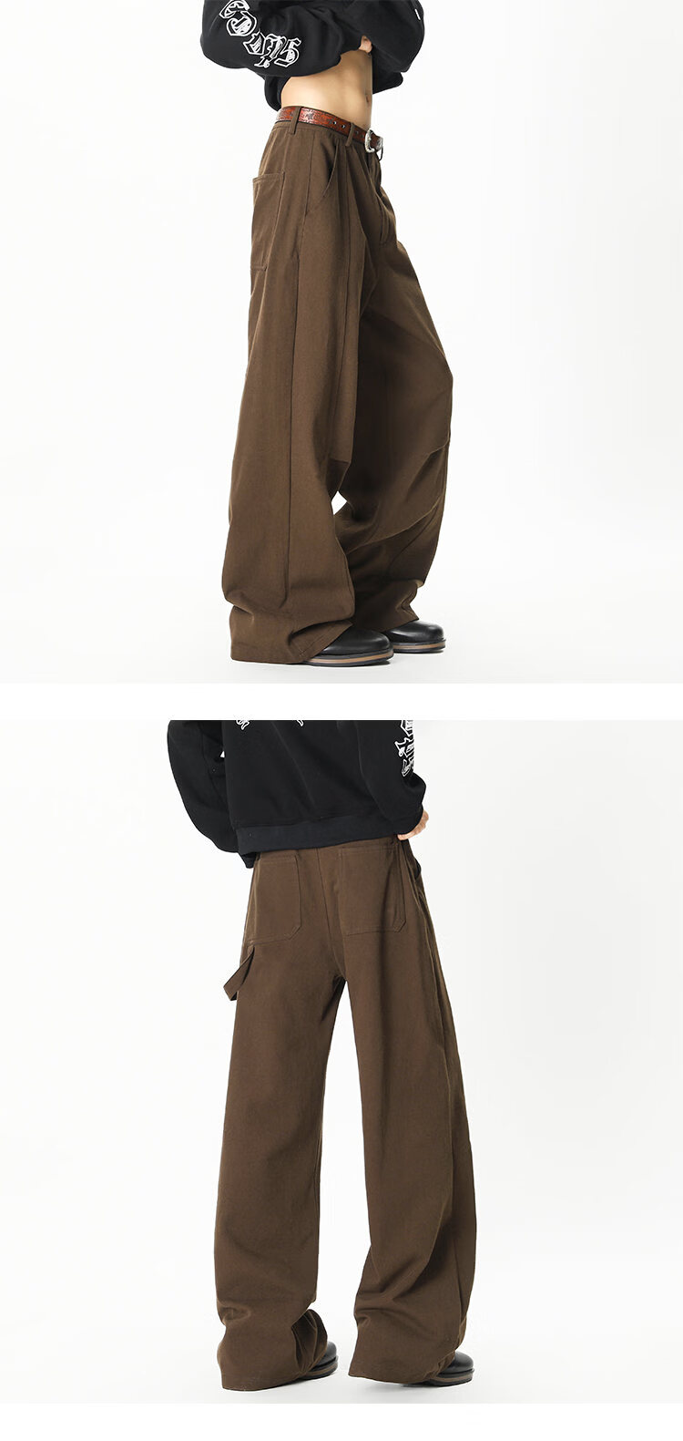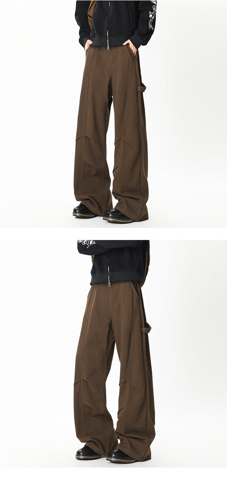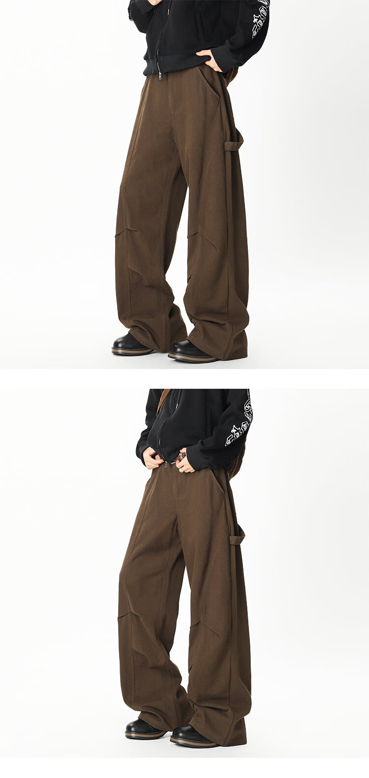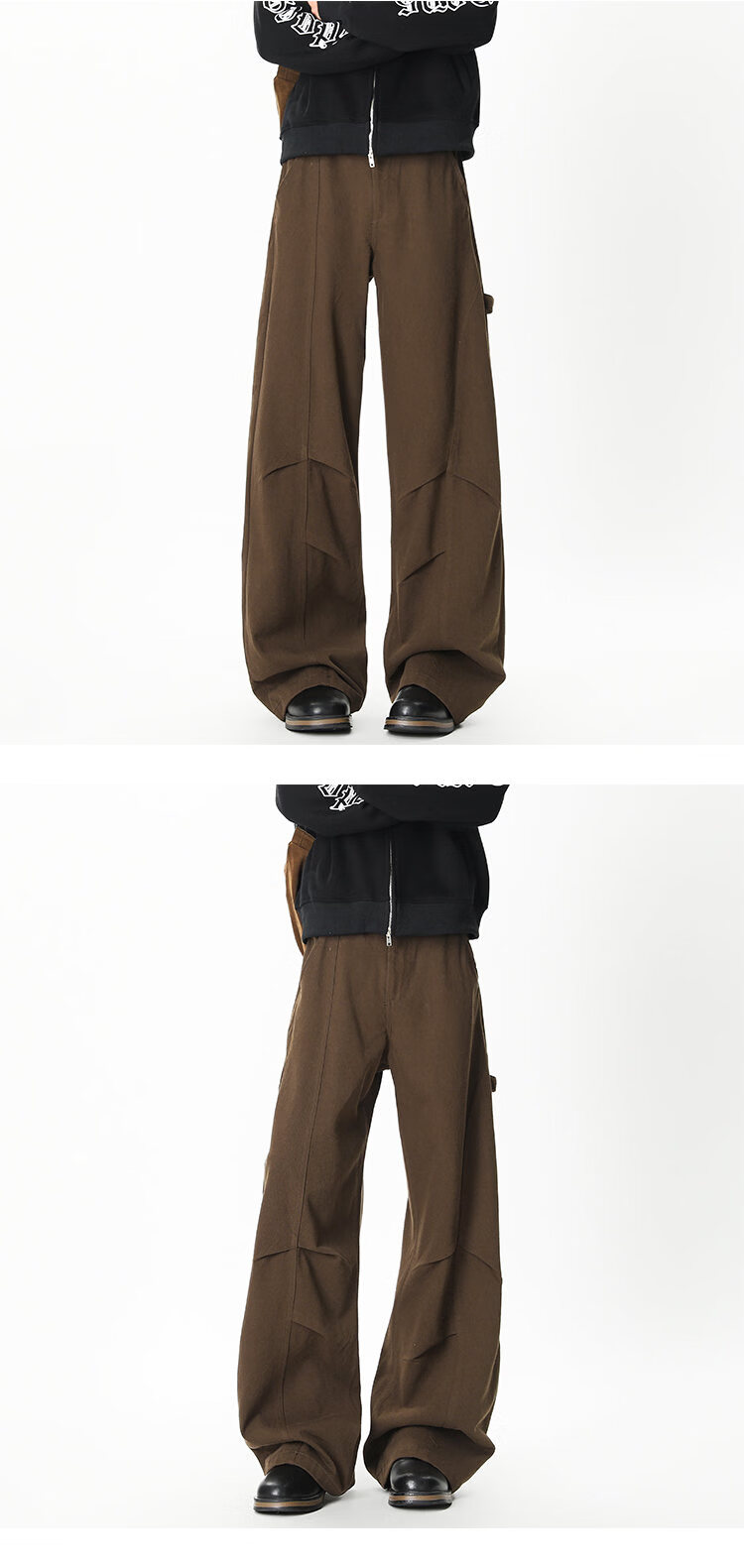 NEW OR MODE美式复古工装休闲裤男春秋潮牌高街褶皱cleanfit宽松直筒微喇长裤 杏色【高品质】 M 【建议90-110斤】