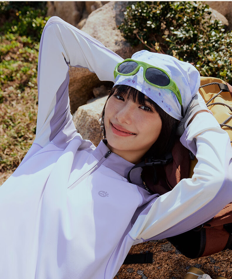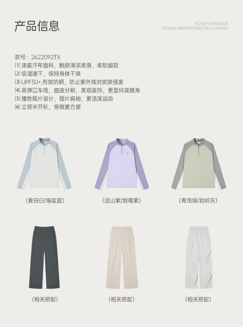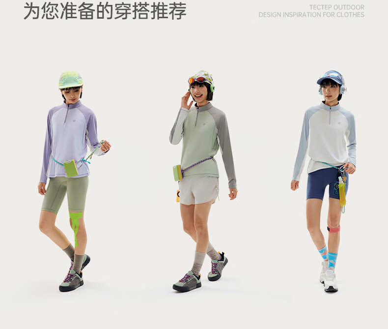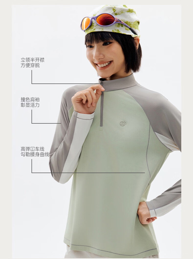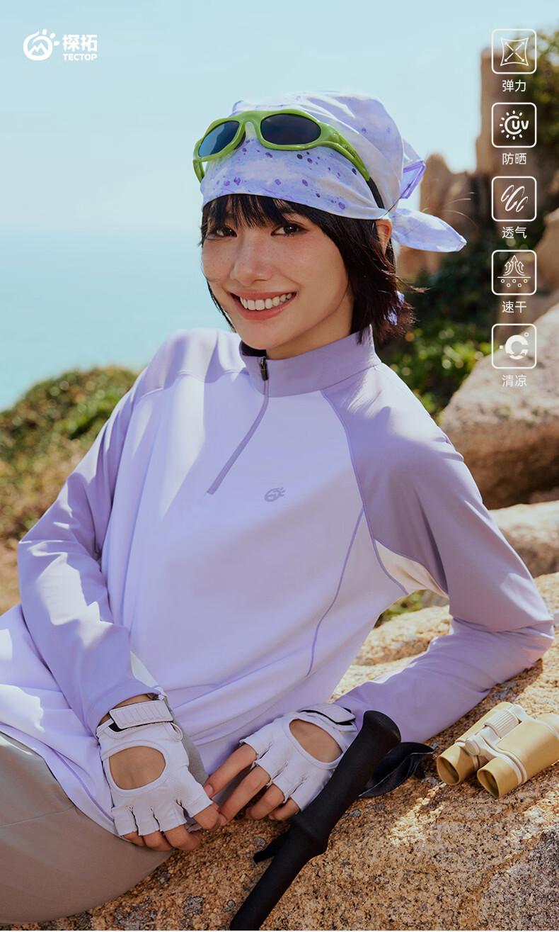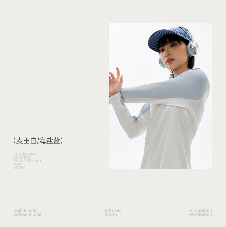 探拓(TECTOP)26新款户外运动长袖防晒抗菌T恤女跑步训练透气冰肤上衣 麦田白/海盐蓝 M