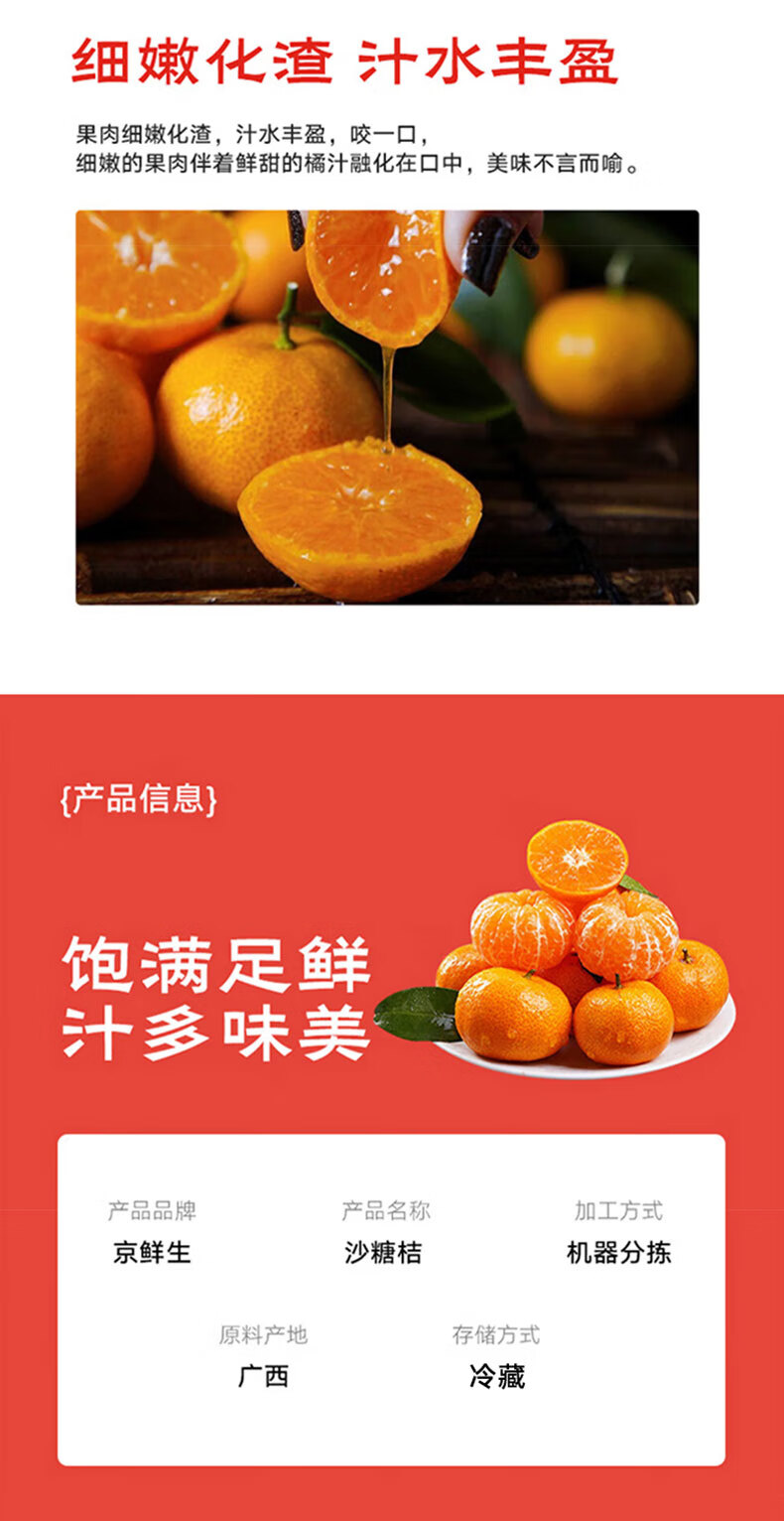 京鲜生 砂糖橘/砂糖桔 净重5斤精品果 生鲜水果礼盒