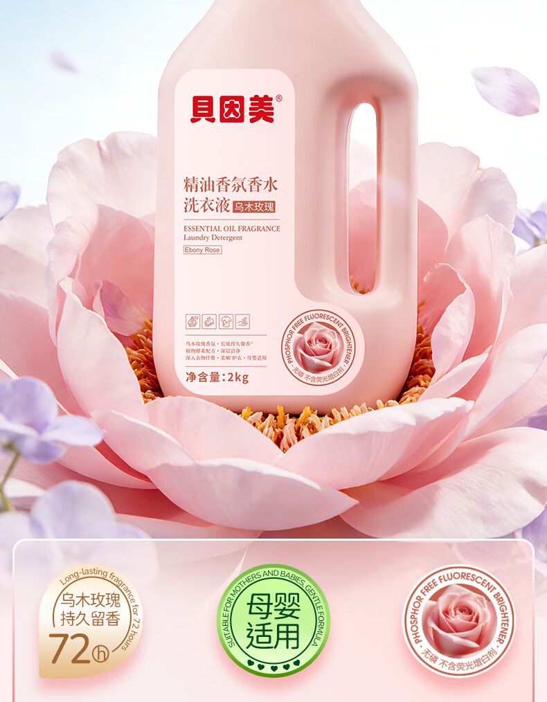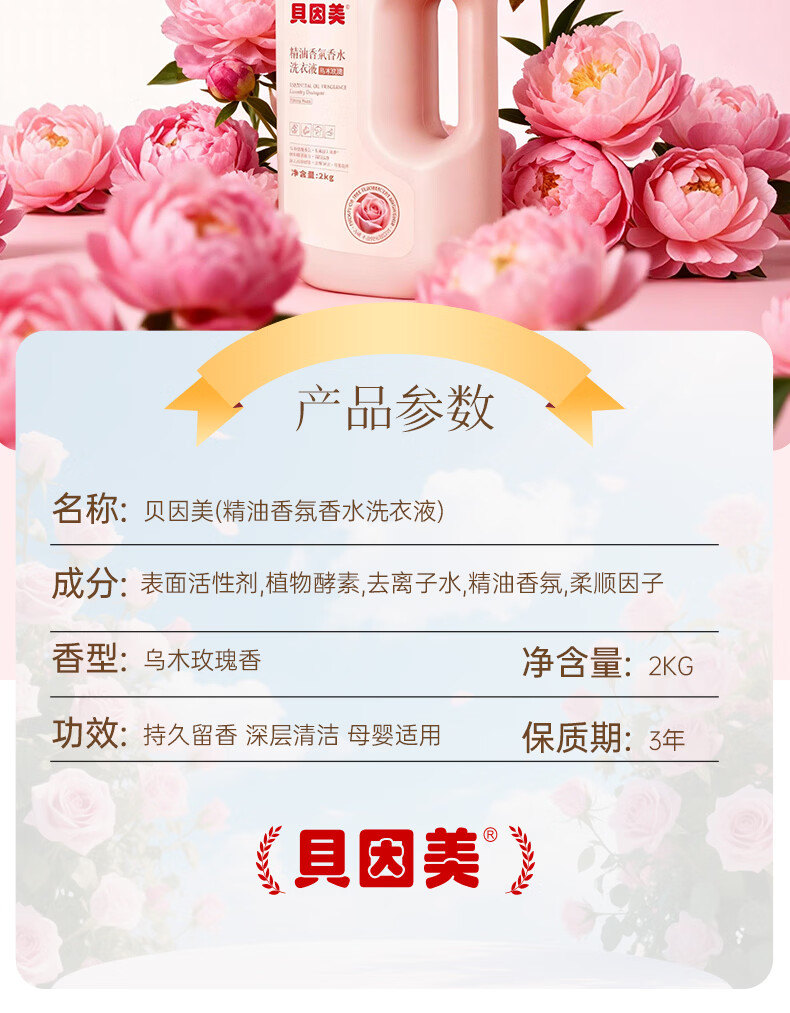 贝因美(Beingmate)松木香乌木玫瑰香氛洗衣液除菌无磷天然酵素去污手洗机洗持久留香 乌木玫瑰300g试用装