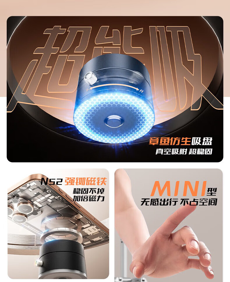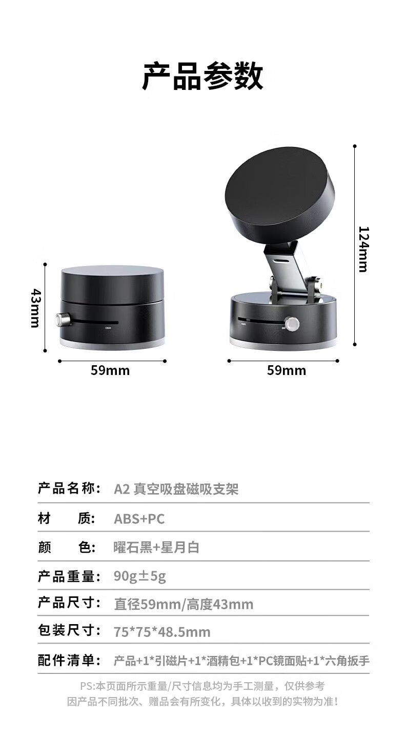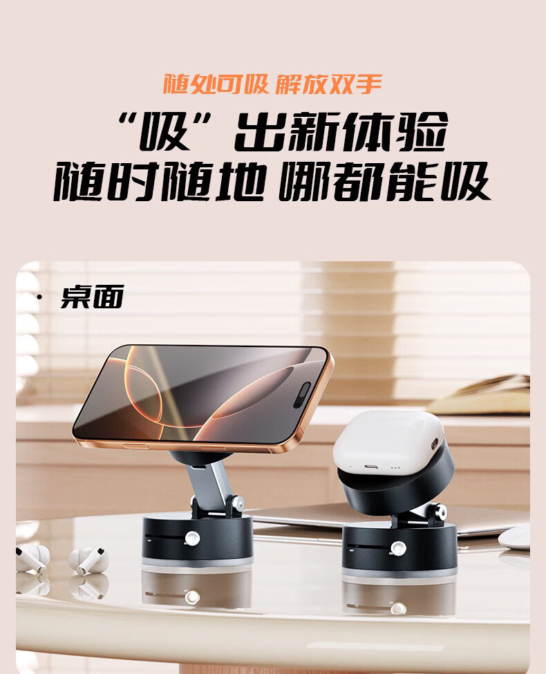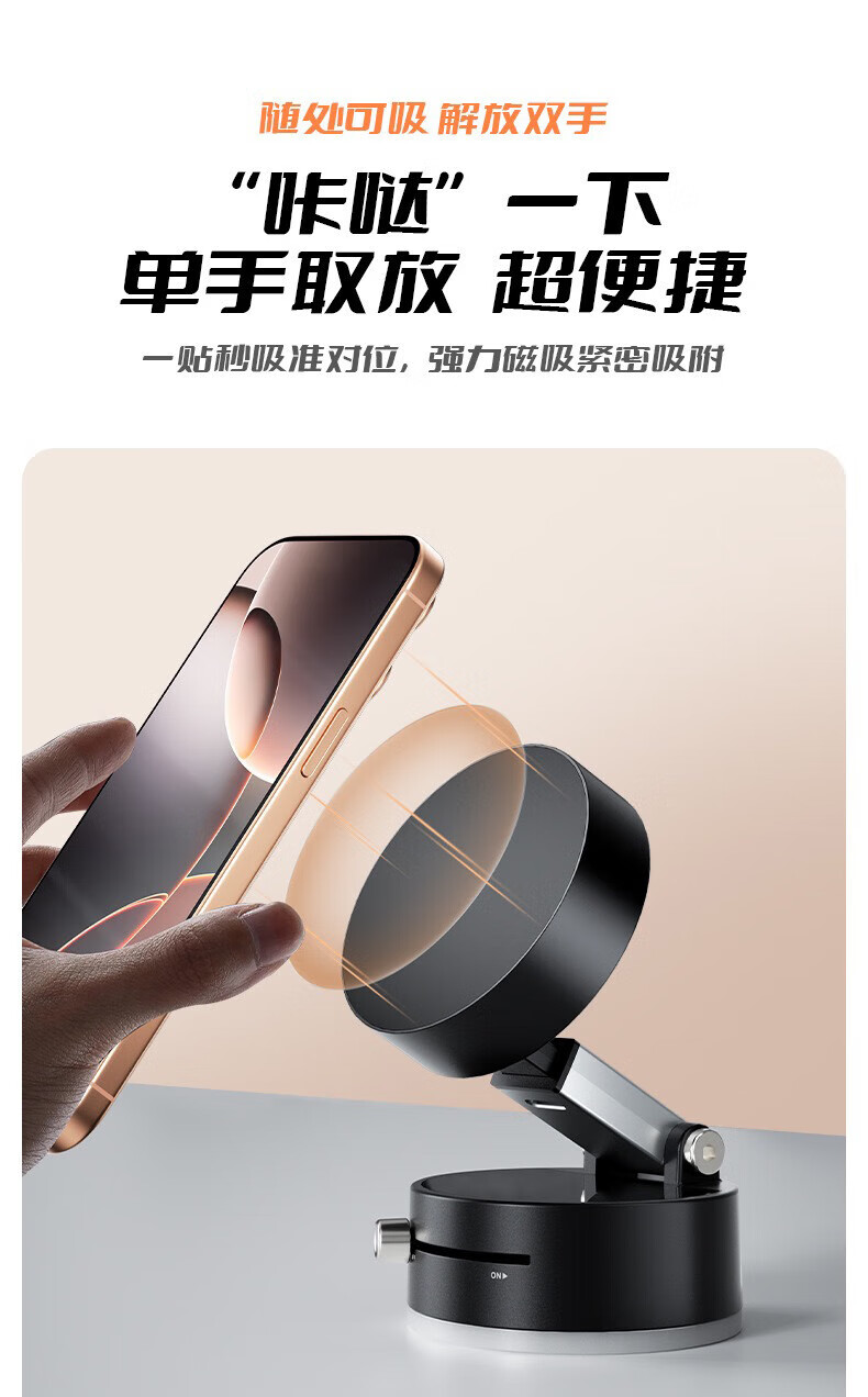 2025新品车载支架创意真空磁吸中控台通用车载手机支架桌面可折叠真空吸盘支架 A2真空吸盘支架【曜石黑】