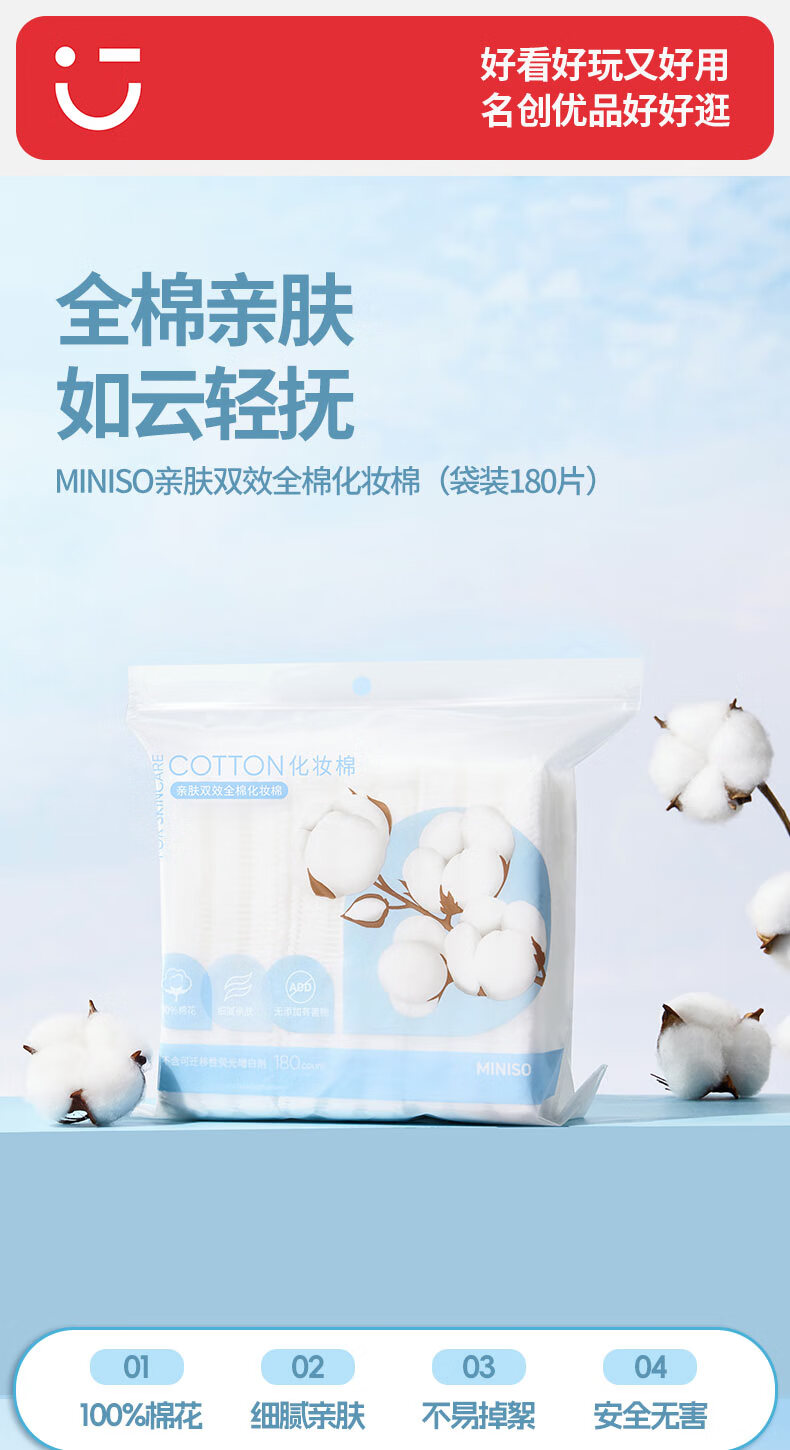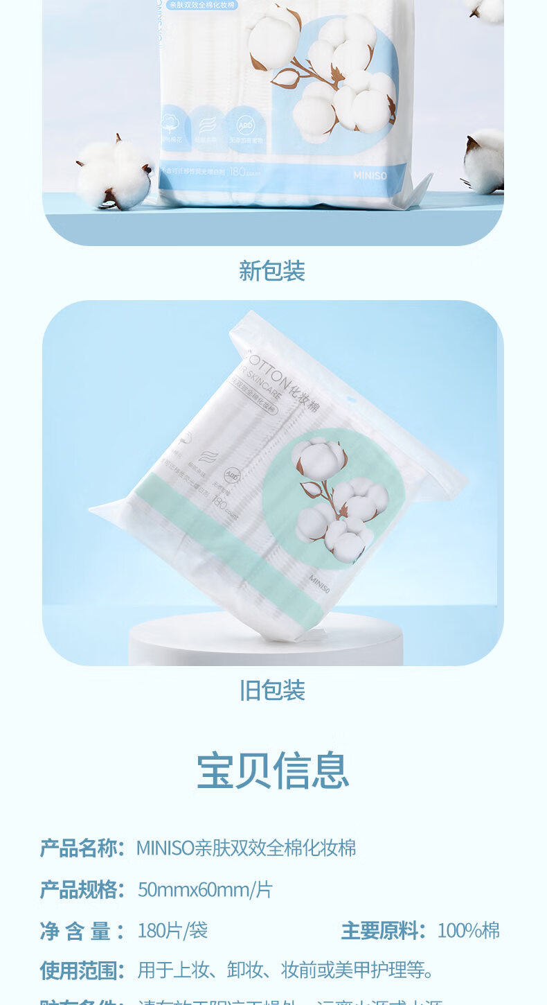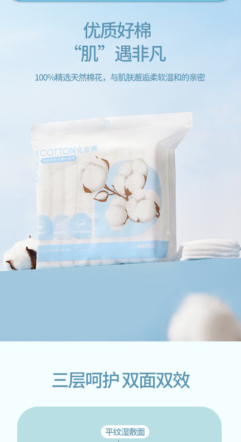 名创优品(MINISO)(MINISO)化妆棉卸妆棉湿敷棉卸妆棉片干湿两用亲和肌肤180片*1袋