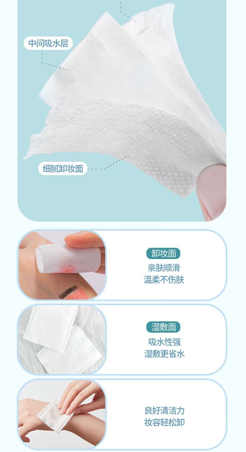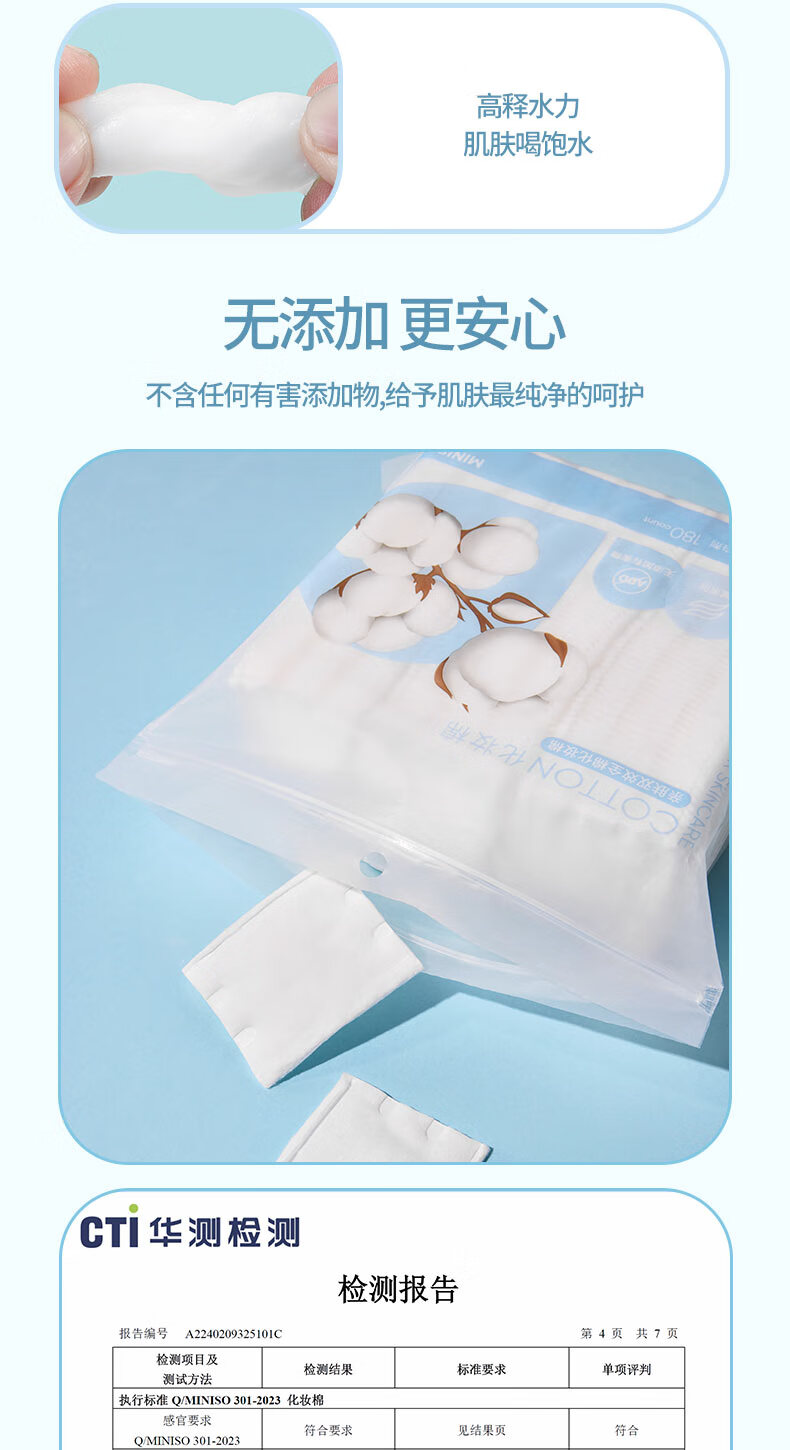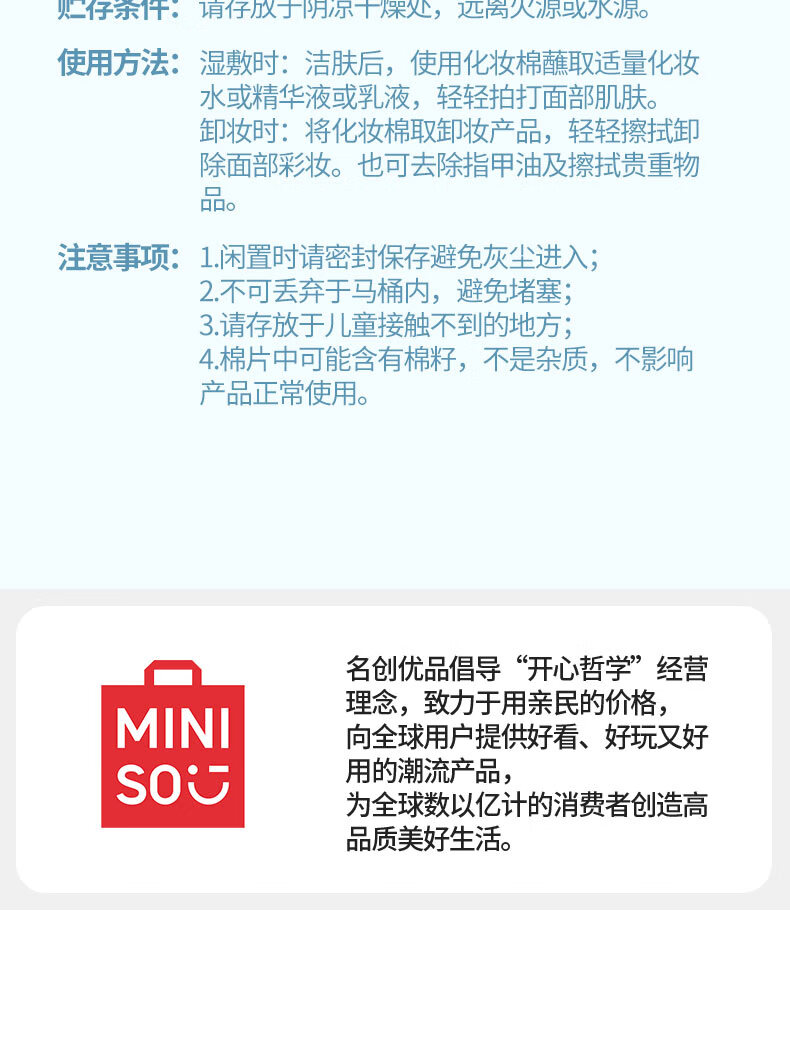 名创优品(MINISO)(MINISO)化妆棉卸妆棉湿敷棉卸妆棉片干湿两用亲和肌肤180片*1袋