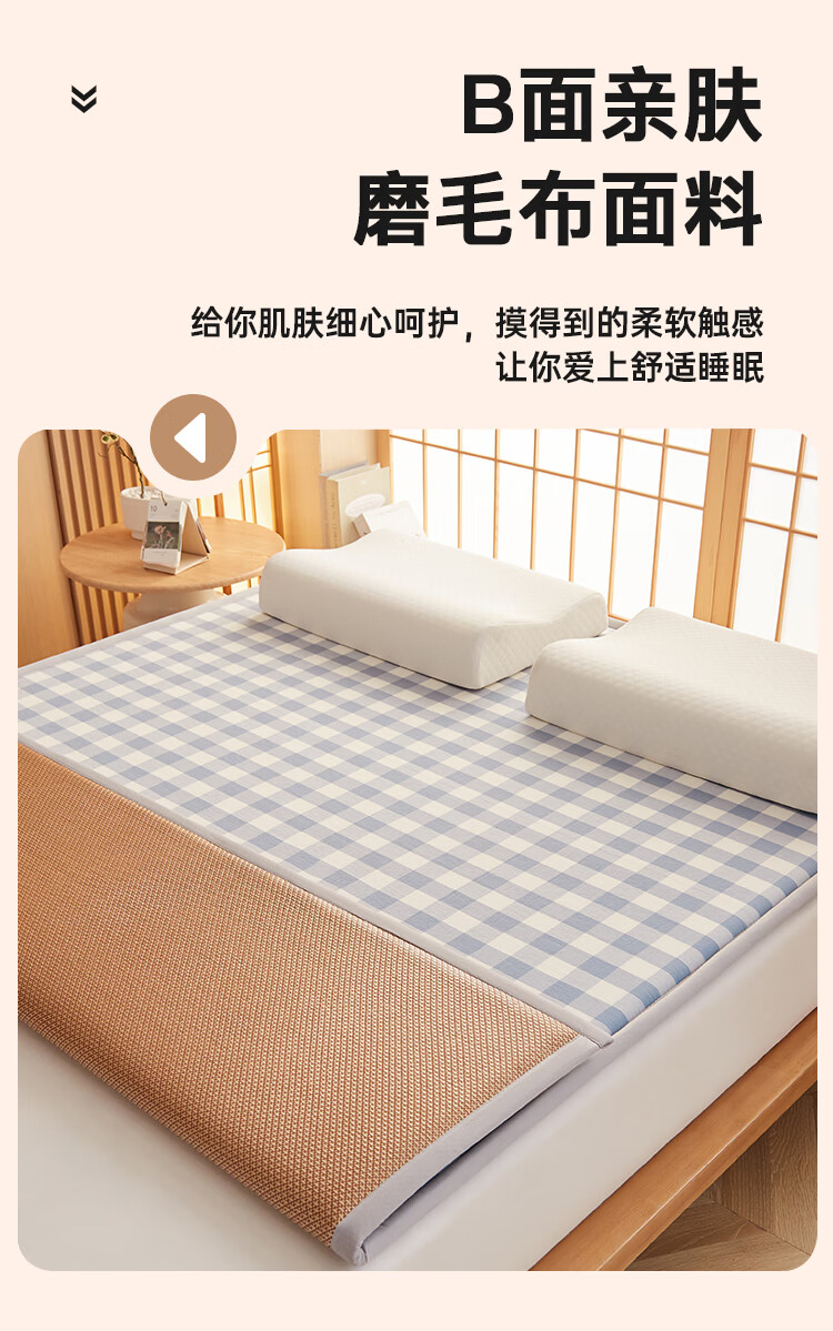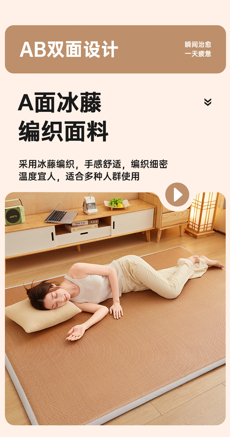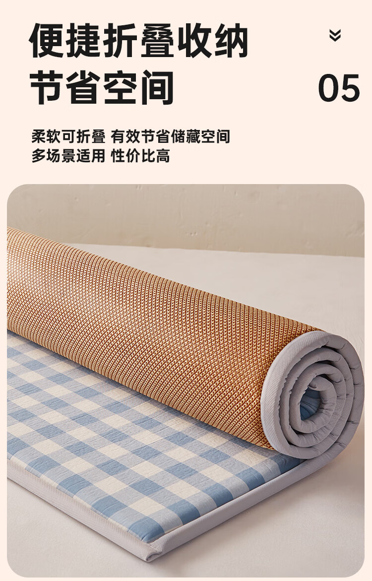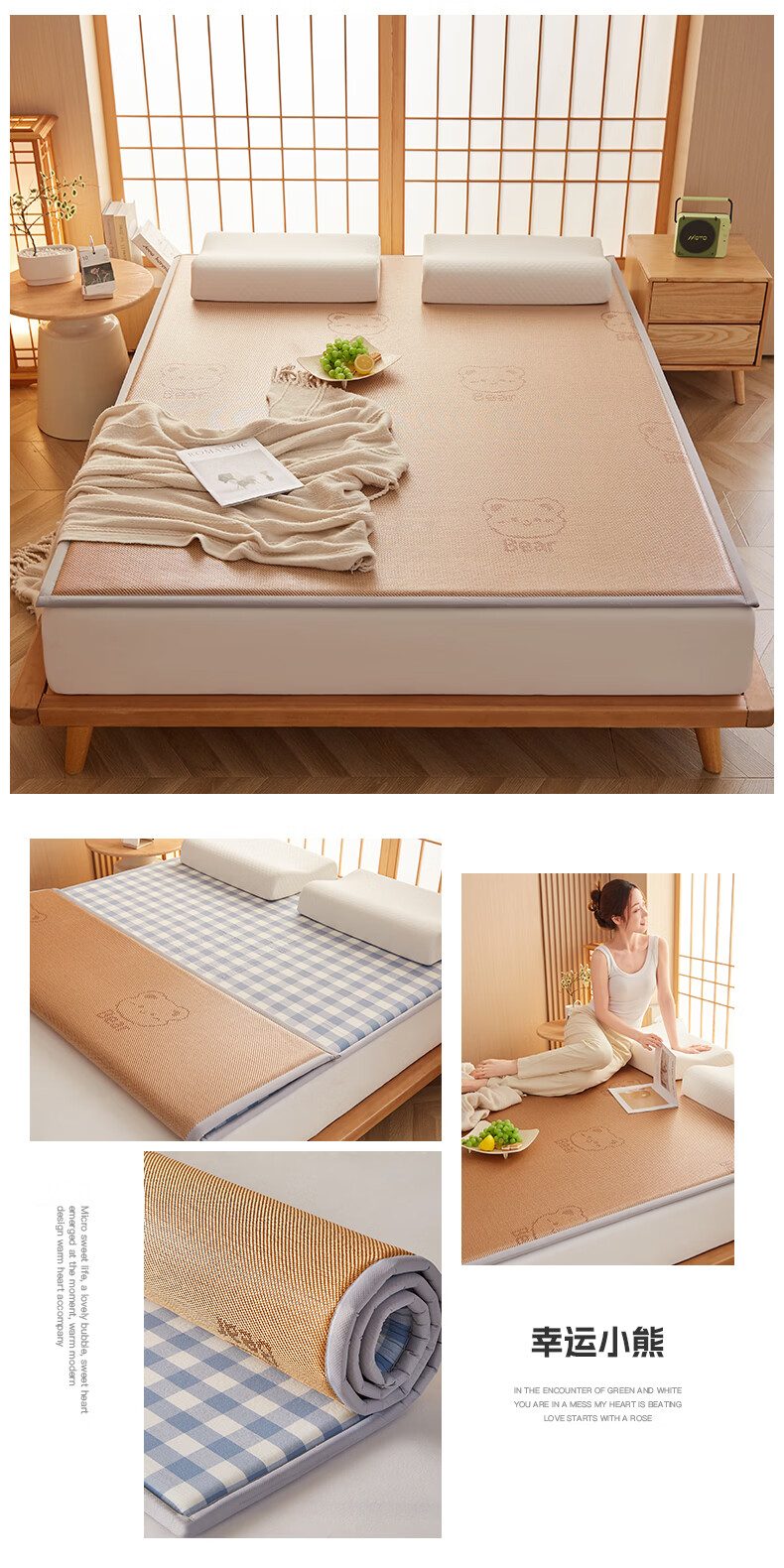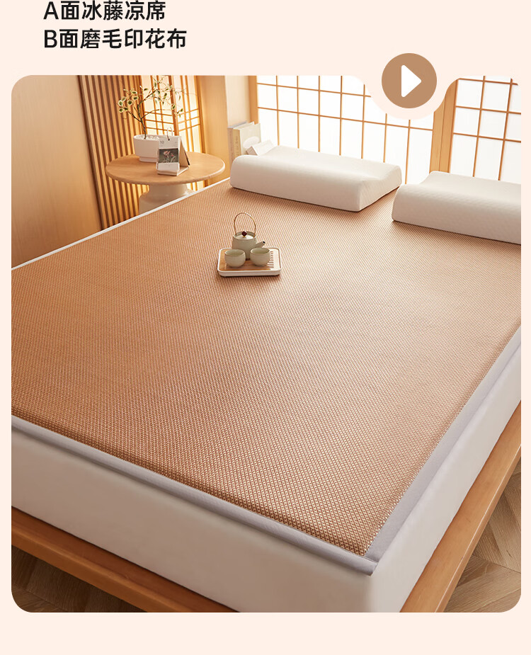 VJE加厚冰丝凉席地垫睡觉打地铺专用垫藤席床垫家用睡垫榻榻米垫子夏 幸运小熊【高密加厚款-瞬凉冰藤-凉爽亲肤】 150*200cm【天然冰藤-自然凉感-防滑耐用】