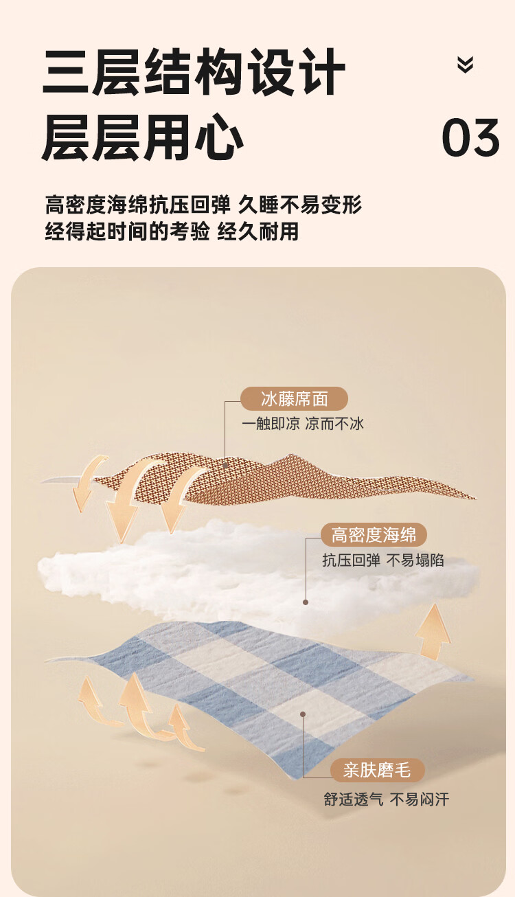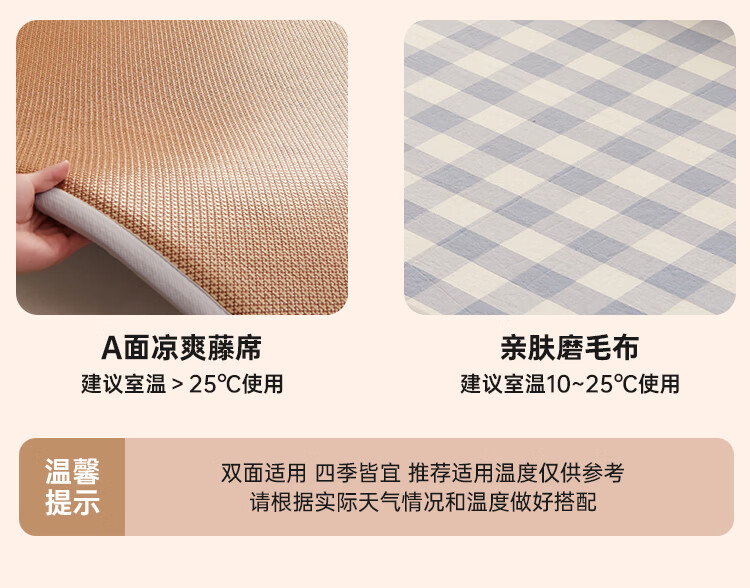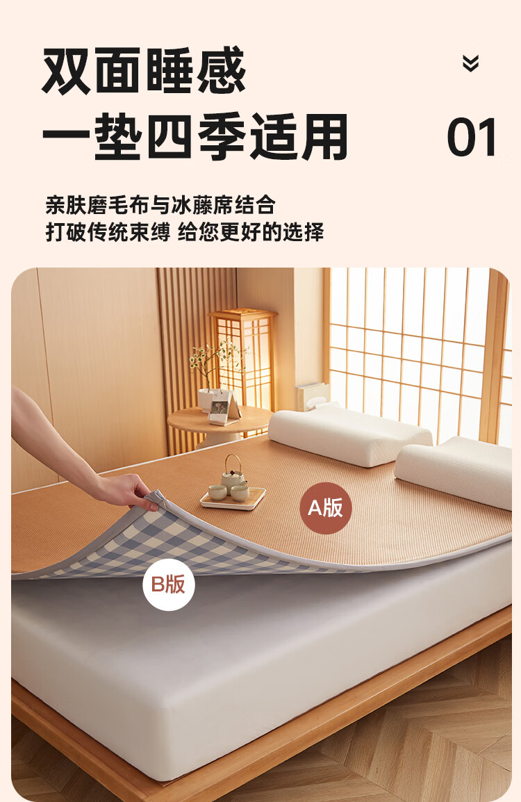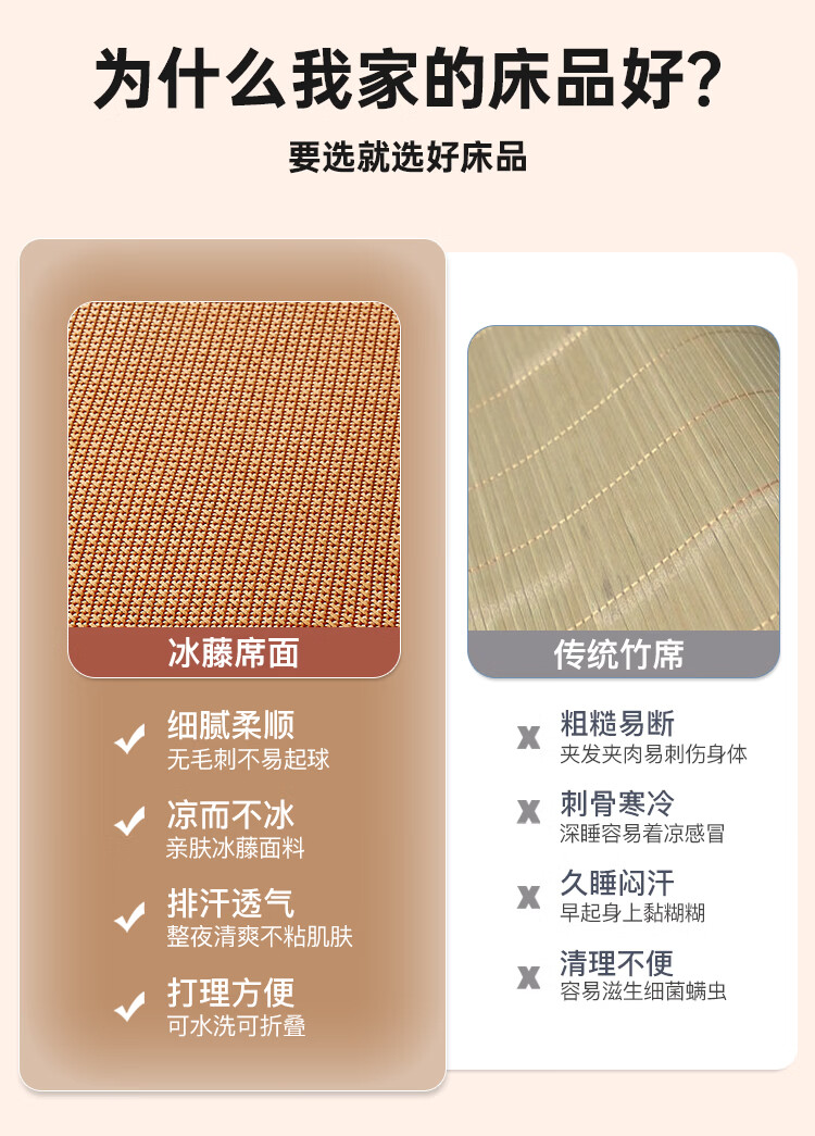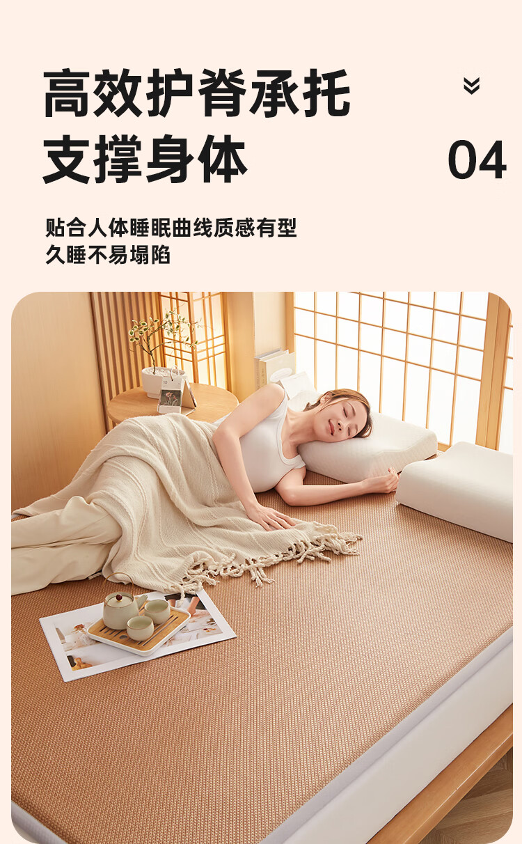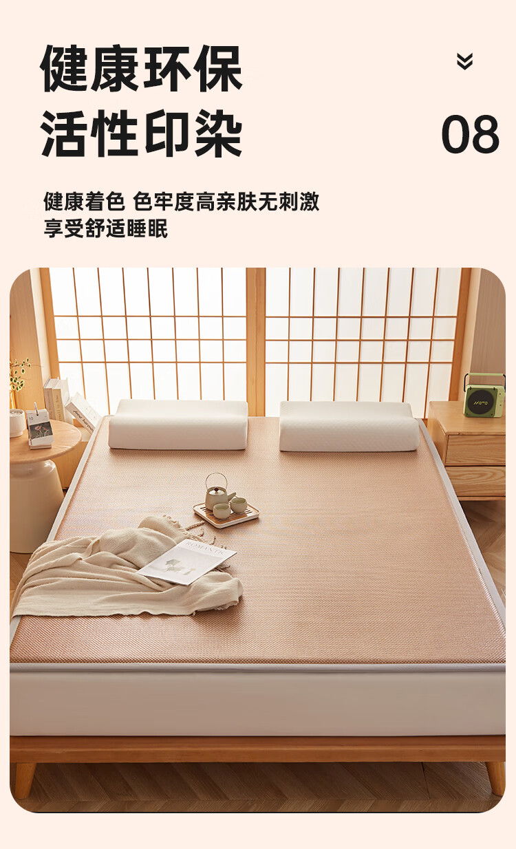 VJE加厚冰丝凉席地垫睡觉打地铺专用垫藤席床垫家用睡垫榻榻米垫子夏 幸运小熊【高密加厚款-瞬凉冰藤-凉爽亲肤】 150*200cm【天然冰藤-自然凉感-防滑耐用】