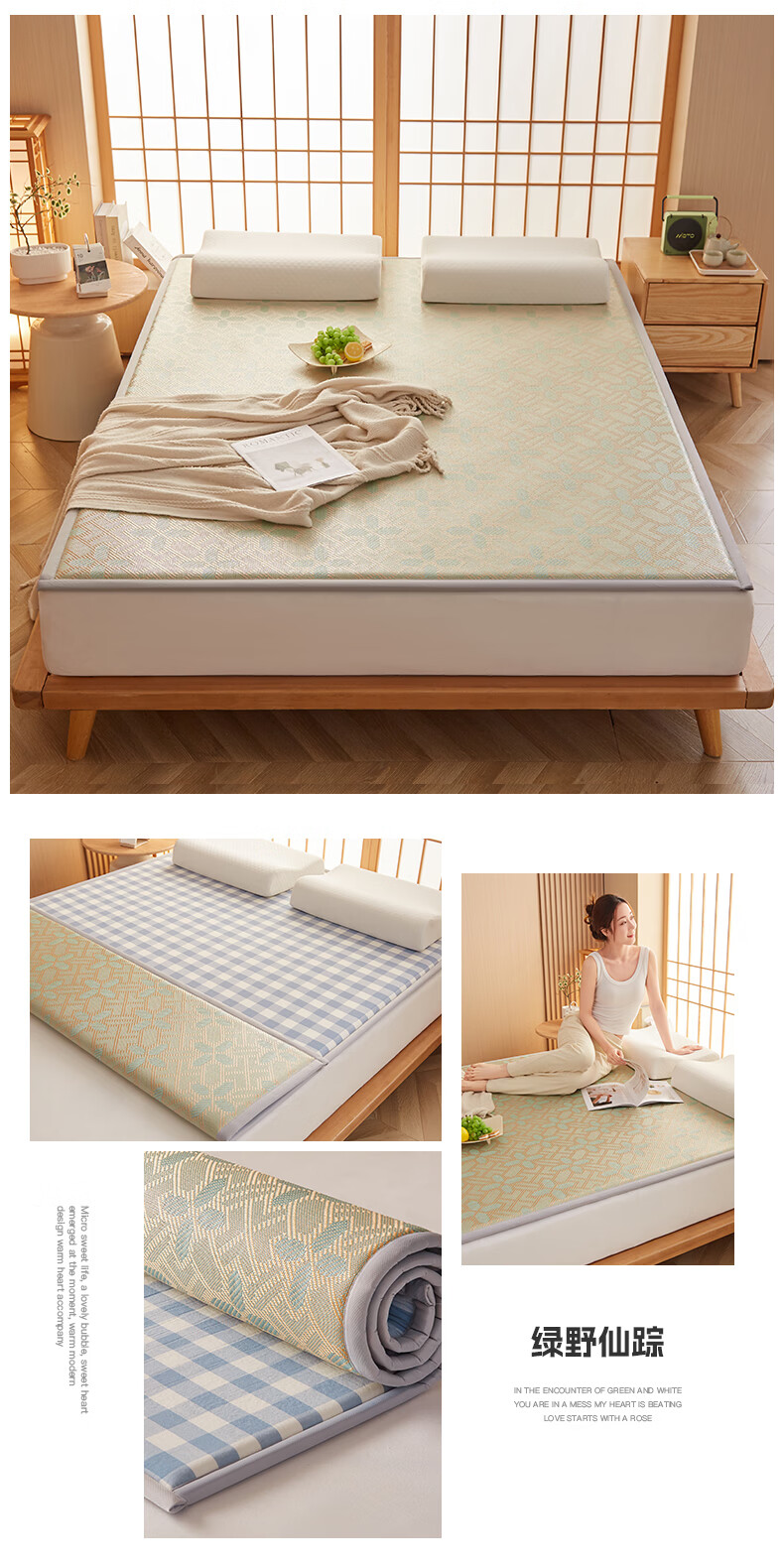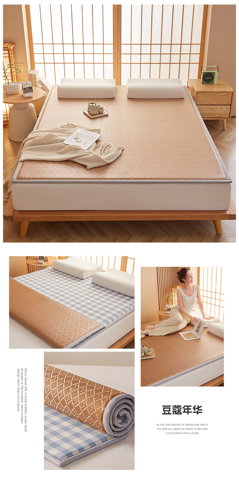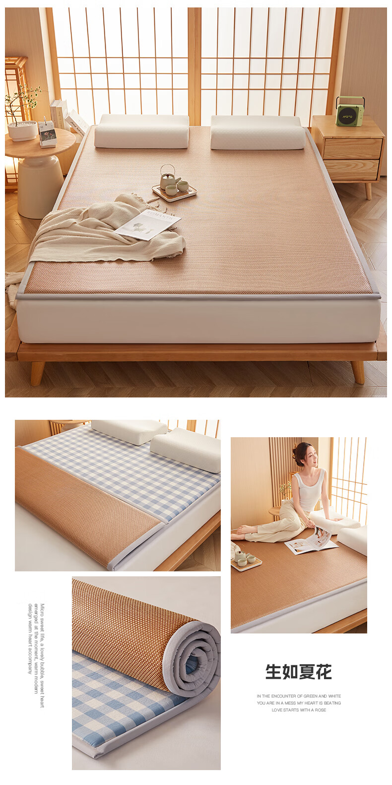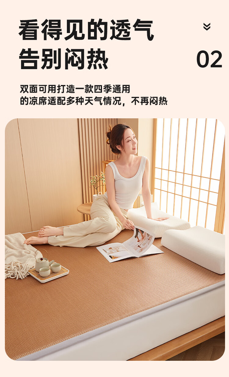 VJE加厚冰丝凉席地垫睡觉打地铺专用垫藤席床垫家用睡垫榻榻米垫子夏 幸运小熊【高密加厚款-瞬凉冰藤-凉爽亲肤】 150*200cm【天然冰藤-自然凉感-防滑耐用】
