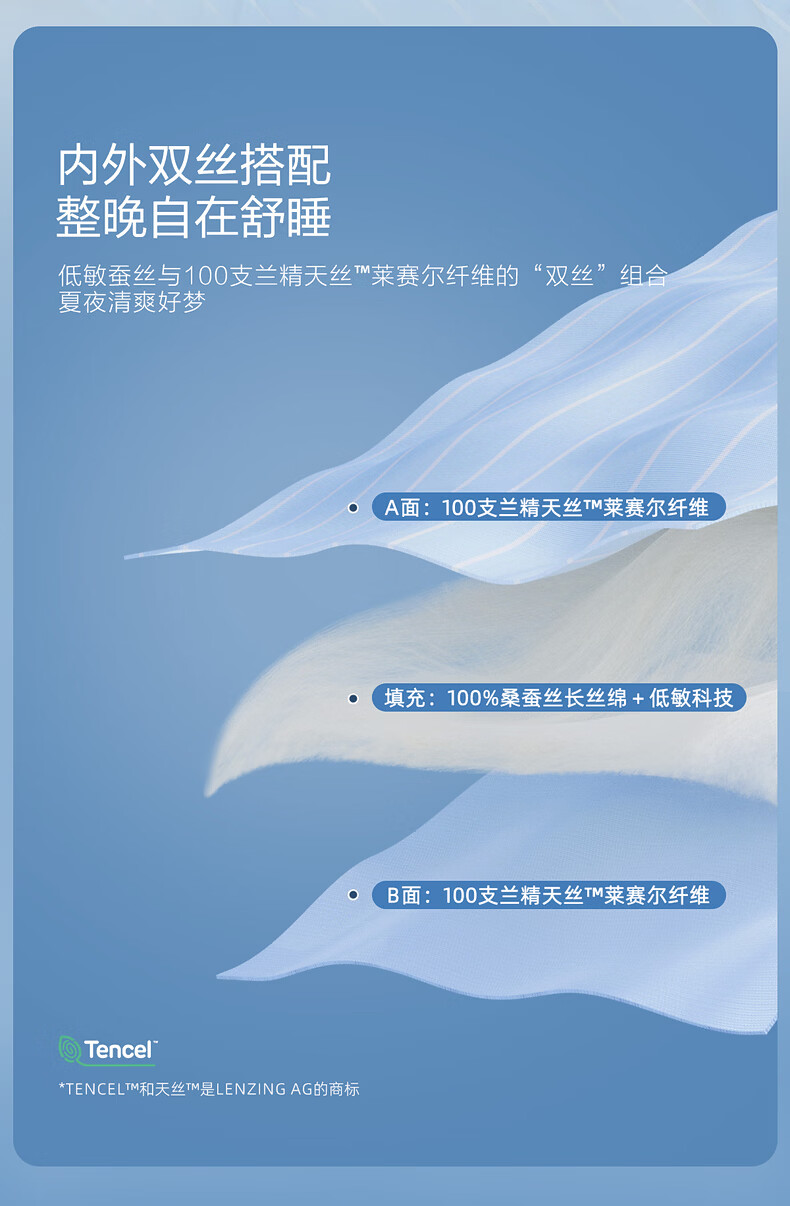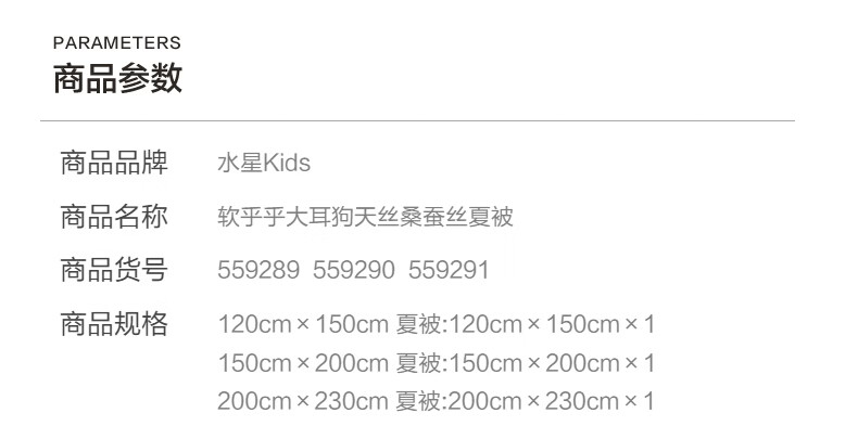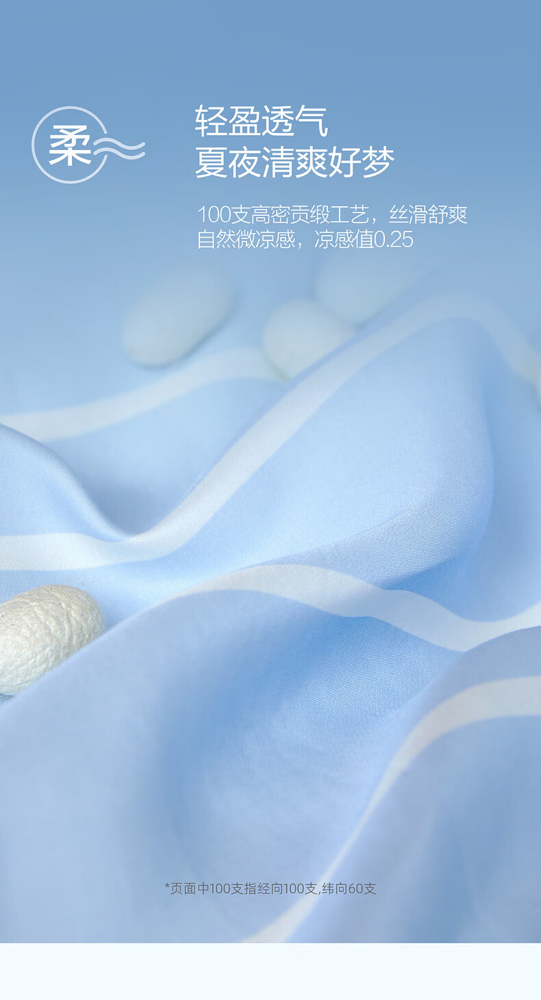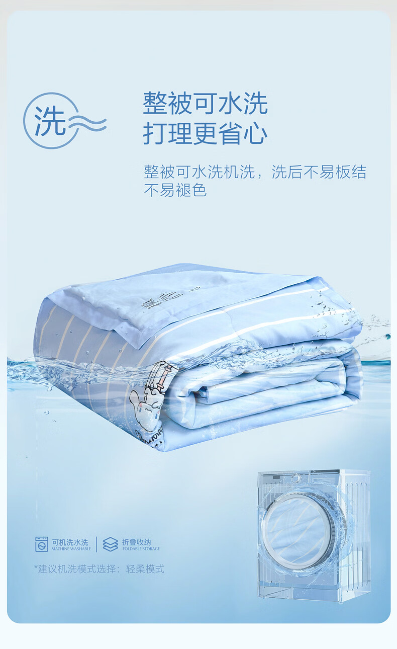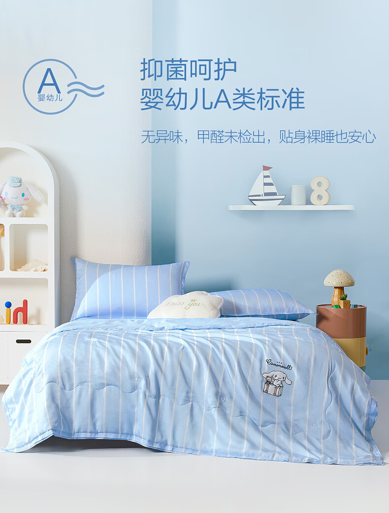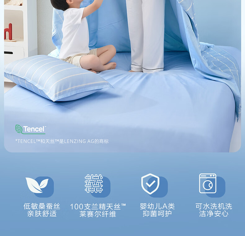 水星家纺100%桑蚕丝夏被空调被夏凉被子A类抑菌可机洗 软乎乎大耳狗天丝桑蚕丝夏被(海蓝色) 120cm*150cm