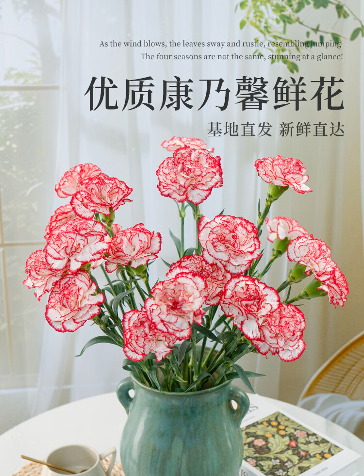 一网情深云南直发康乃馨鲜花家庭水养生活鲜花云南基地直发 随机色康乃馨40枝