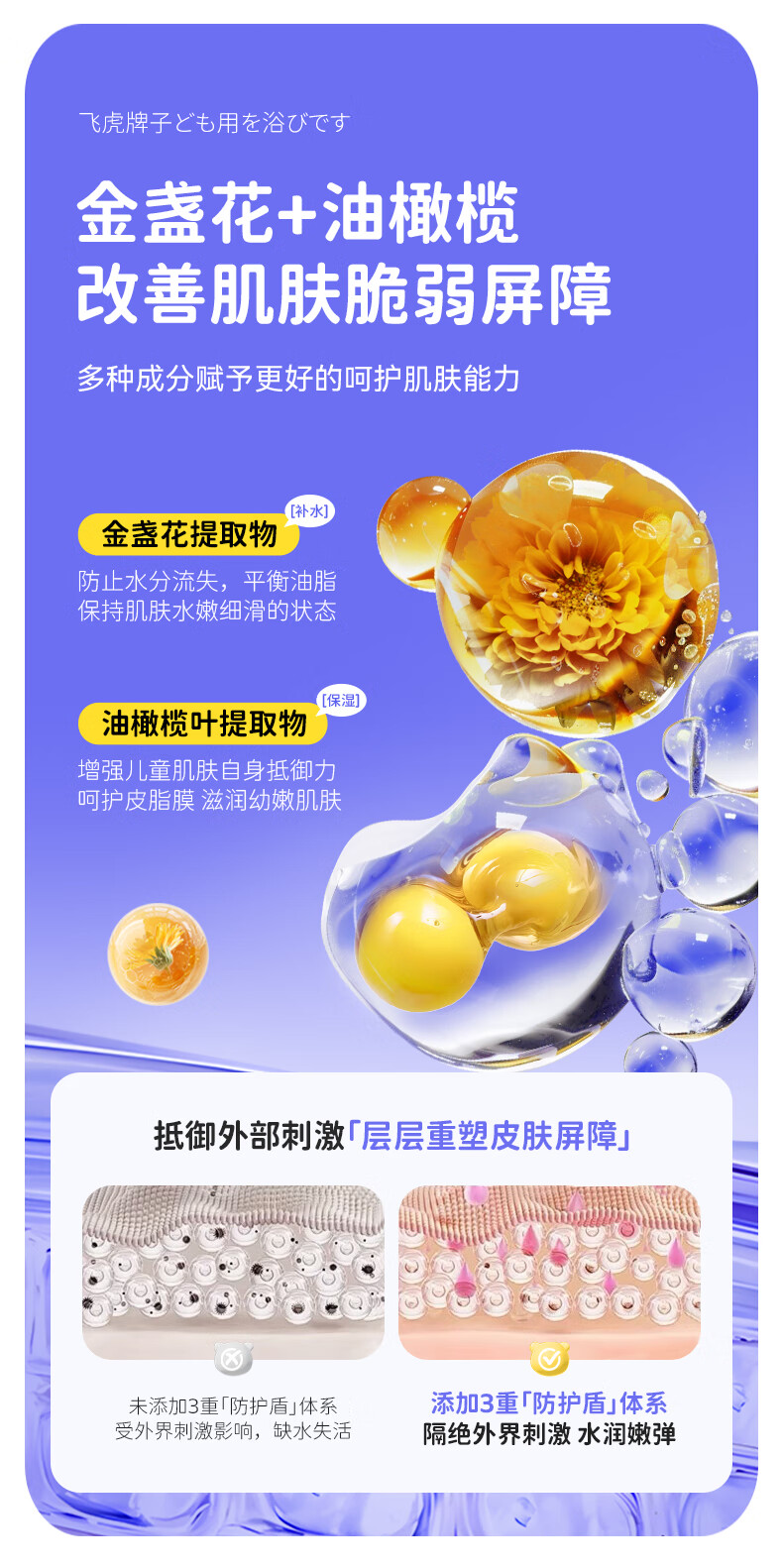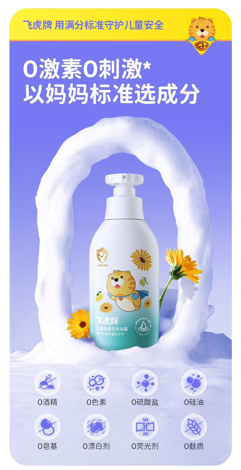 飞虎牌金盏花儿童氨基酸沐浴露300ml 婴幼儿沐浴温和清洁舒缓肌肤