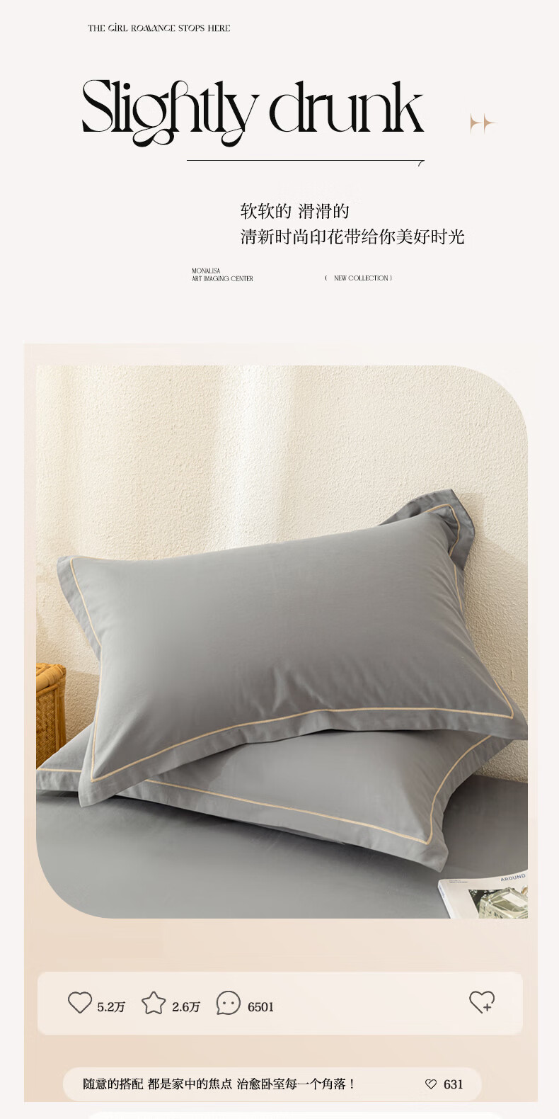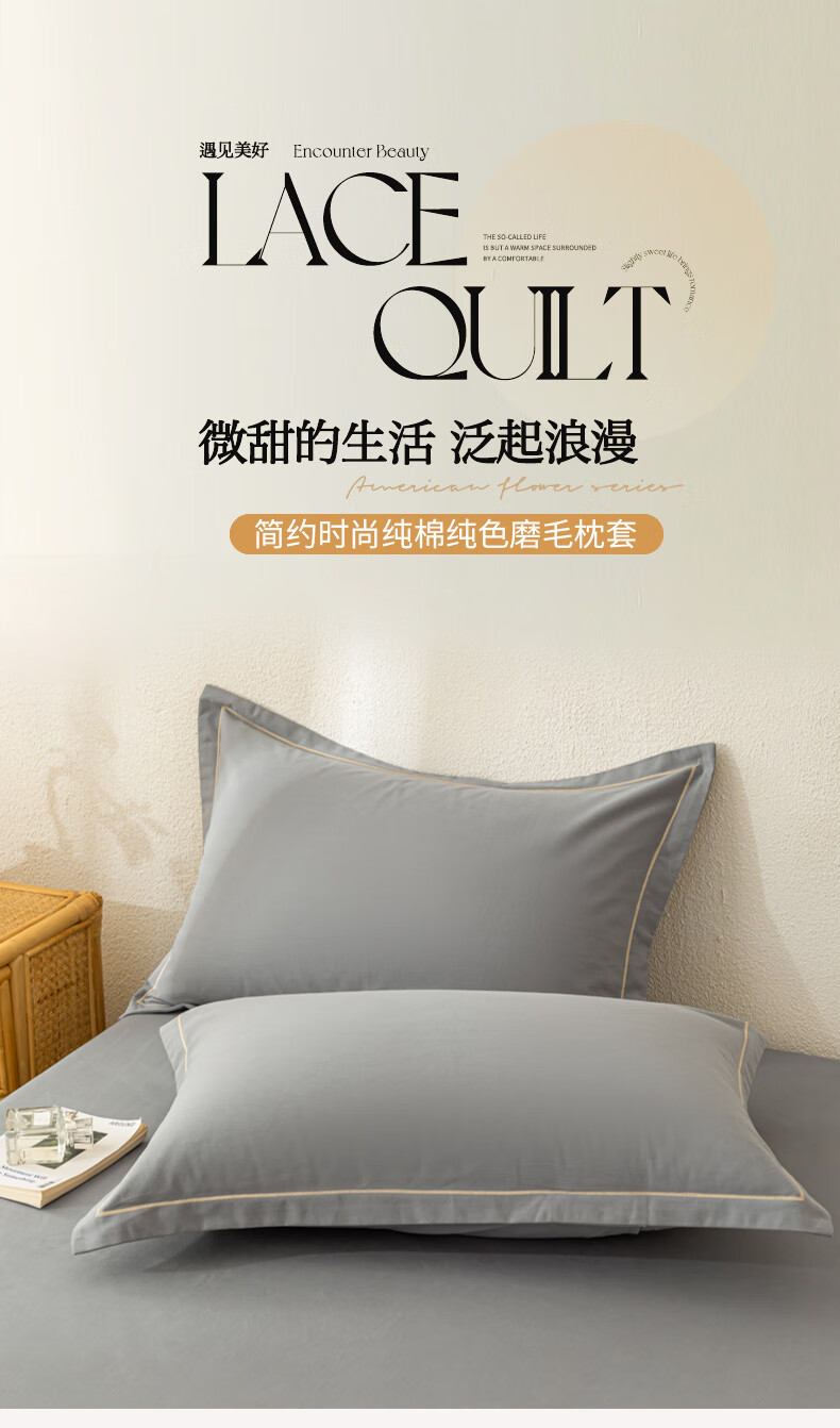 猫人(MiiOW)全棉磨毛枕头套48x74cm一对装 纯棉成人枕芯内胆套 全棉磨毛枕套-静夜灰【一对装】 单只 48cm*74cm