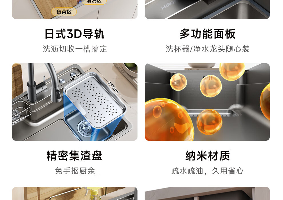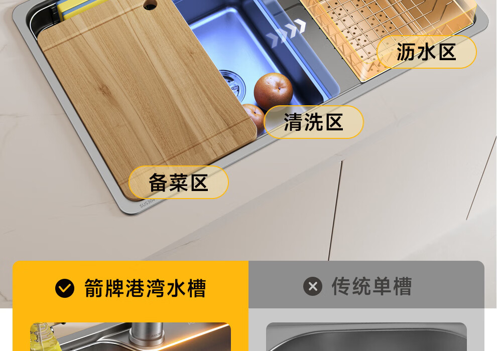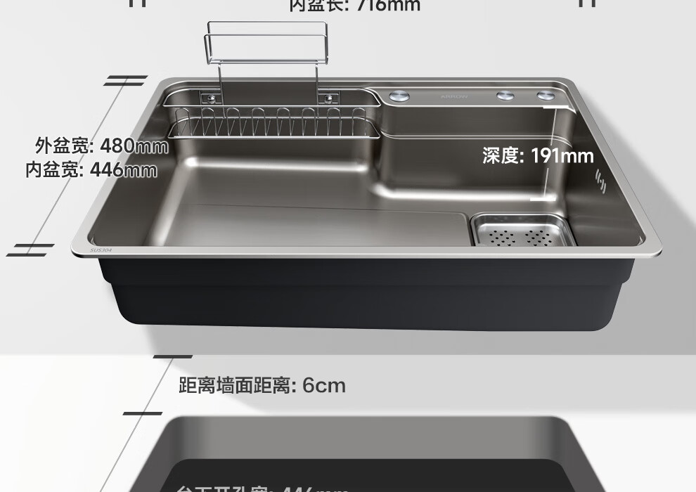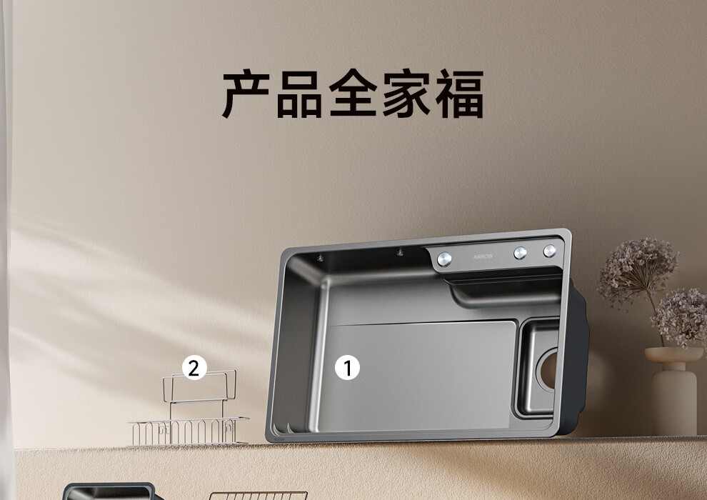 箭牌聚宝盆侧排洗菜盆水槽大单槽厨房304不锈钢纳米灰【焕新补贴15%】