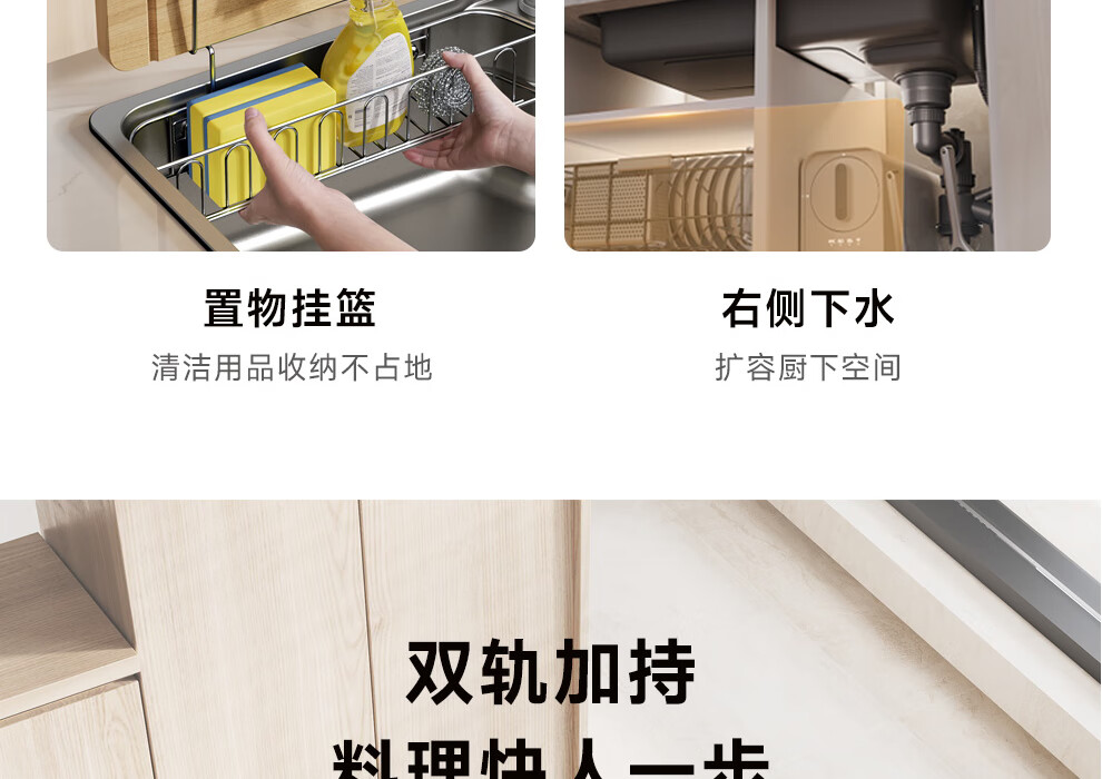 苏泊尔厨房碗碟置物架抽屉收纳盒分隔内置橱柜沥水碗架碗筷盘子拉篮配件 枪灰碗架46CM