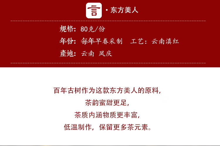 言印东方美人红茶 春茶 柔软甜润 入口蜜香甜 古树滇红茶 蜜香型 东方美人 礼盒装500克