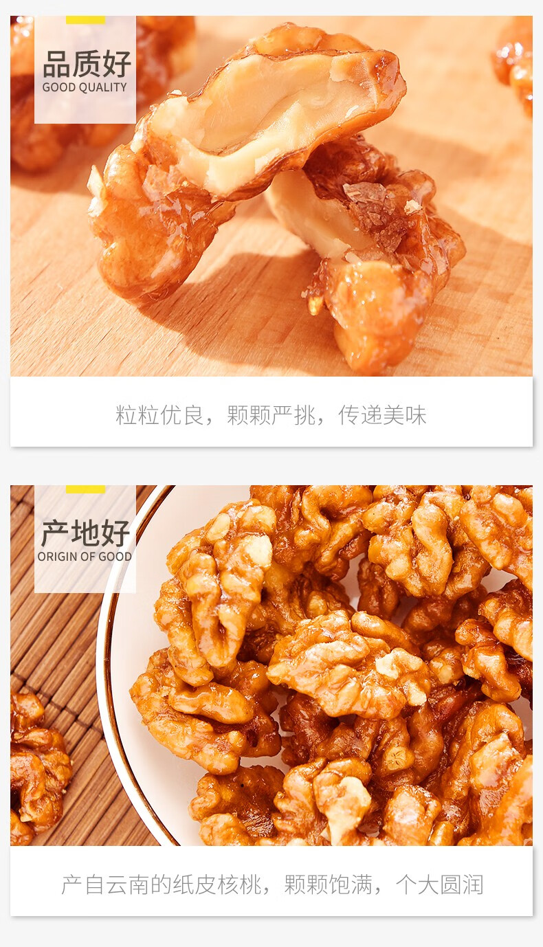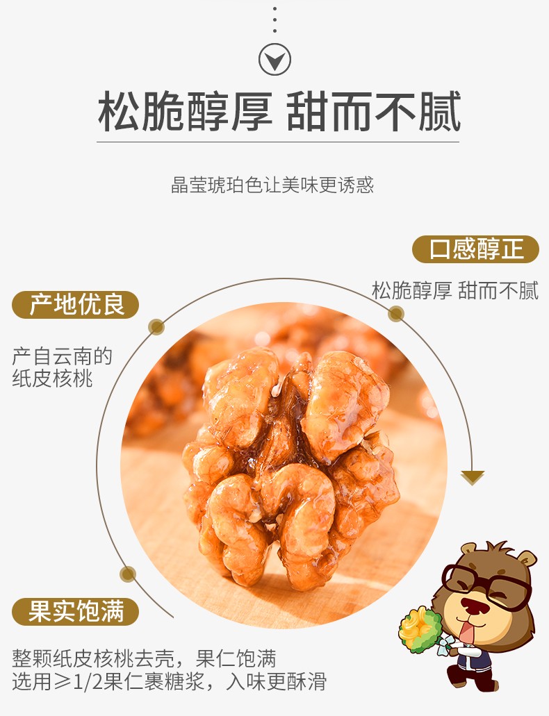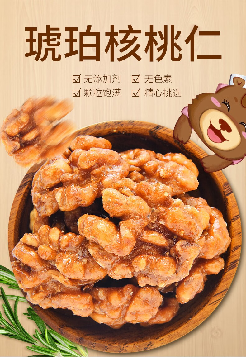憨豆熊 琥珀核桃仁山核桃仁碎坚果仁休闲零食核桃芝麻蜂蜜味干果特产 1斤【蜂蜜味】500g*1罐
