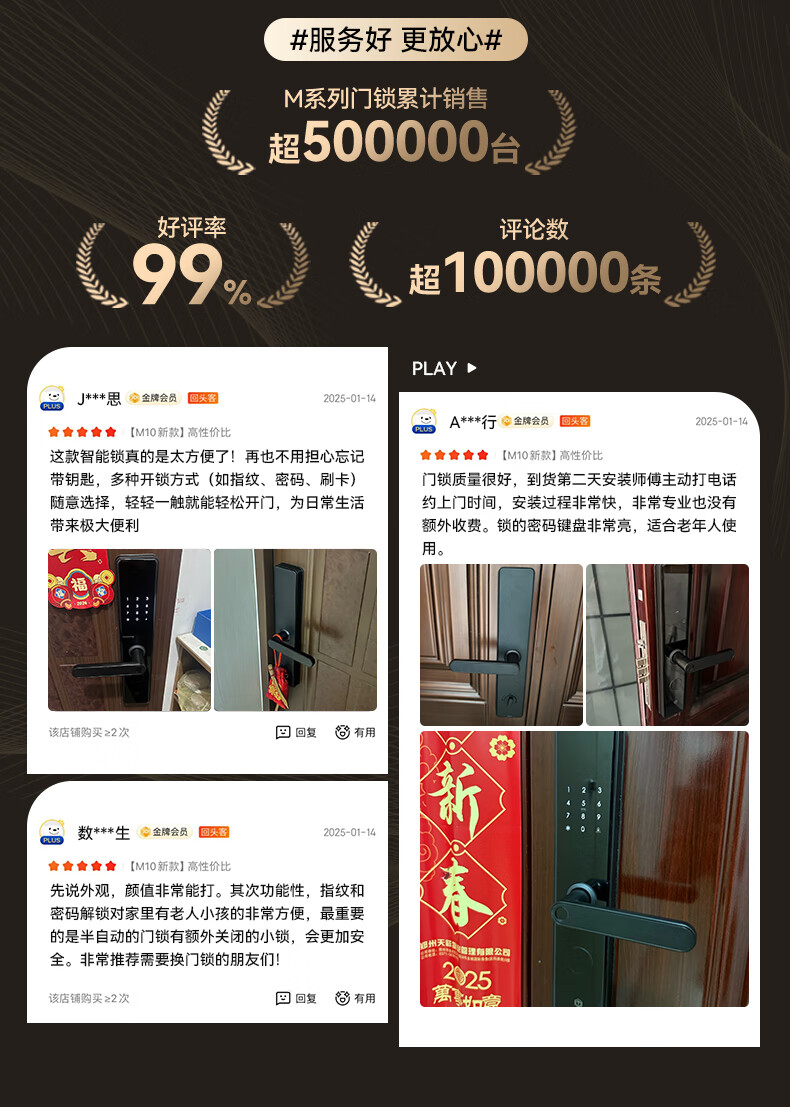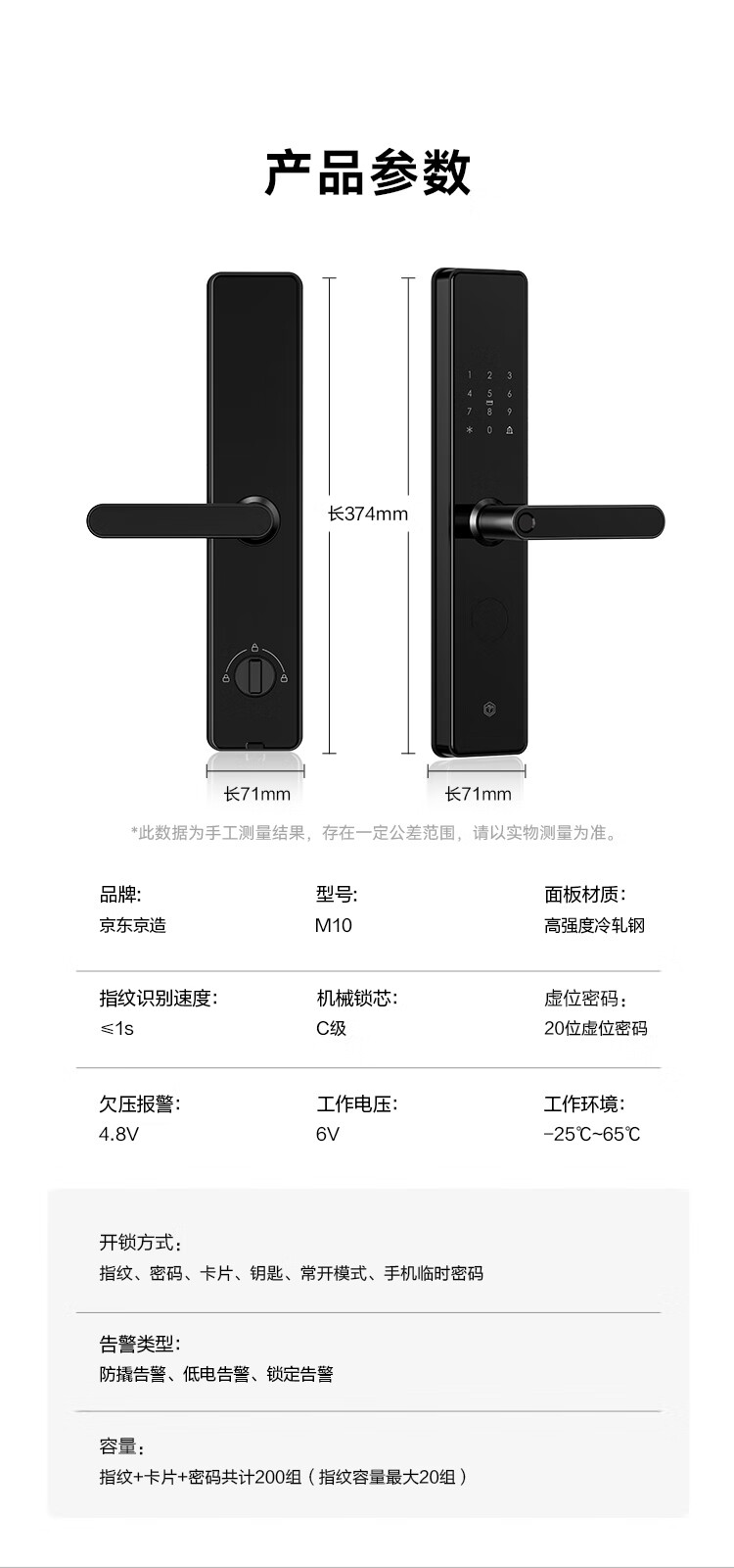 京东京造智能门锁M10 指纹锁密码锁电子锁 C级锁芯 防盗门锁免费安装国补