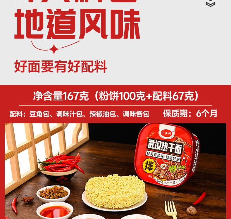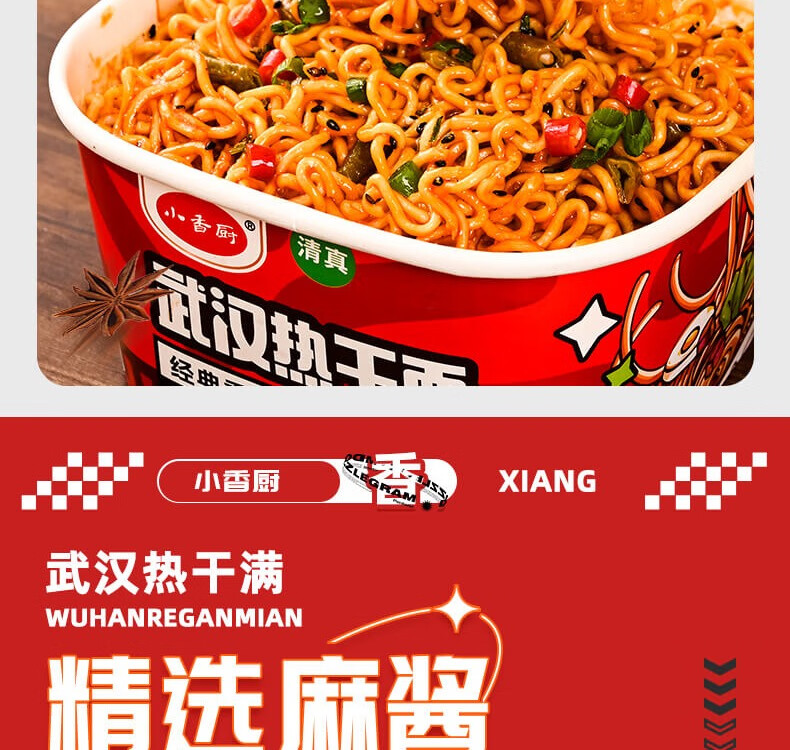 小香厨武汉热干面 方便面干拌面经典香辣味167克*3桶