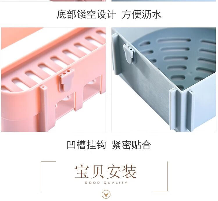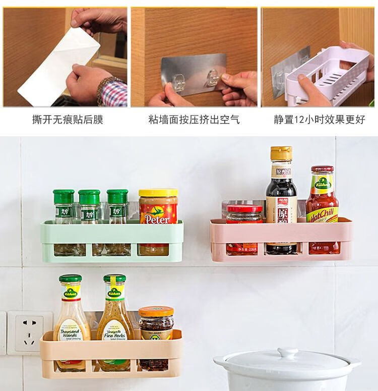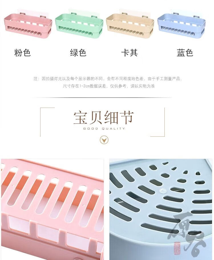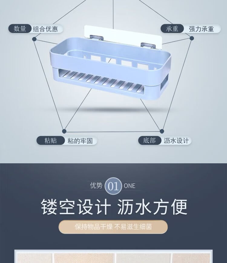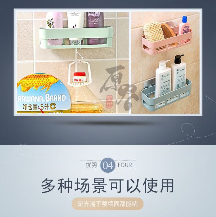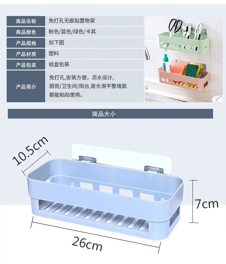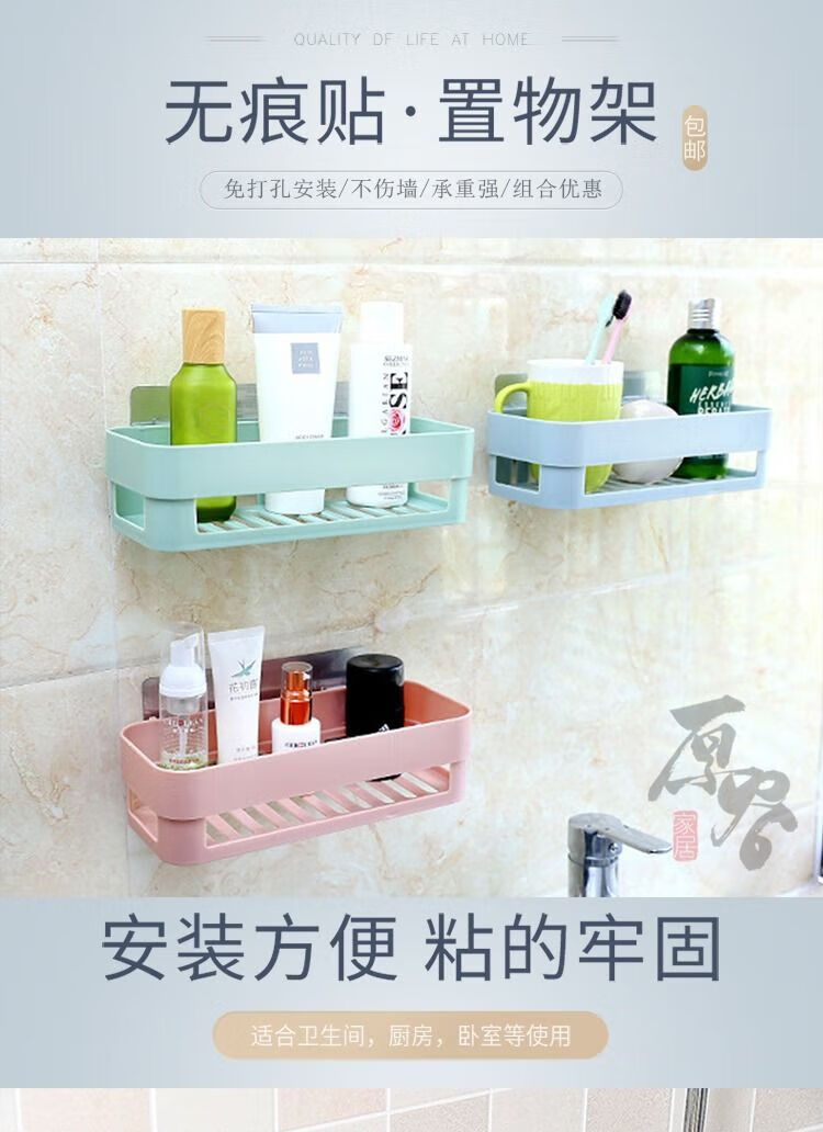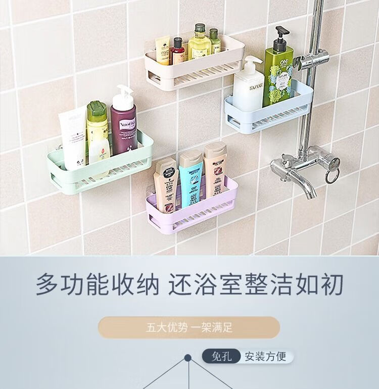 【已验货】浴室卫生间置物架子免打孔厕所洗手洗漱台墙上三角收纳 蓝色 1个装【长方形】粘贴牢固