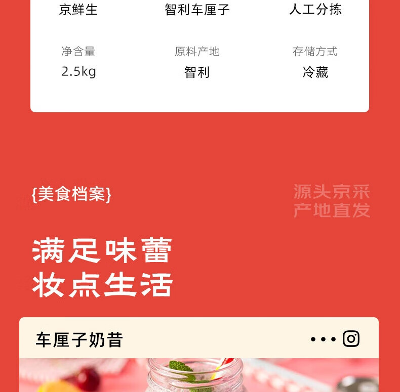 京鲜生智利车厘子J级5斤礼盒装果径26mm+新鲜水果 源头直发