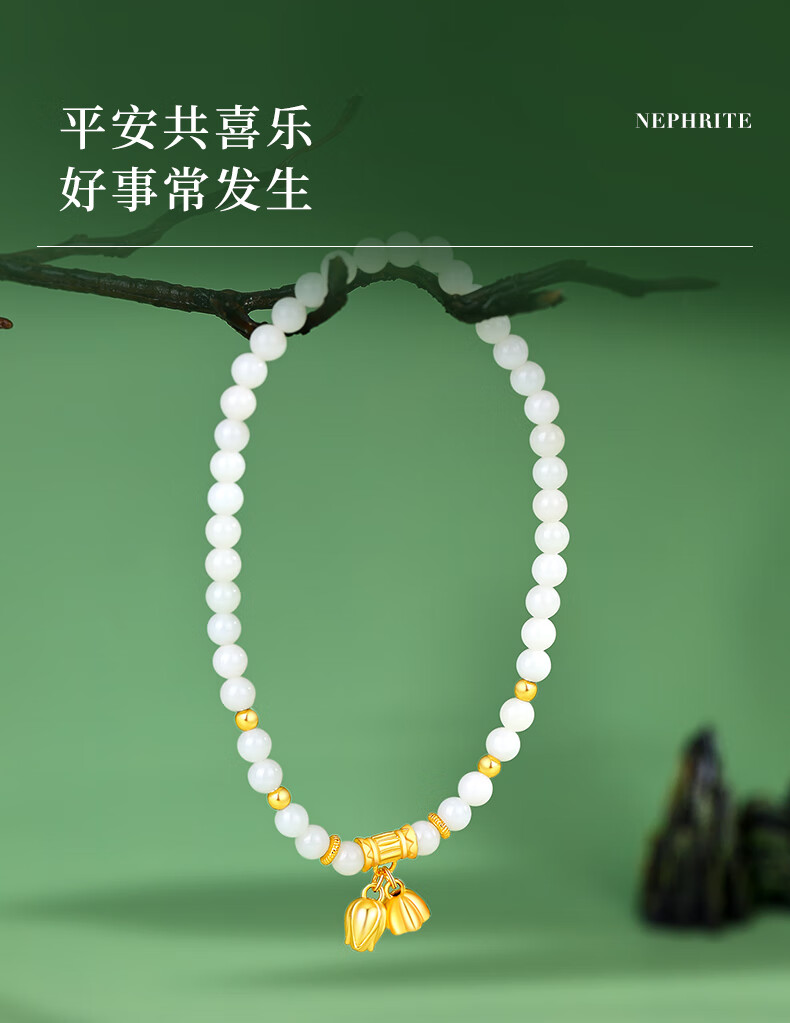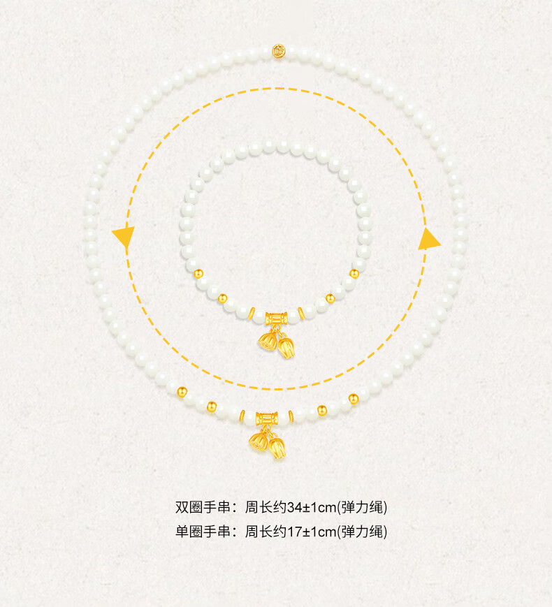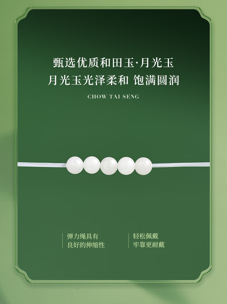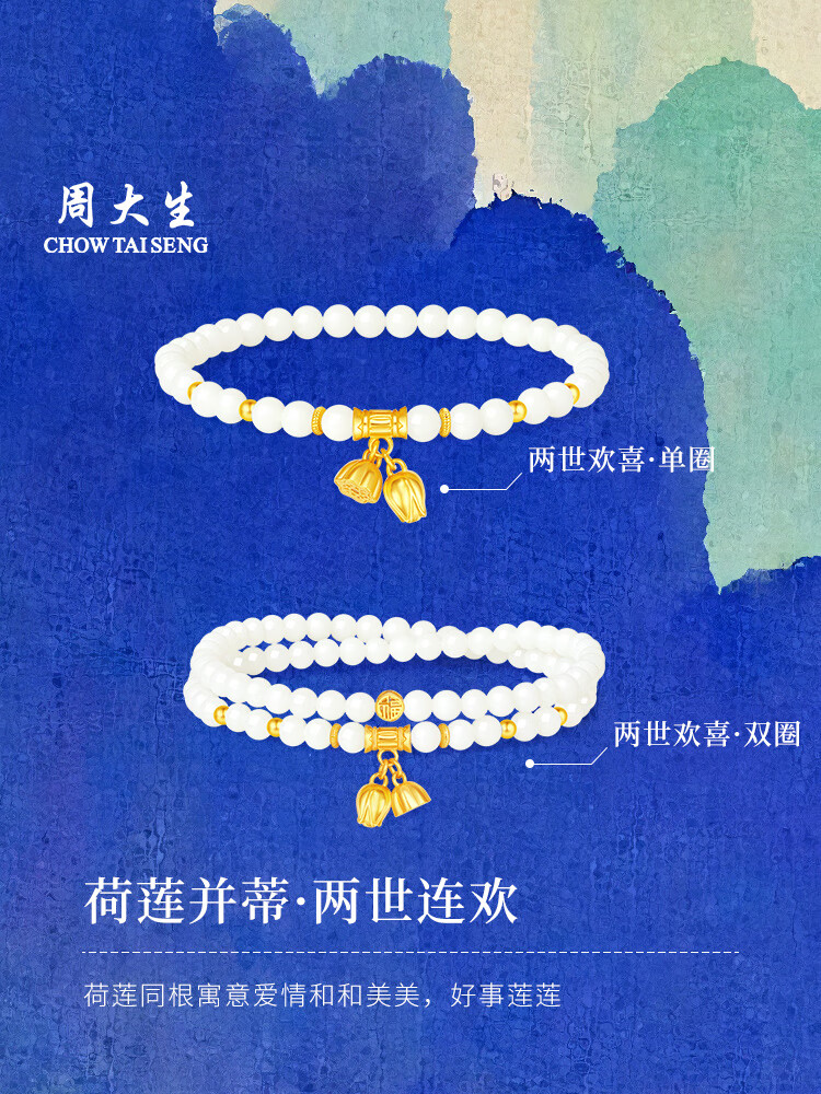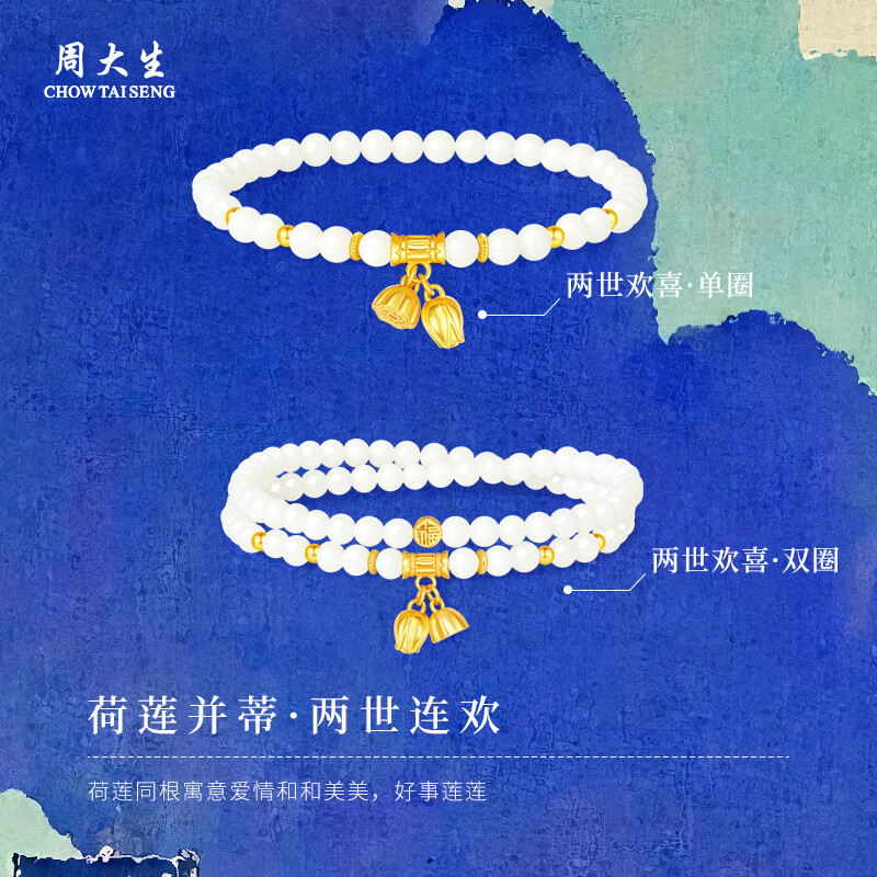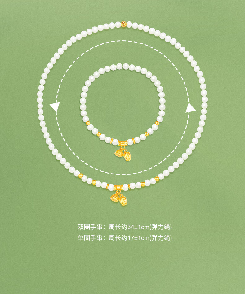 周大生S925银两世欢转运珠手串女单圈和田玉弹力绳手链送女友新年礼物 和田玉两世欢手串 【双圈】