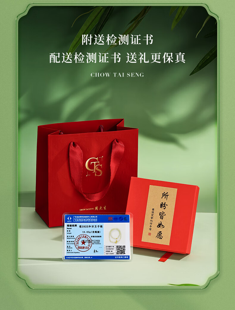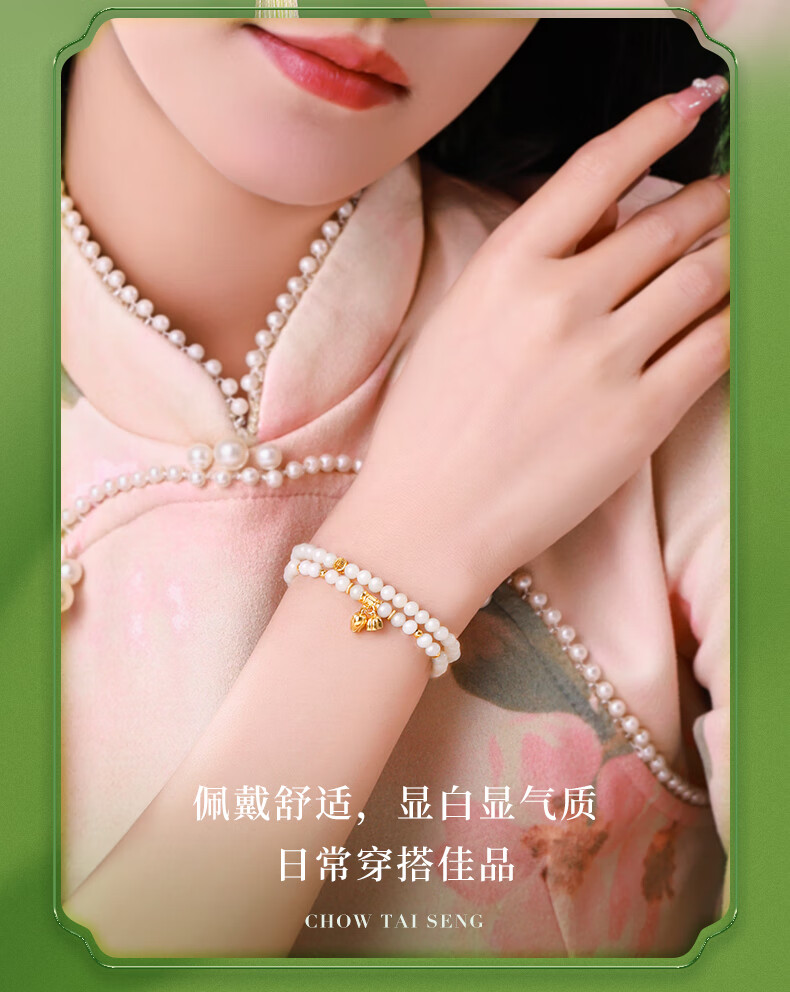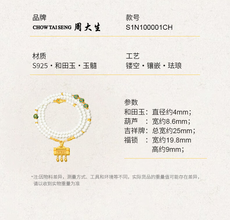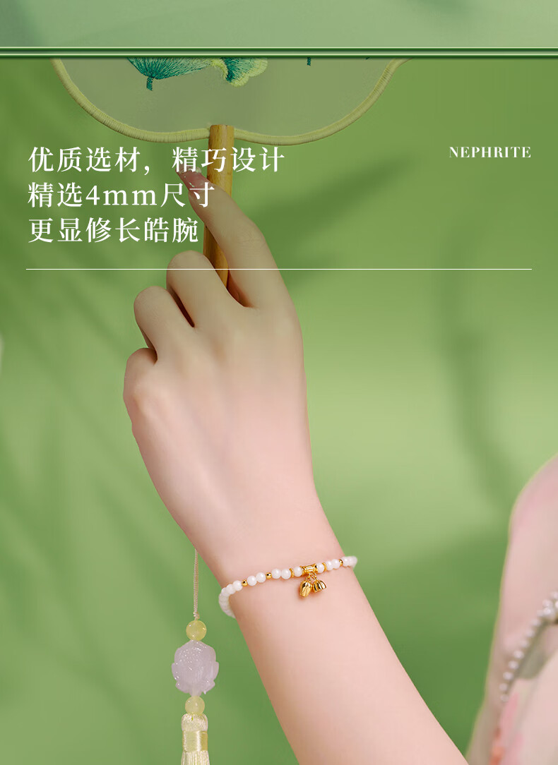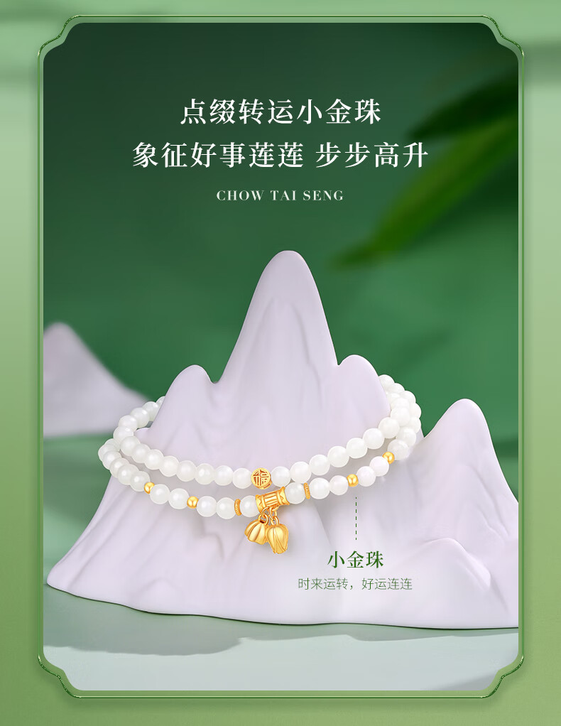 周大生S925银两世欢转运珠手串女单圈和田玉弹力绳手链送女友新年礼物 和田玉两世欢手串 【双圈】