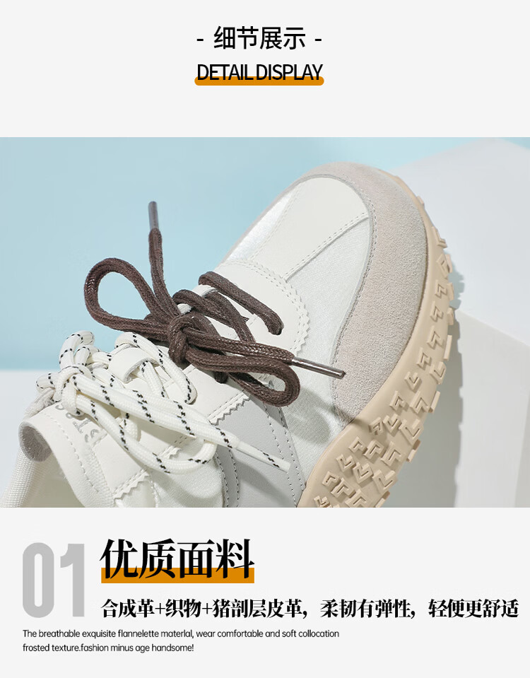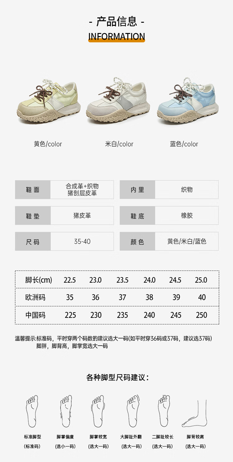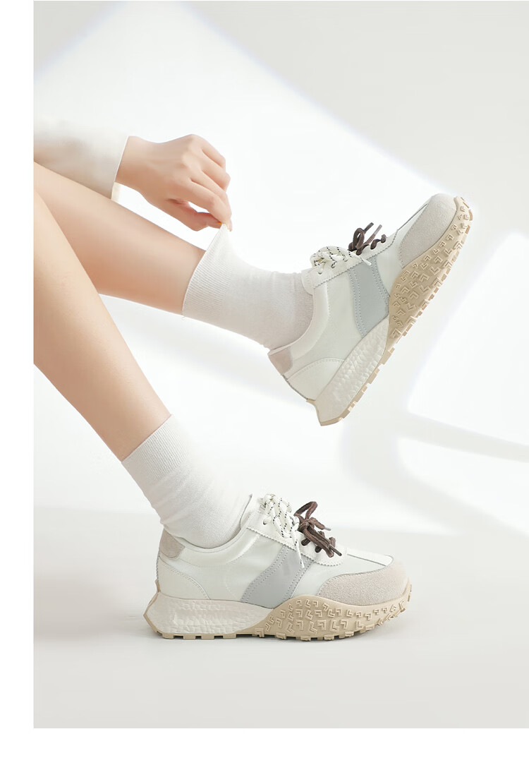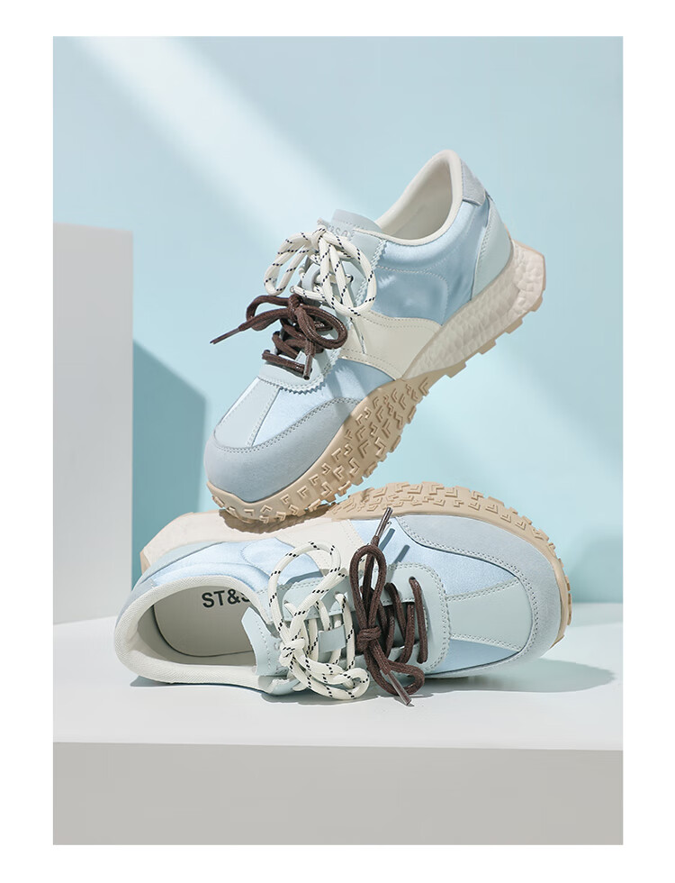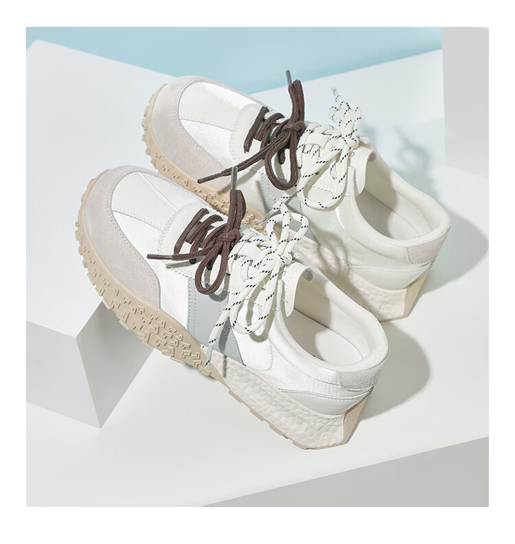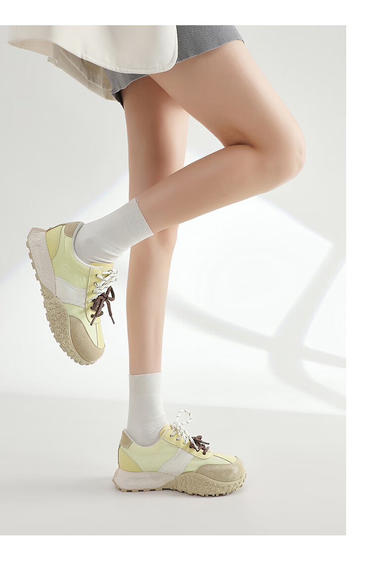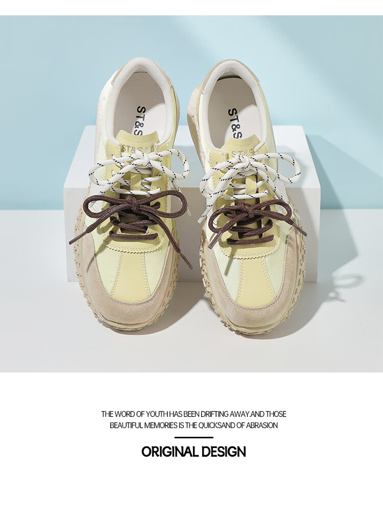 星期六(St&Sat)2026春季新款芭蕾德训鞋女鞋厚底百搭休闲鞋运动鞋双鞋带阿甘鞋女 黄色 38