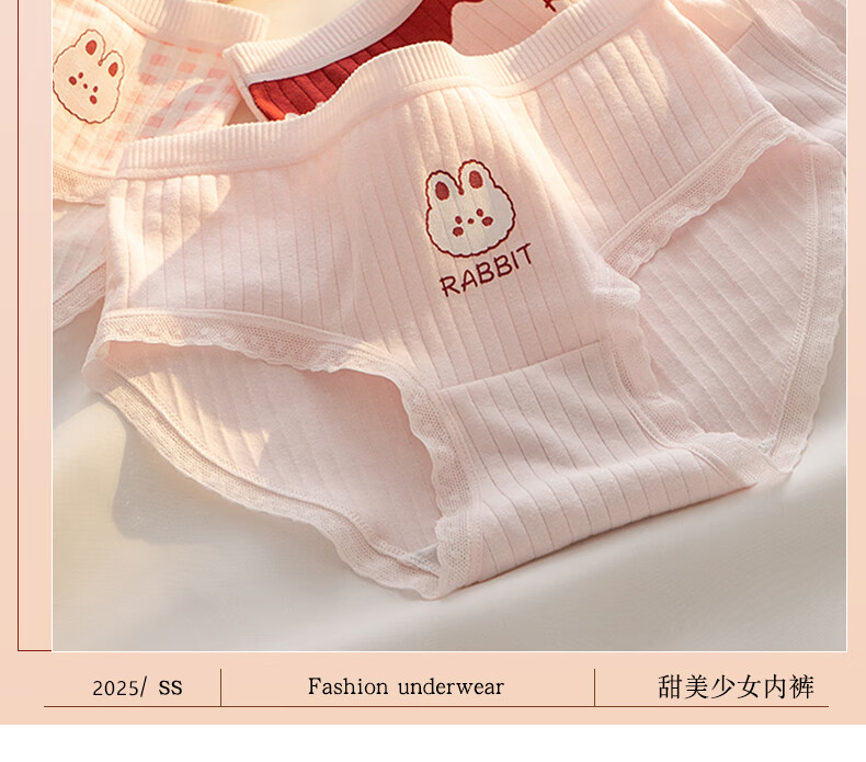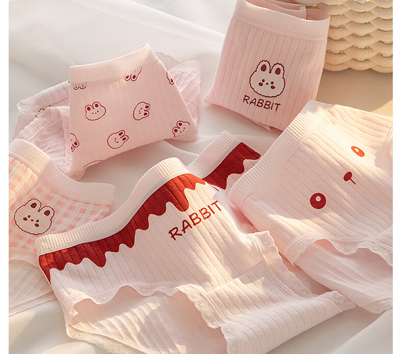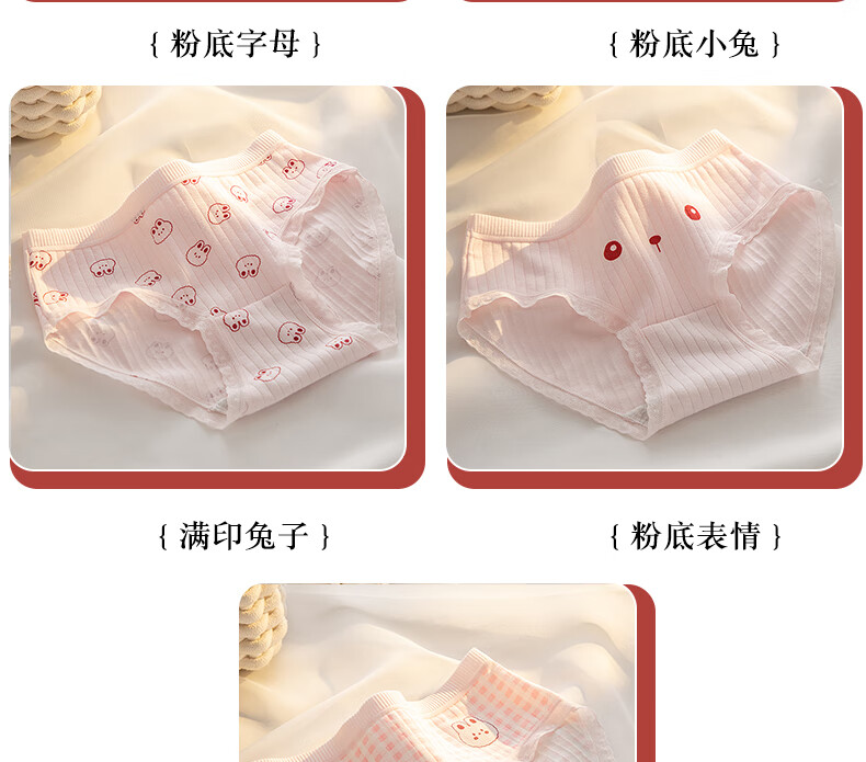 都市丽人内裤女5A全棉抑菌底档舒适柔软亲肤透气中腰高颜值甜美少女短裤 格子+满印兔子+粉底字母+粉底表情 4条 XL 建议【105-135斤】