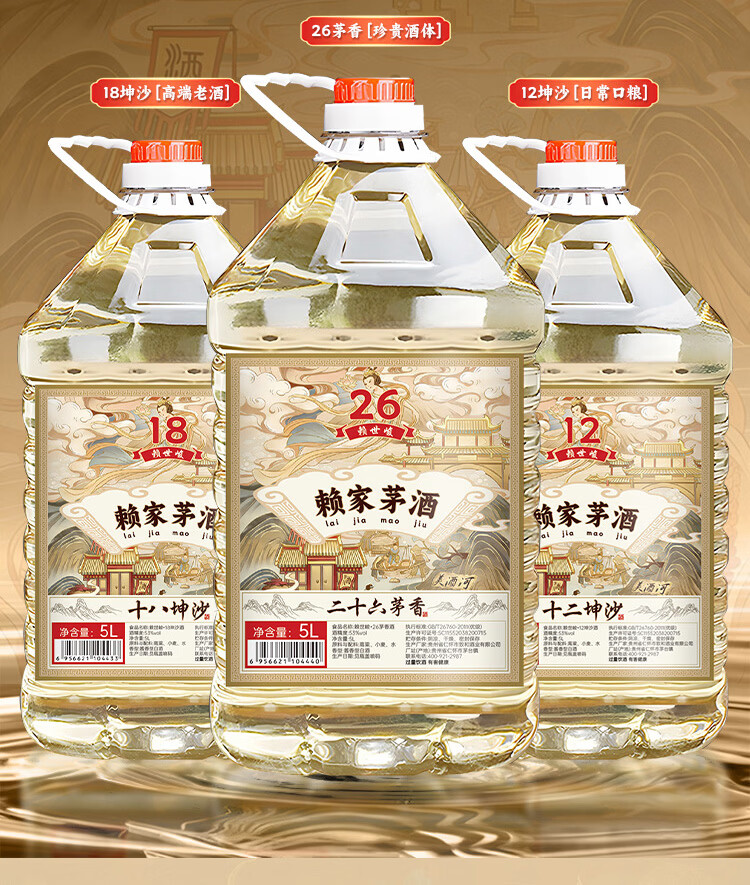 赖世峻纯粮酒53度酱香型白酒赖家茅酒桶装酒原浆酒散酒坤沙酒泡酒10斤 53度 5L 1桶 十八坤沙酒(稀贵老酒)
